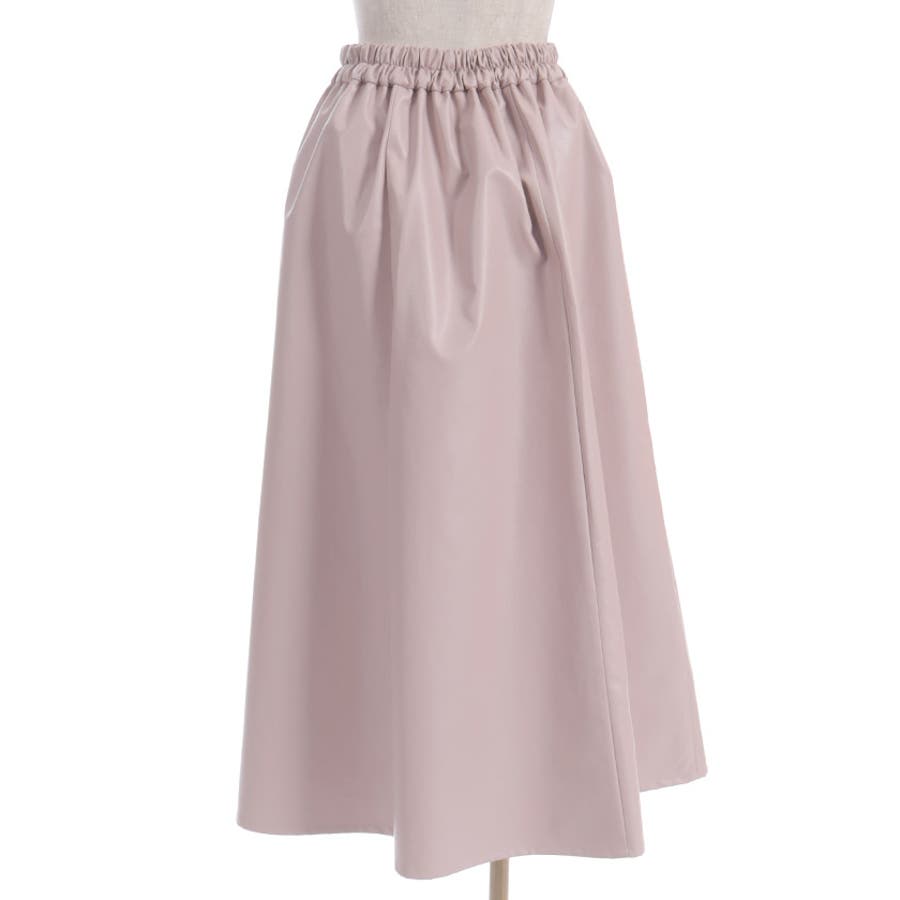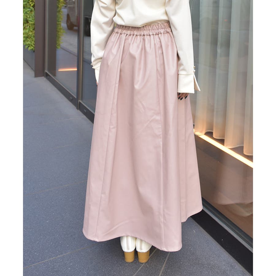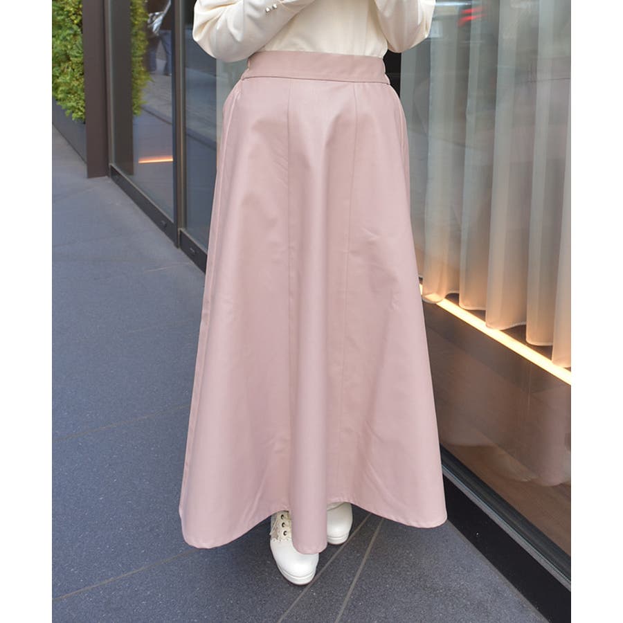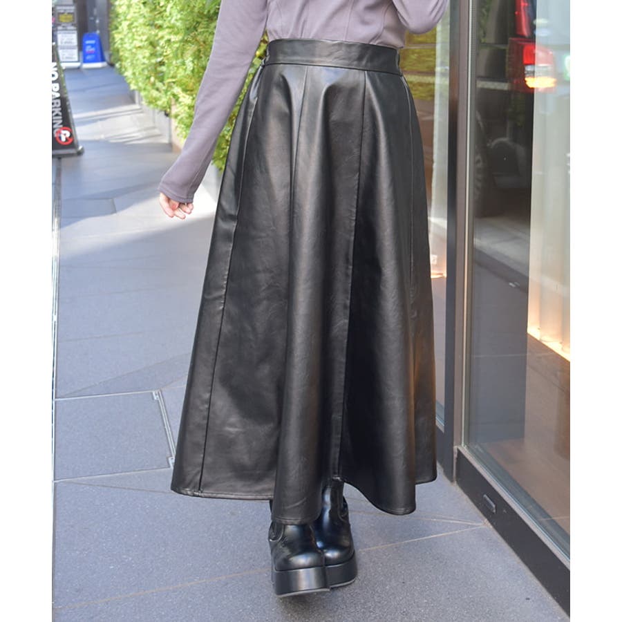 履くだけでこなれ感を演出する合皮のロングフレアスカートです。