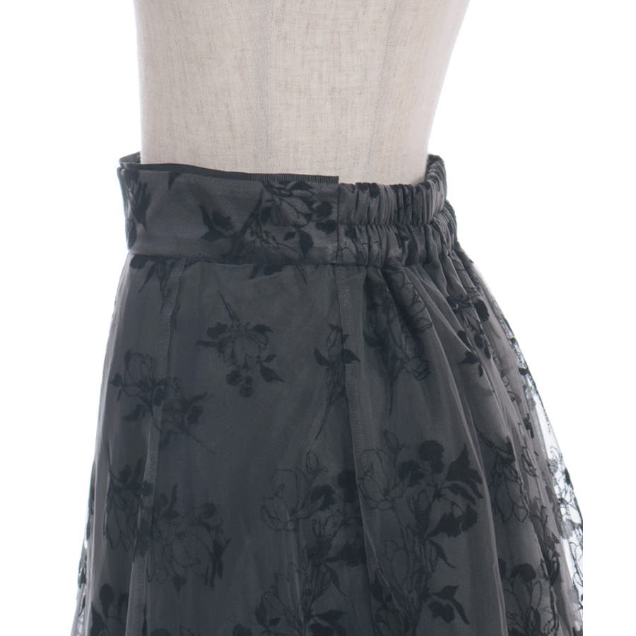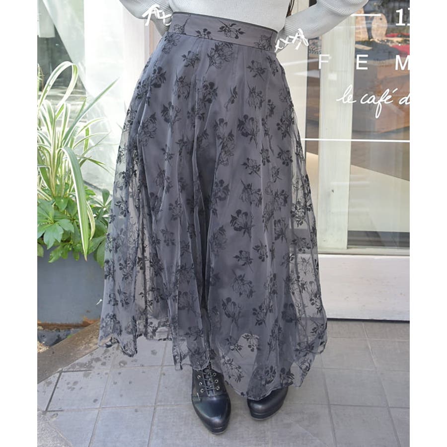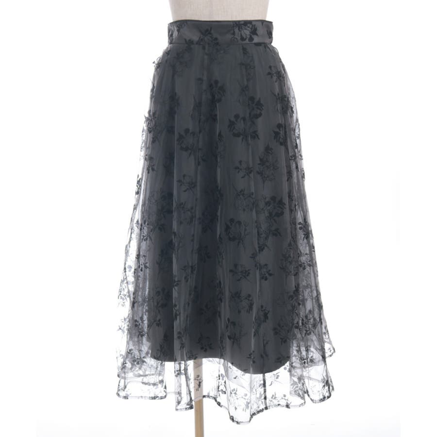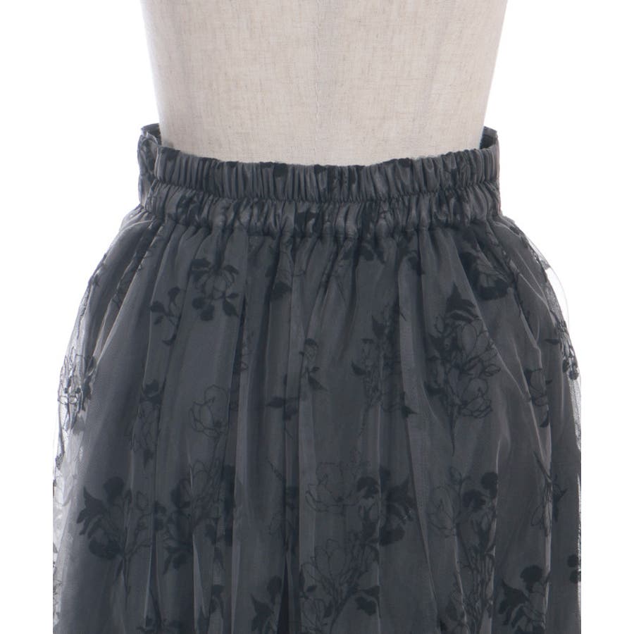 花柄のフロッキープリントをあしらったスカートです。