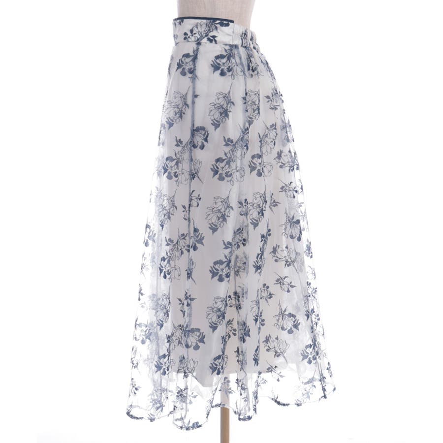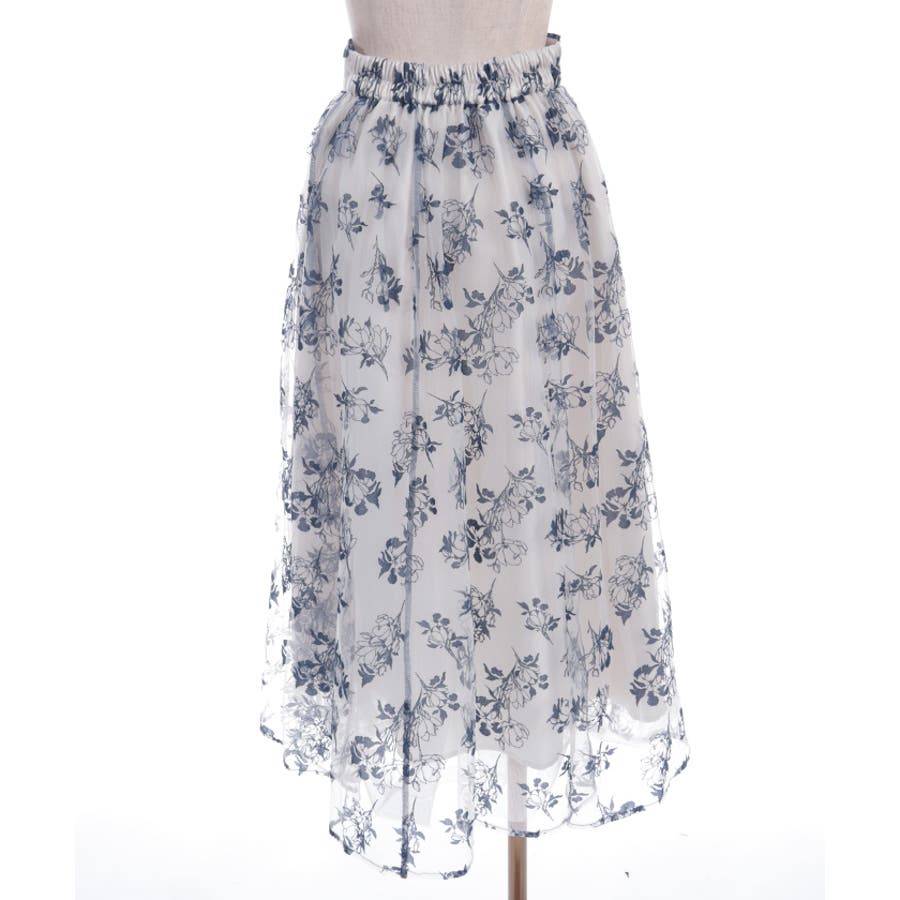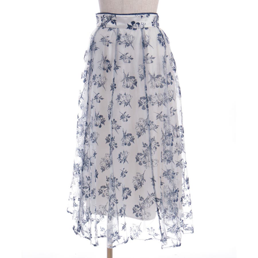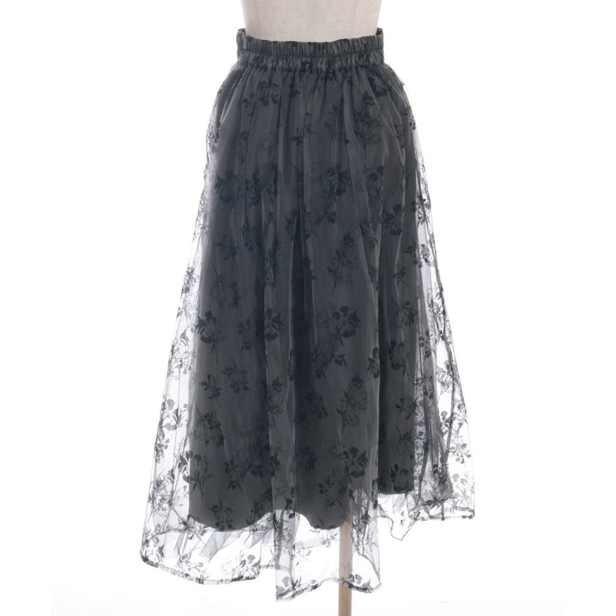 花柄のフロッキープリントをあしらったスカートです。