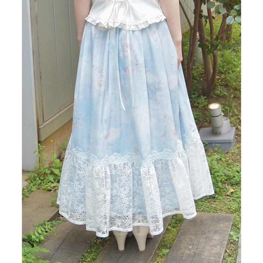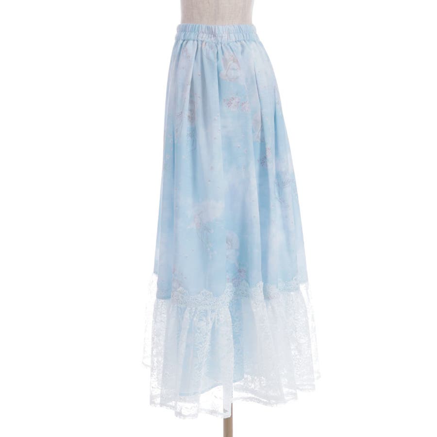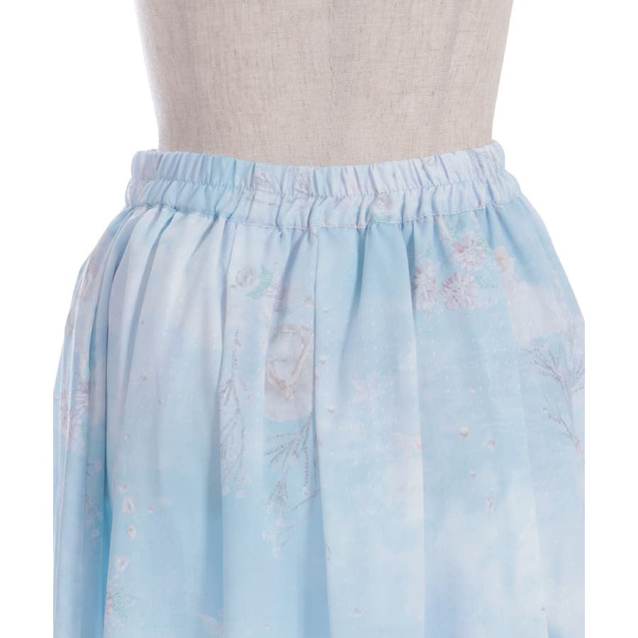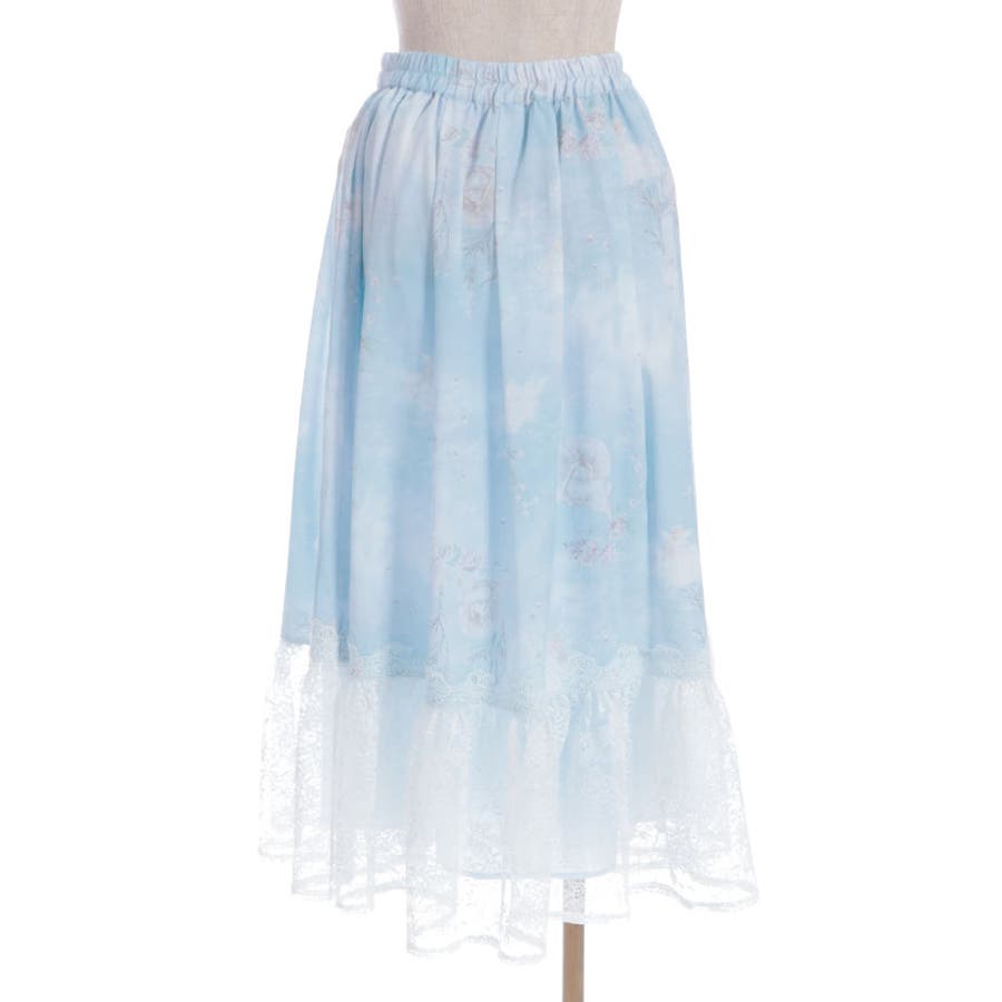 海と空がとけあった風景に天使やパールモチーフが絵画のようなタッチで描かれたオリジナル柄のスカートです。