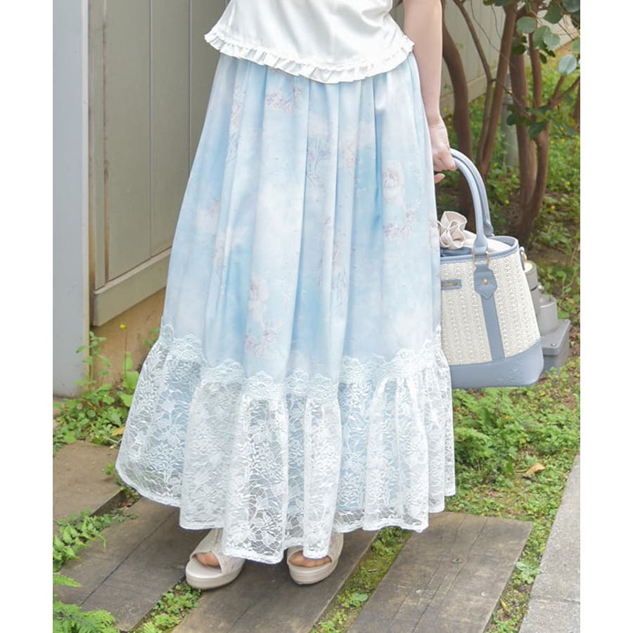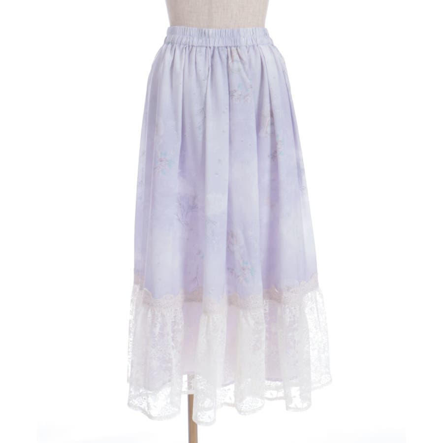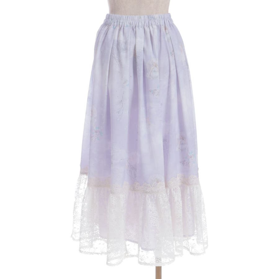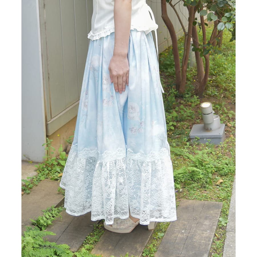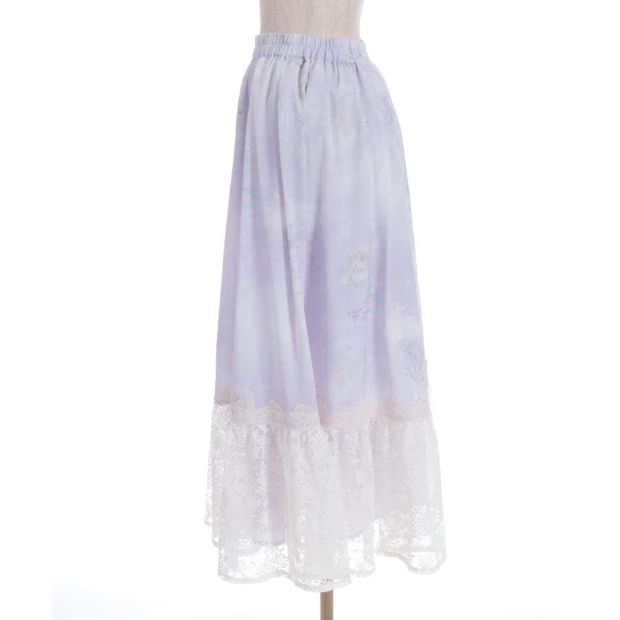 海と空がとけあった風景に天使やパールモチーフが絵画のようなタッチで描かれたオリジナル柄のスカートです。