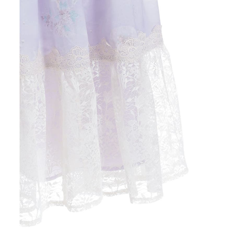 裾にはレースをあしらい、Aラインシルエットがポイント。