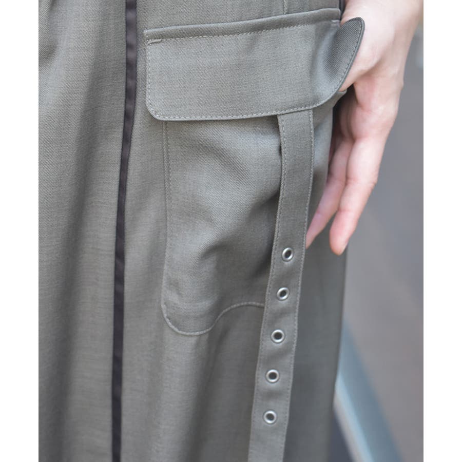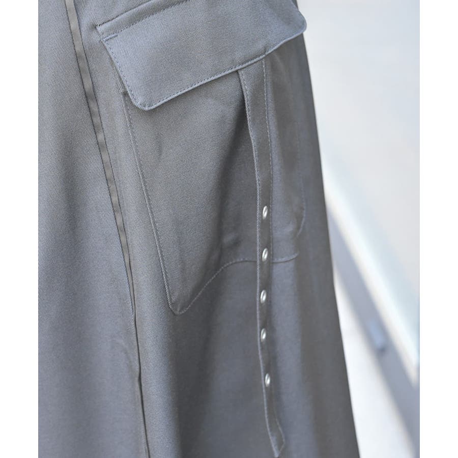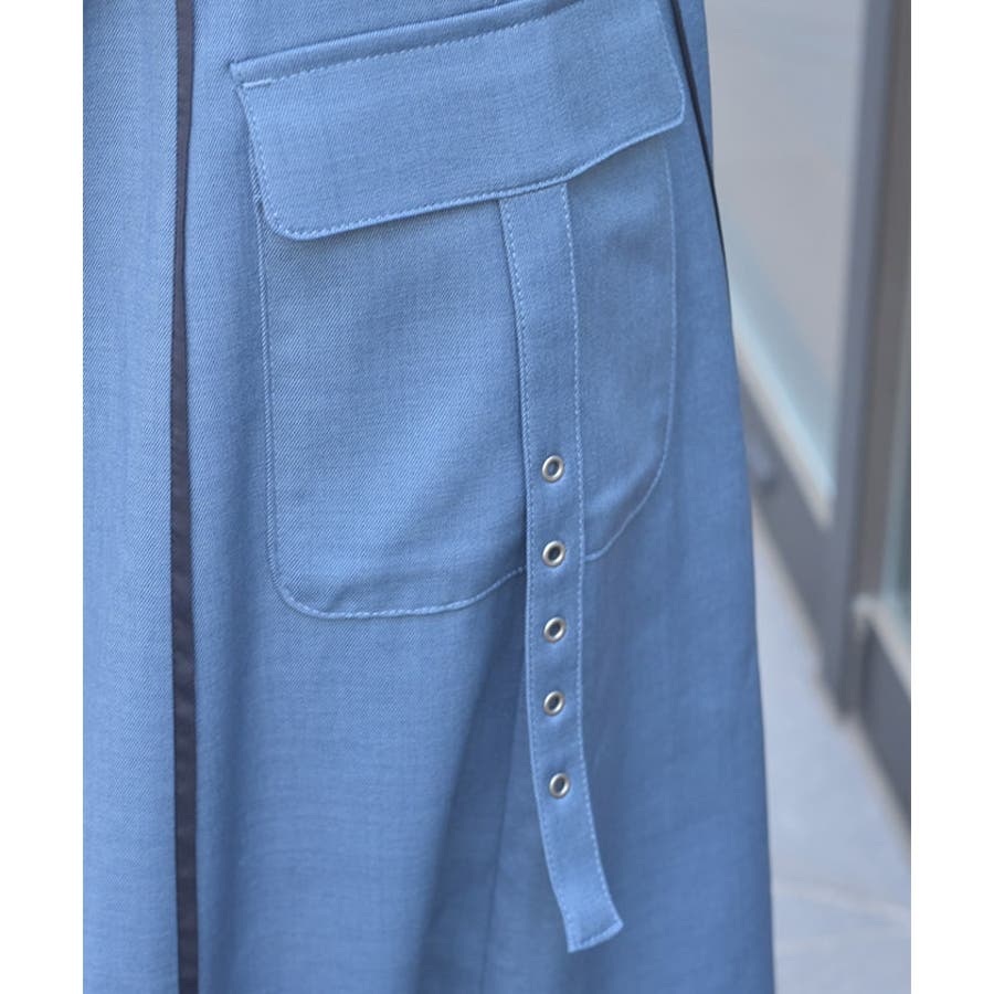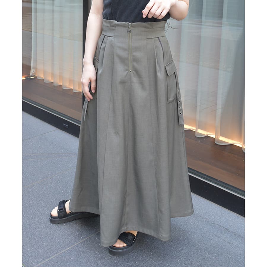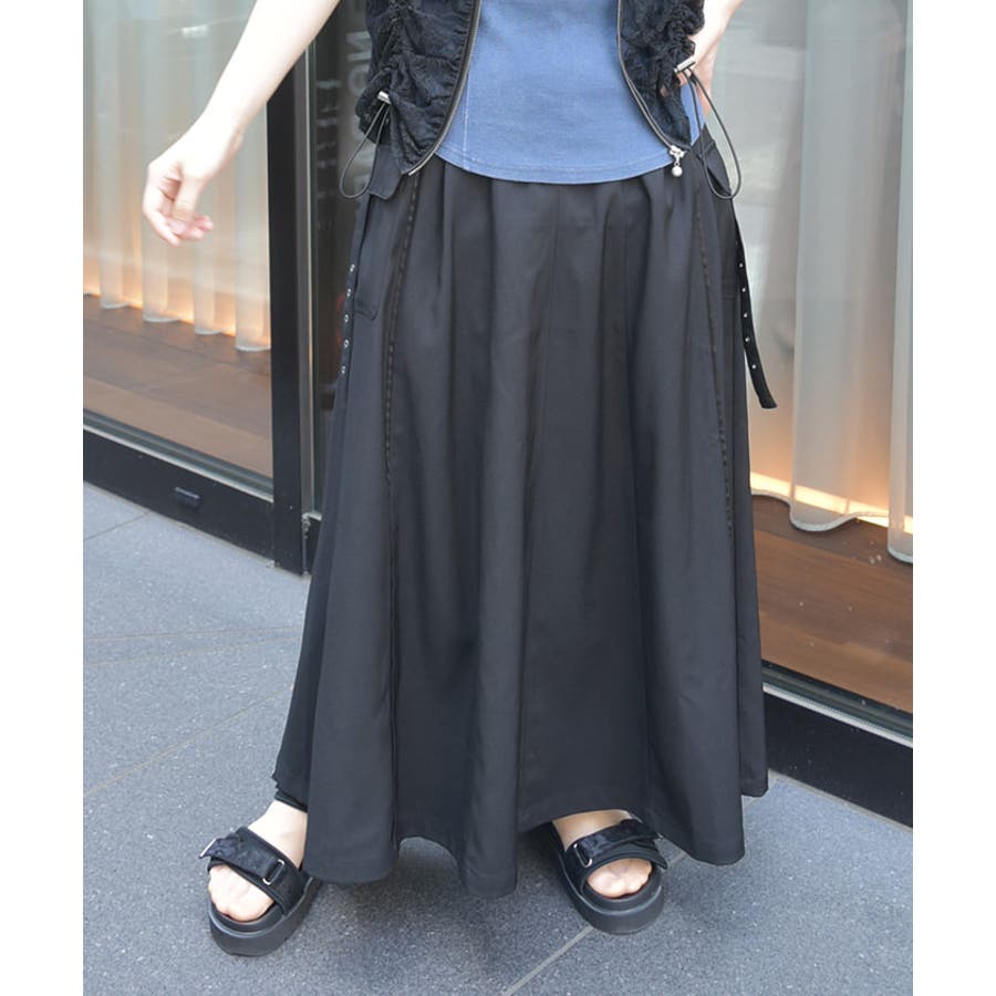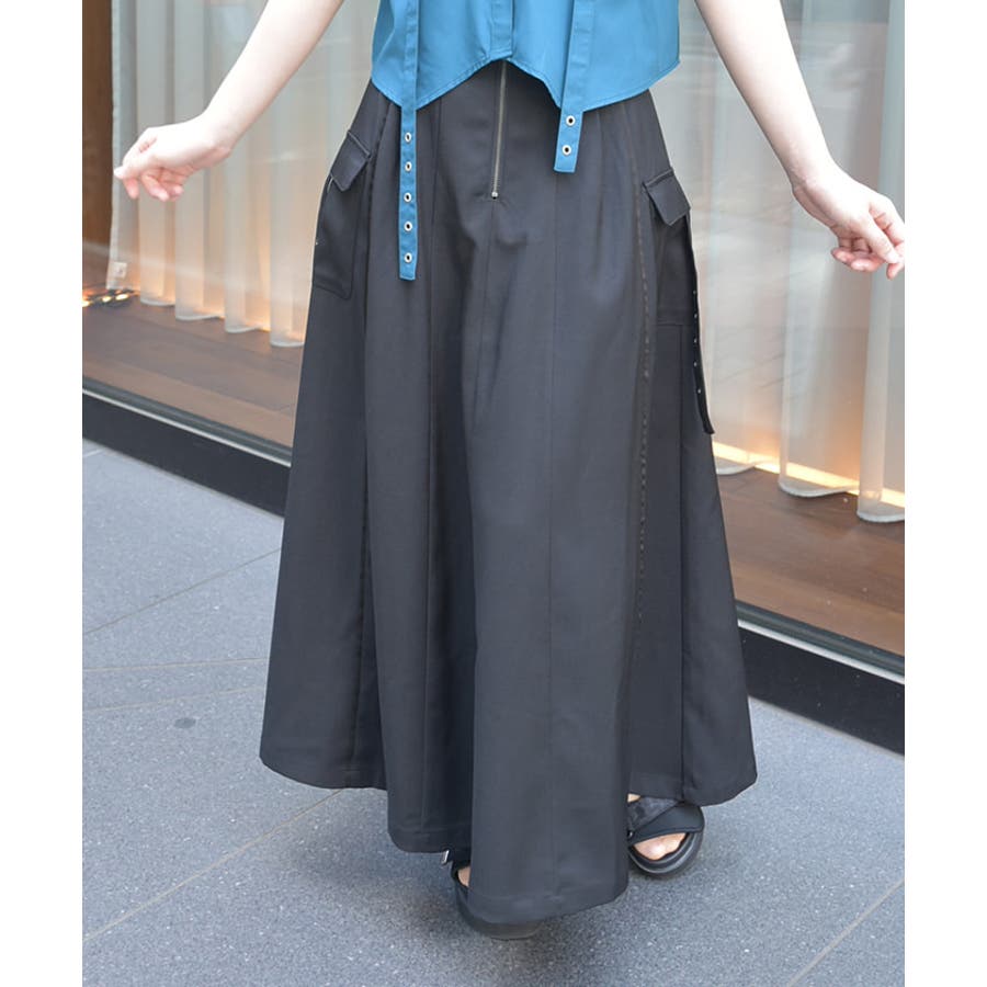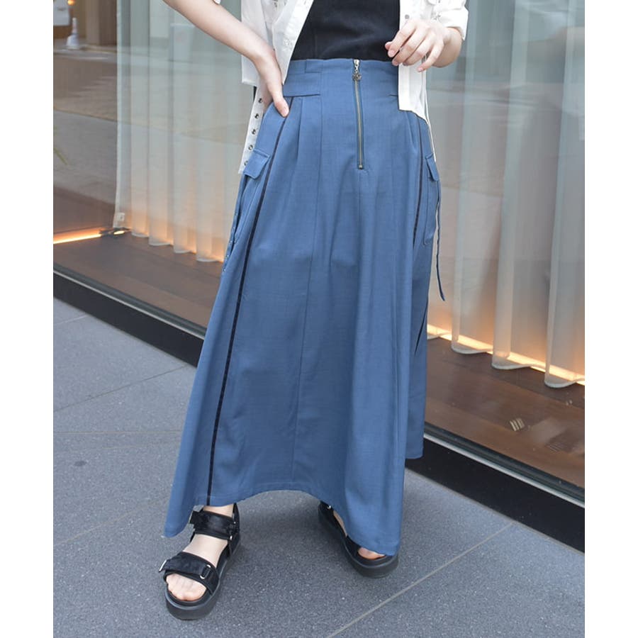クールな印象を与えるパイピングデザインが目を引くスカートは、フロントジップがアクセントになった洗練されたモード系スタイルにぴったりの1枚です。