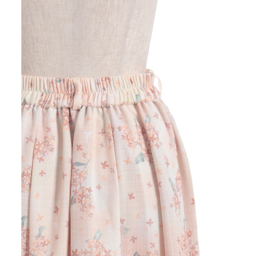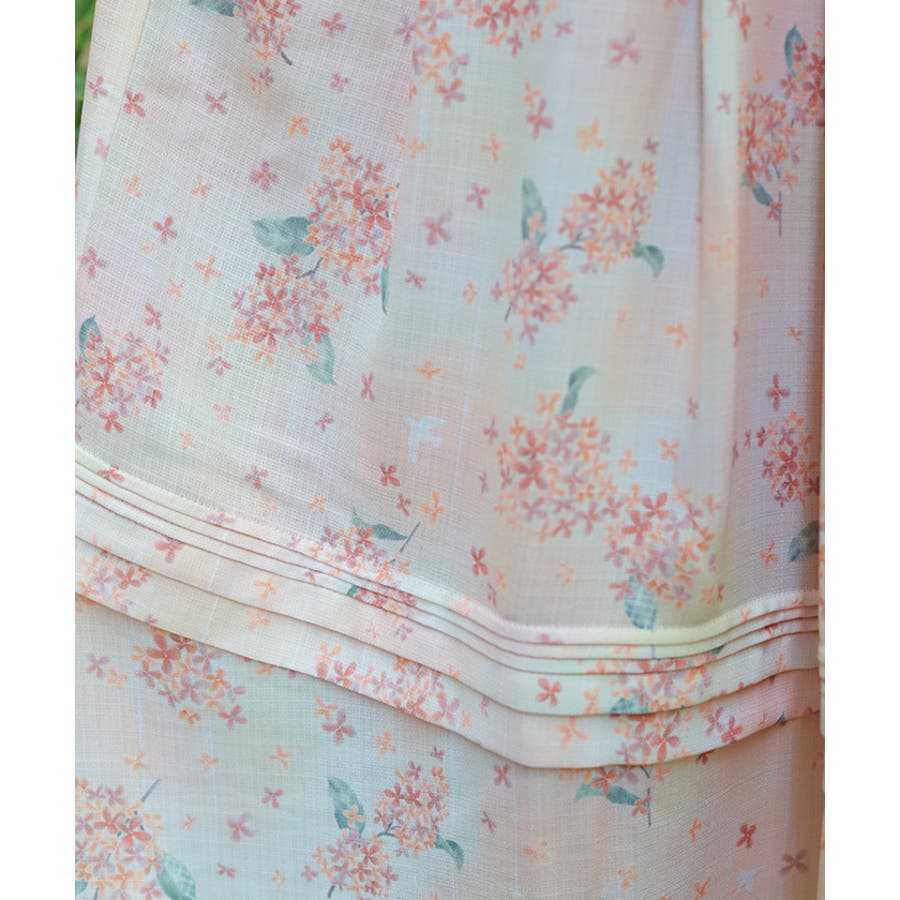 スカート全体に華やかに舞う金木犀・銀木犀の総柄スカートです。