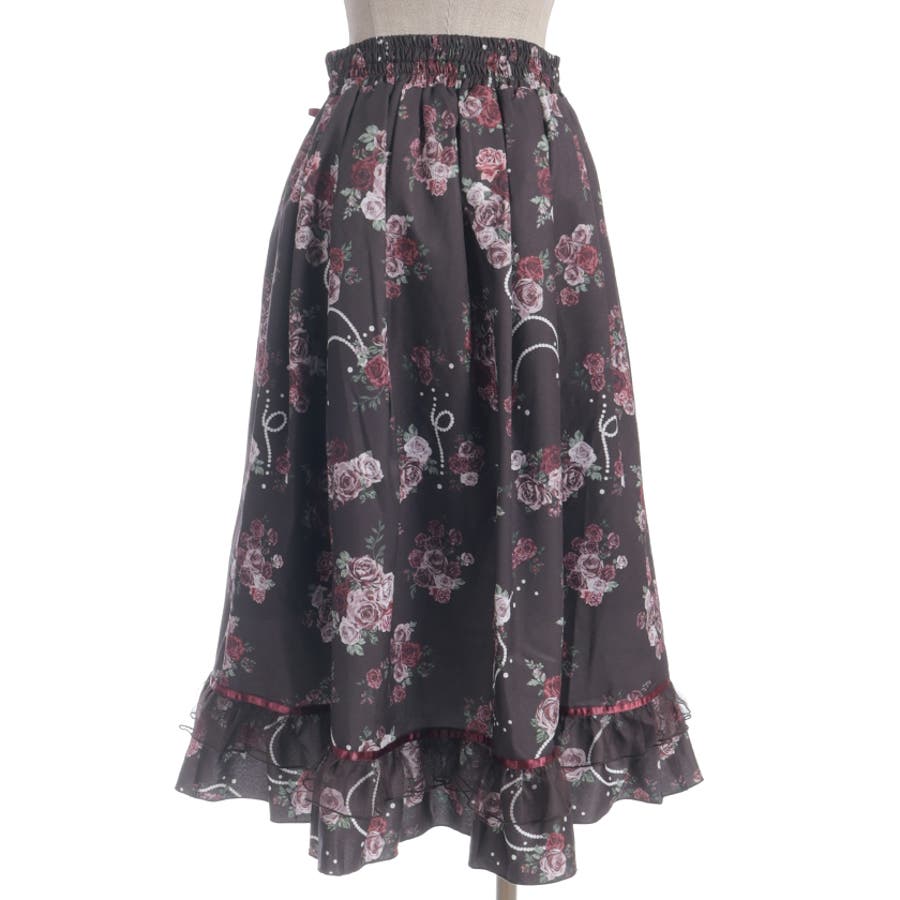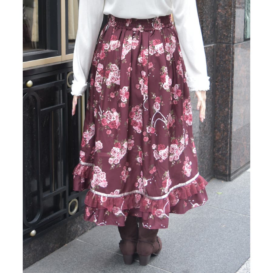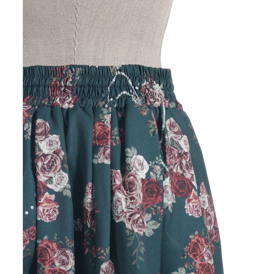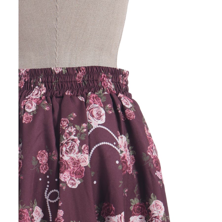 華やかなローズブーケ柄のフレアスカートです。