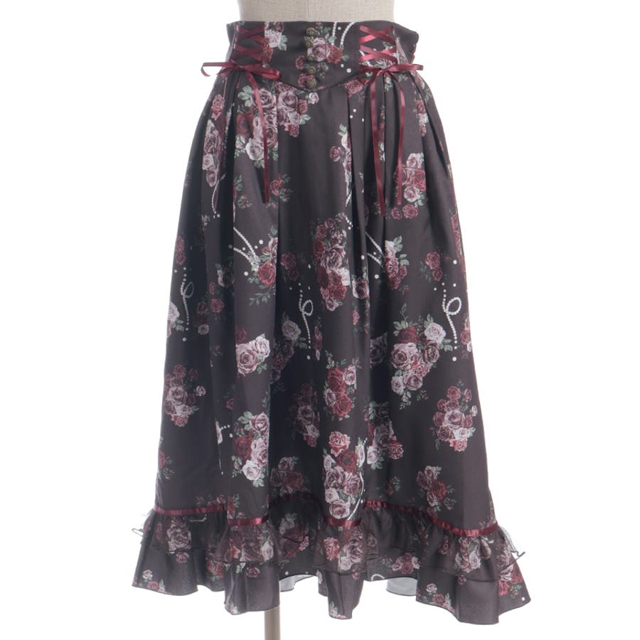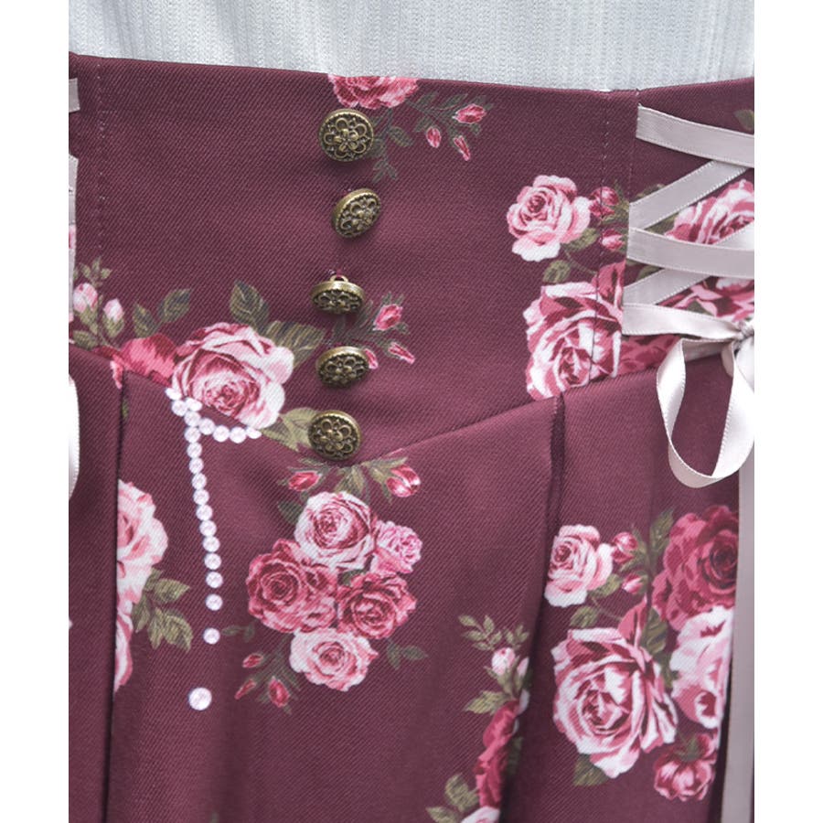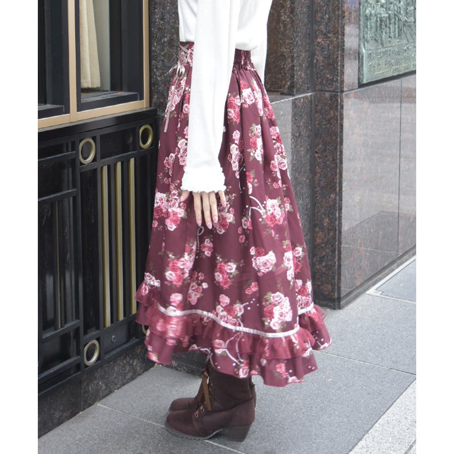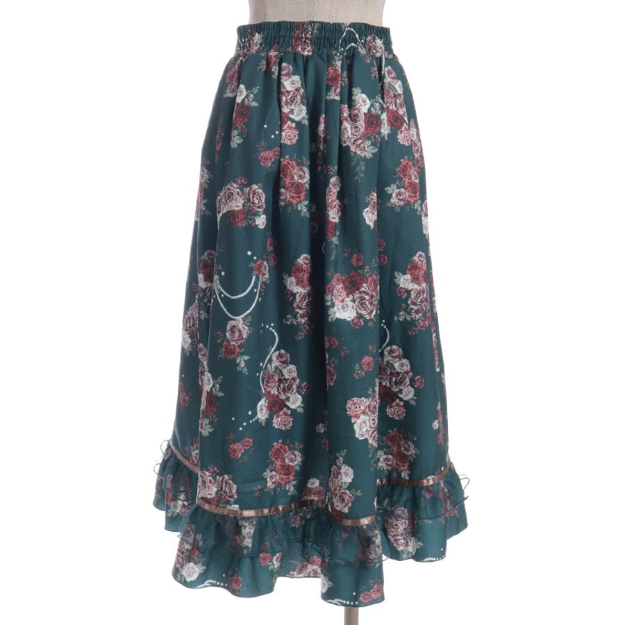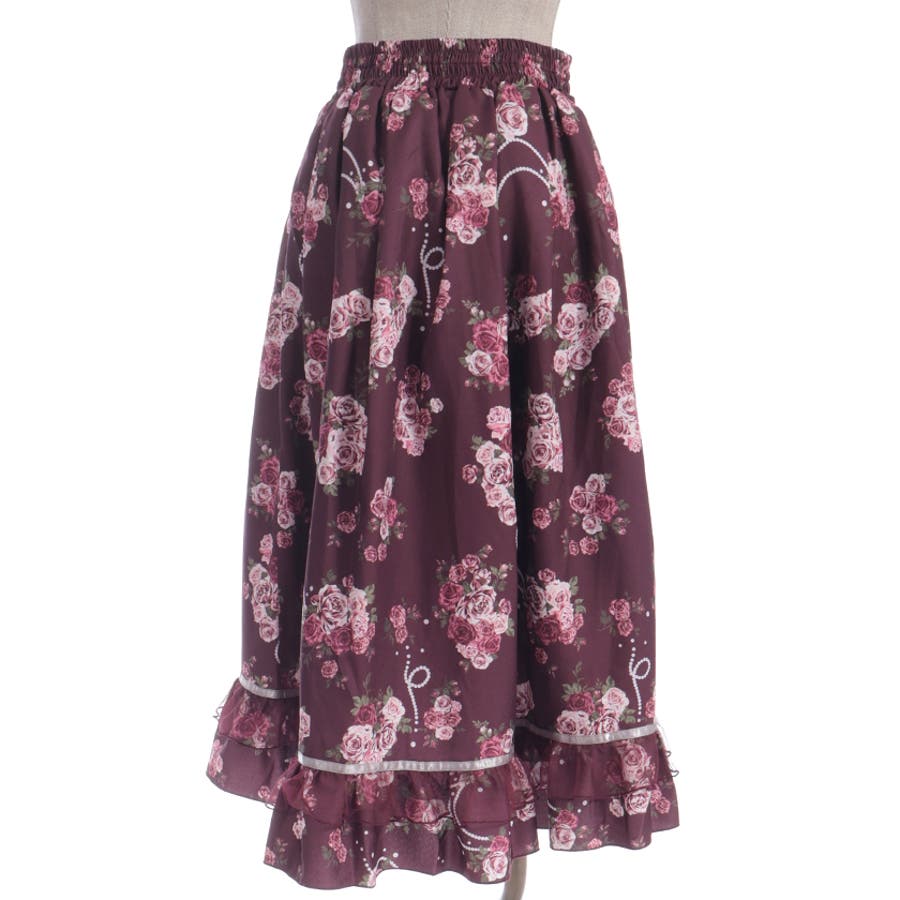 華やかなローズブーケ柄のフレアスカートです。