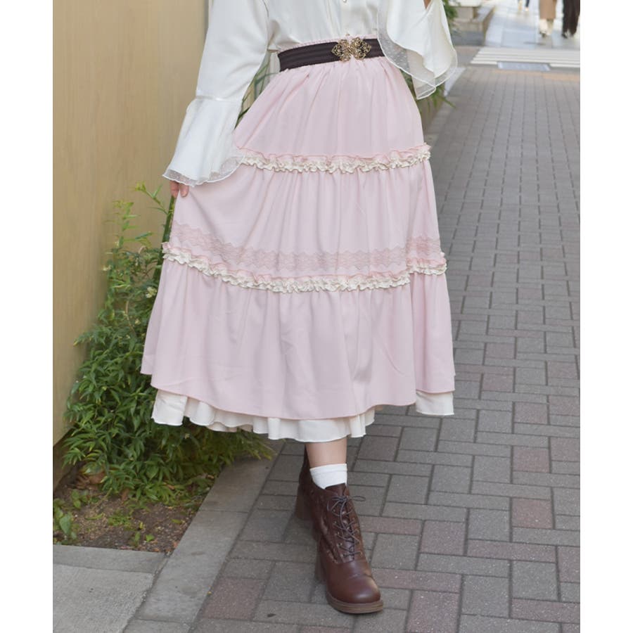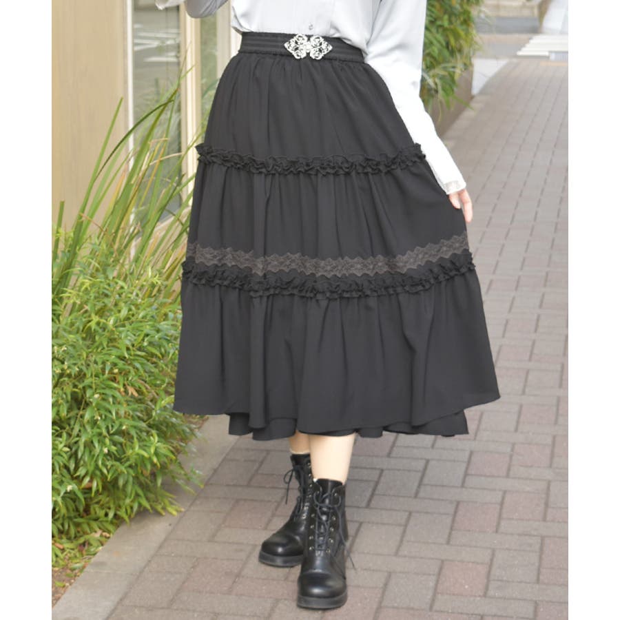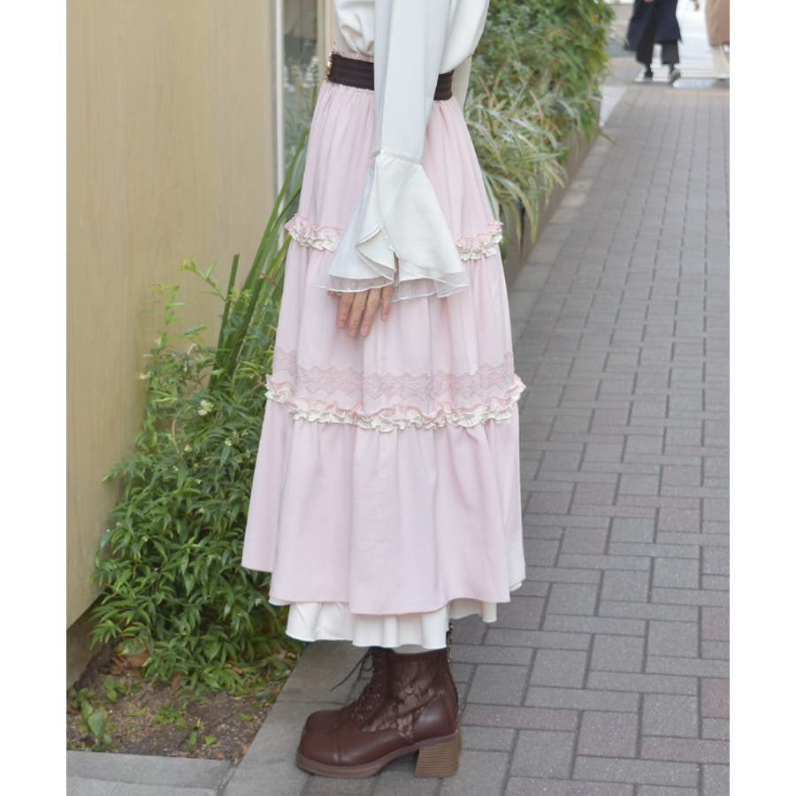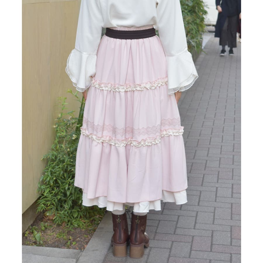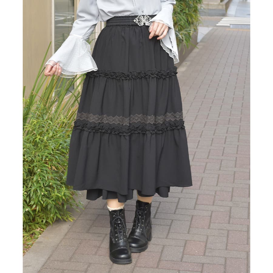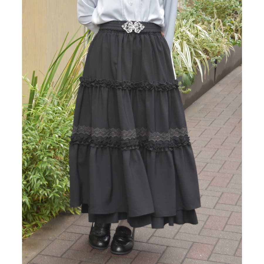 フリルとレース使いがポイントのティアードスカートです。
