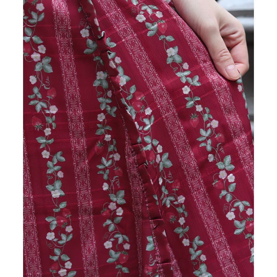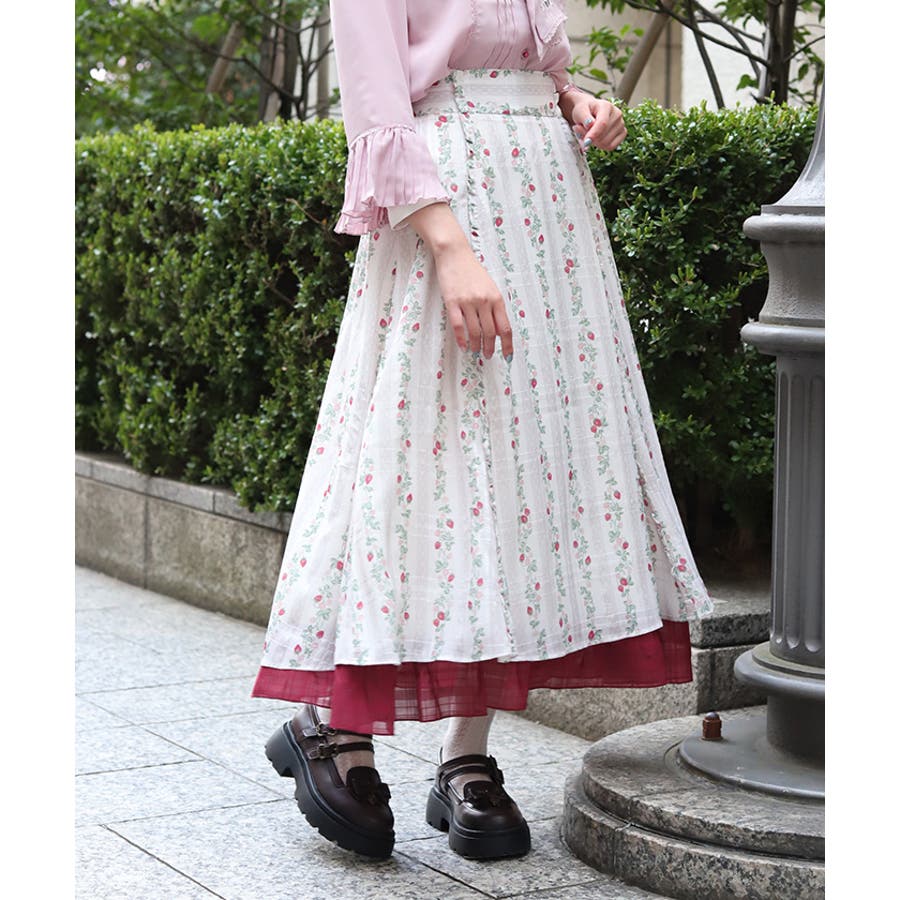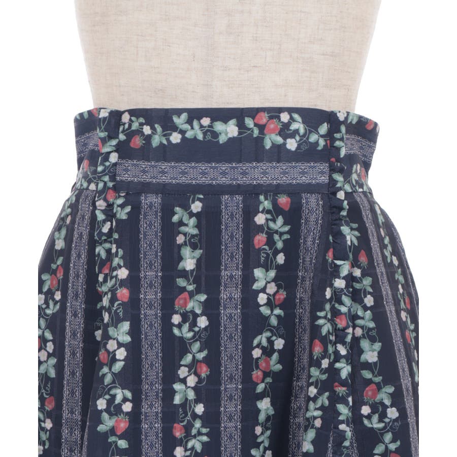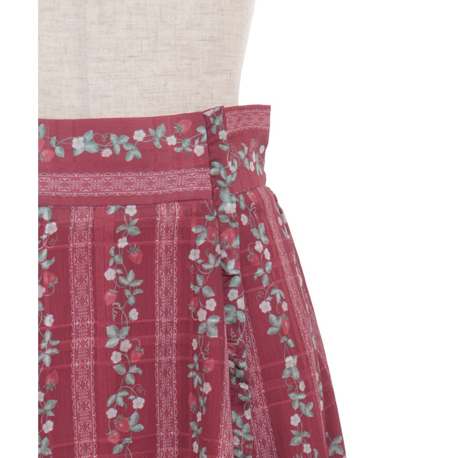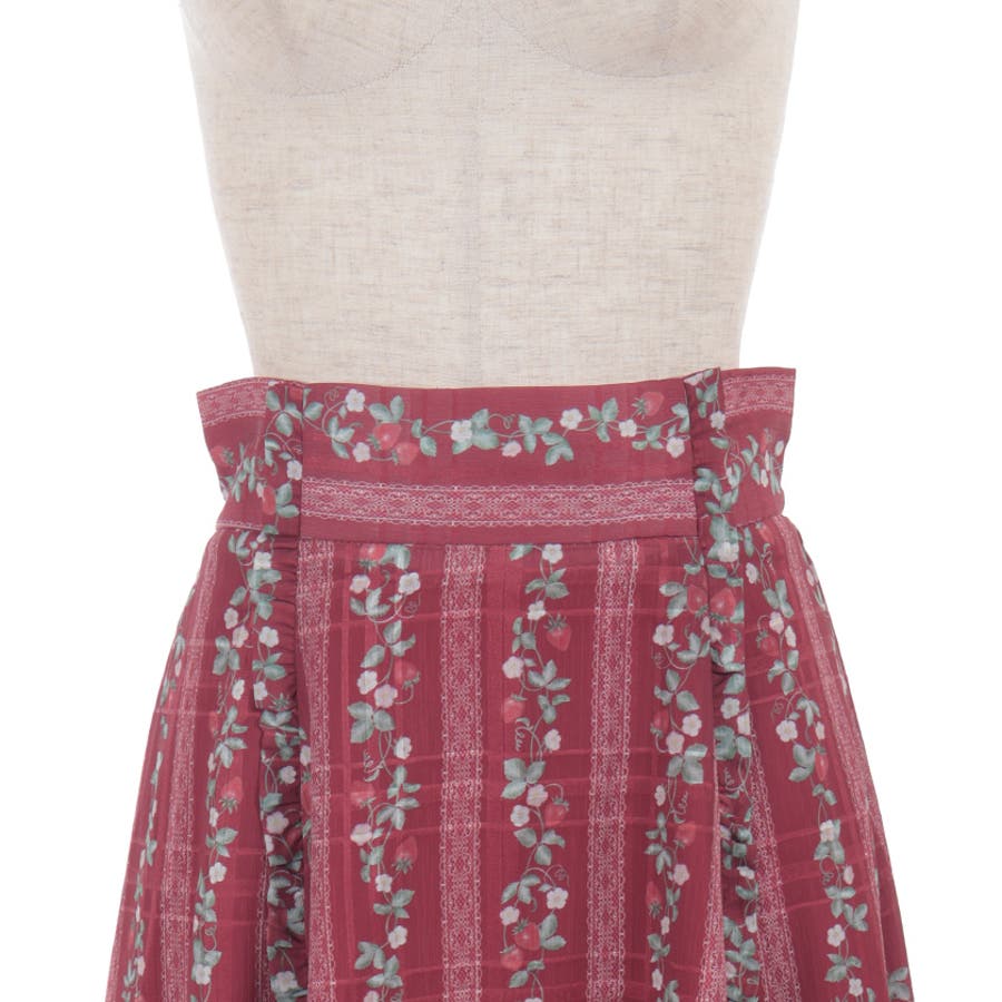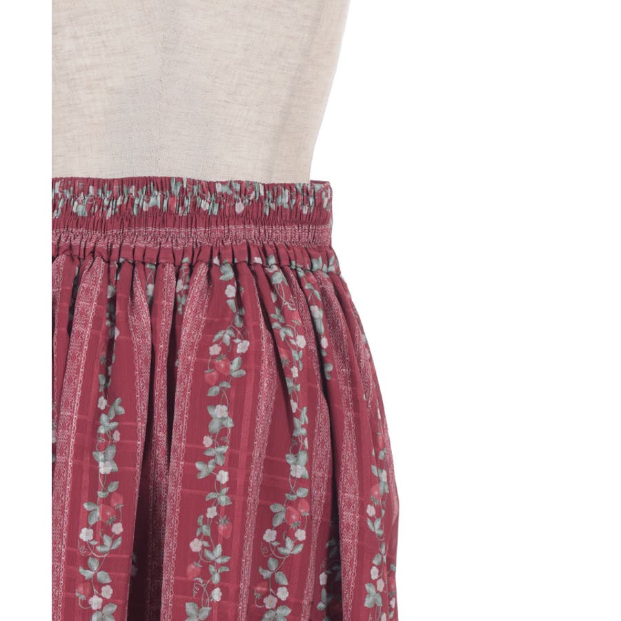 オリジナルの苺柄プリントが華やかな、フレアスカートです。