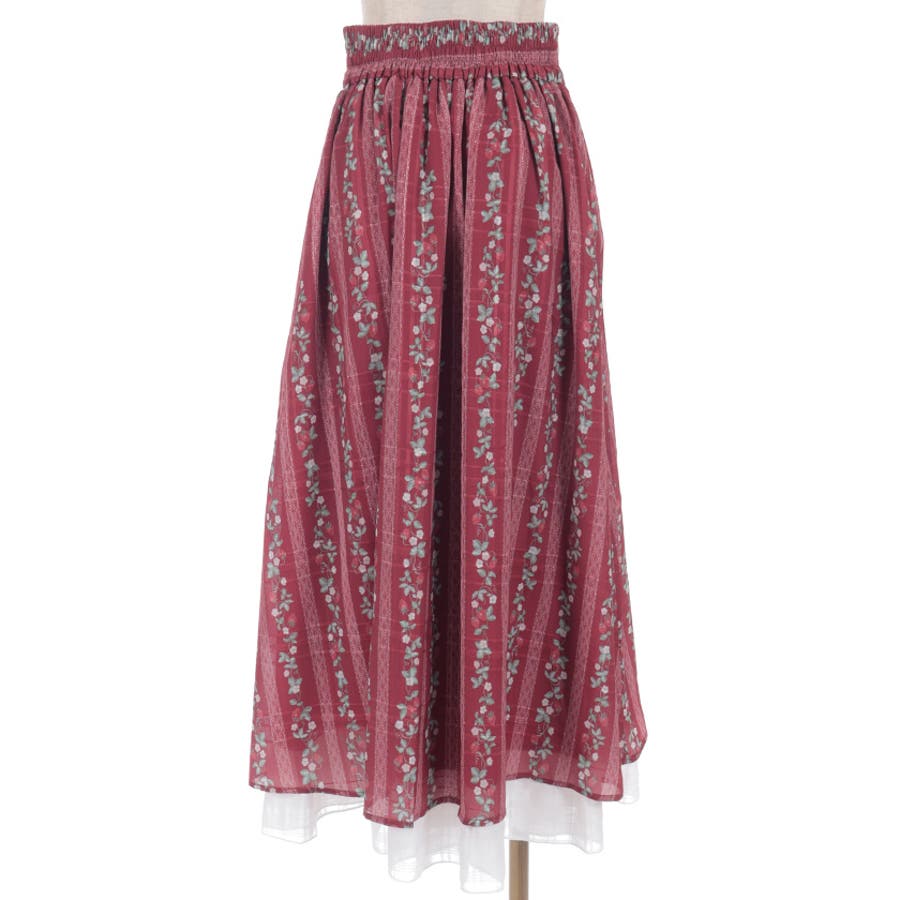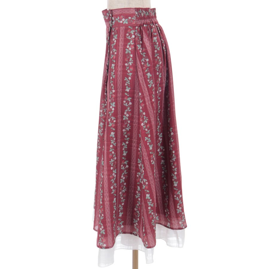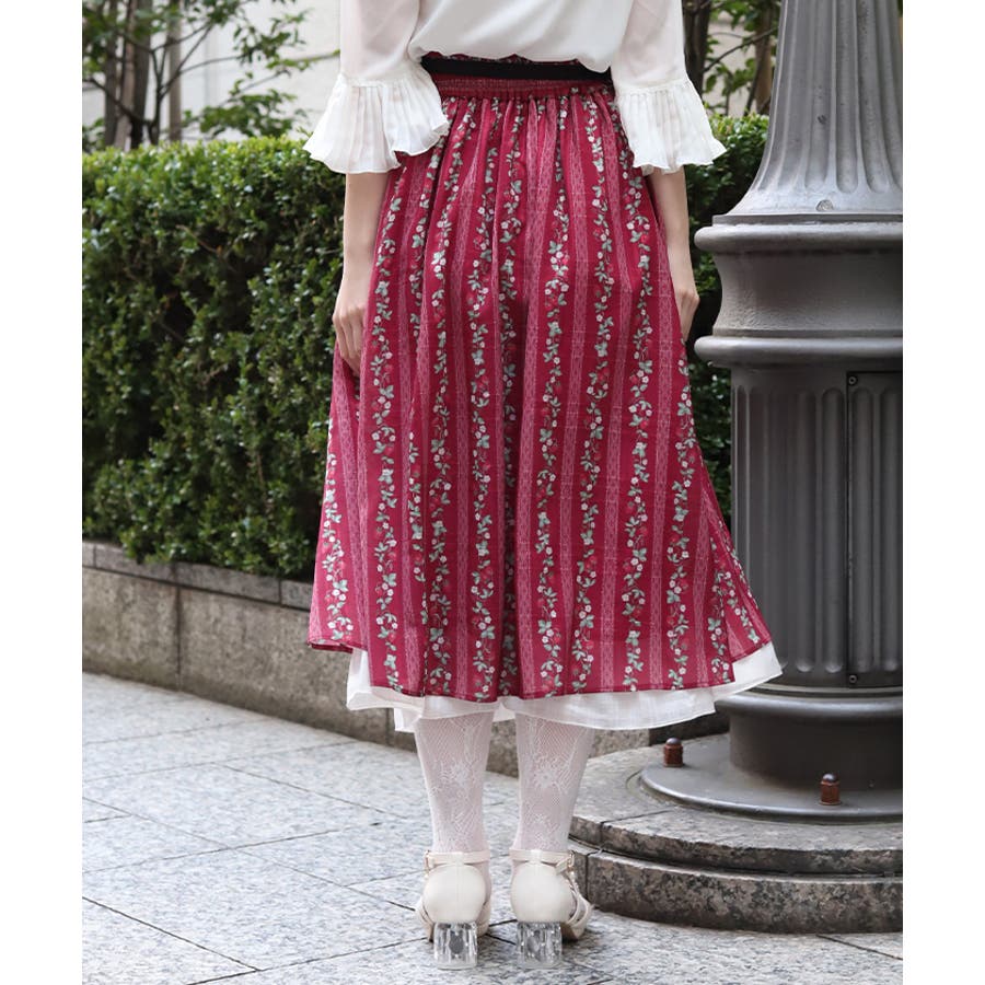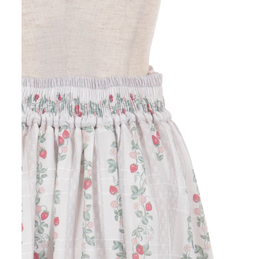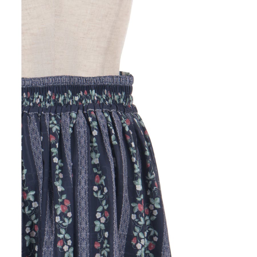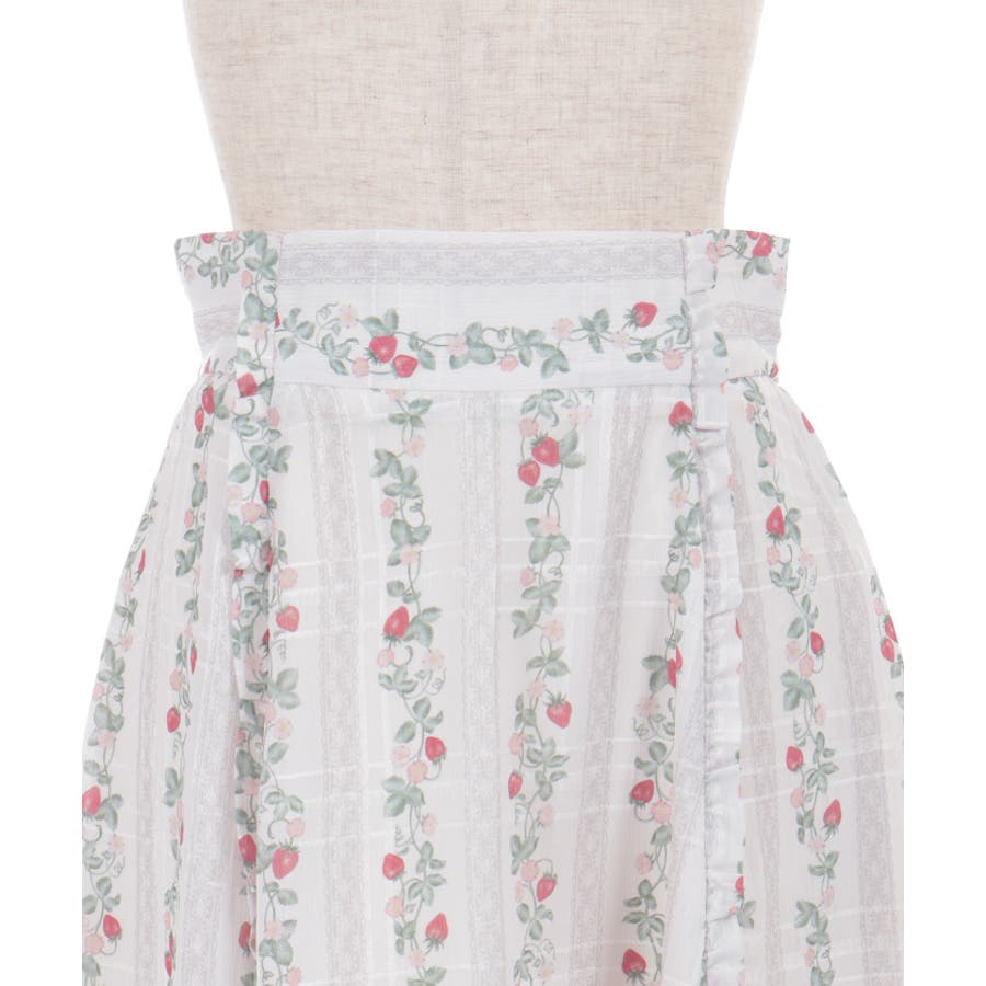 オリジナルの苺柄プリントが華やかな、フレアスカートです。
