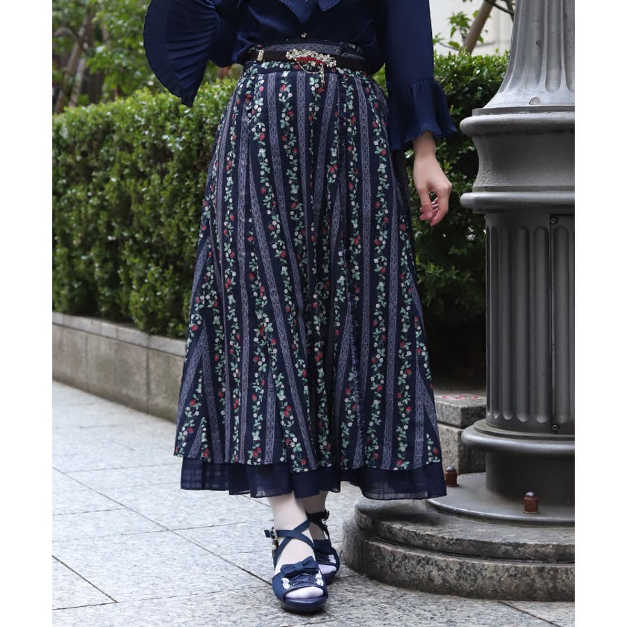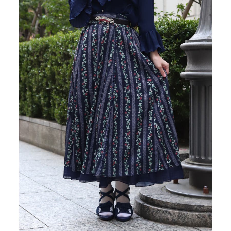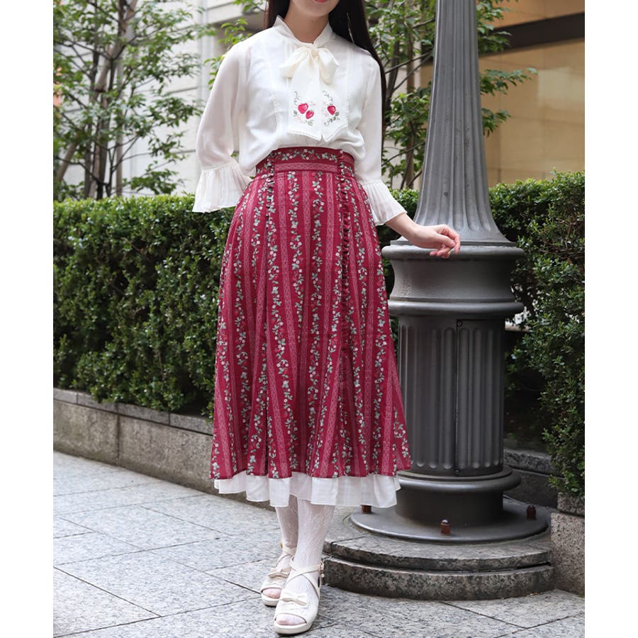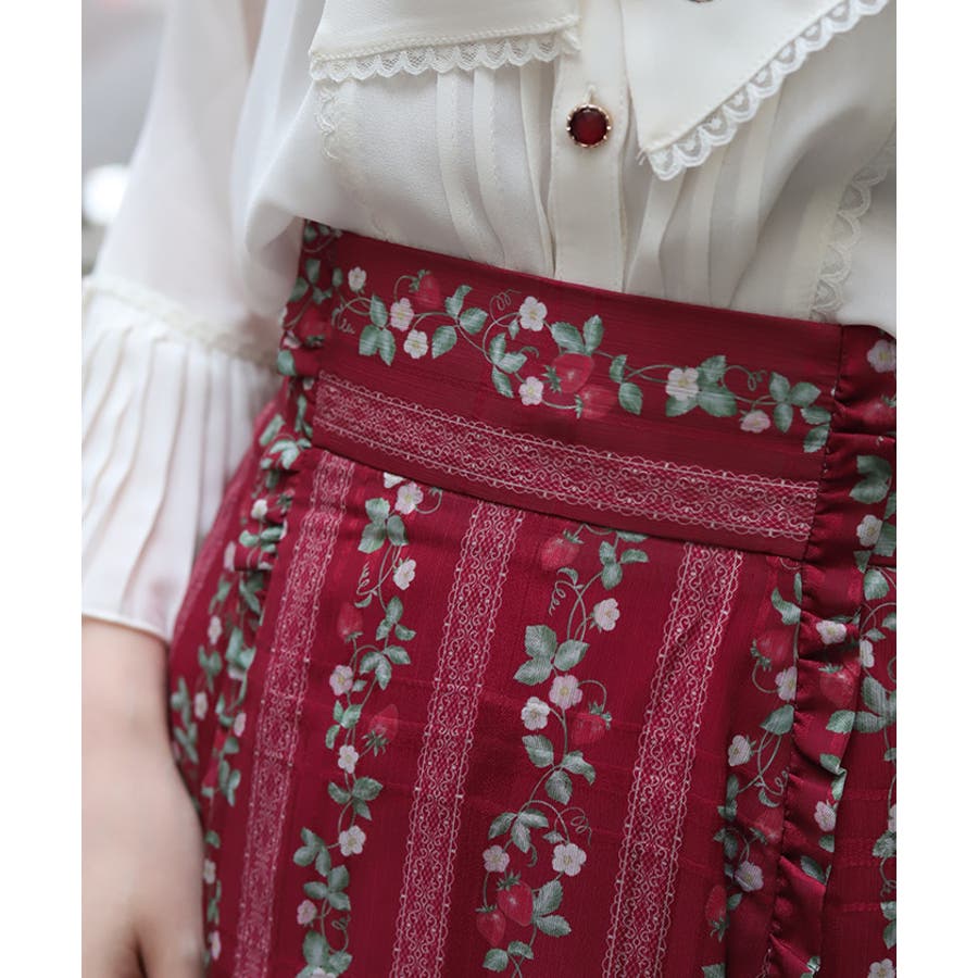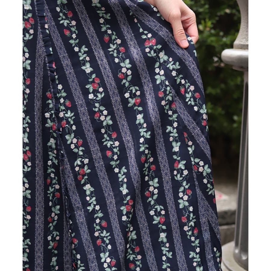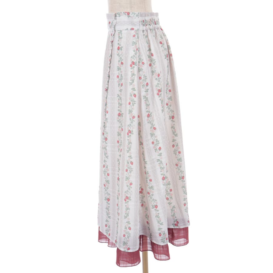 オリジナルの苺柄プリントが華やかな、フレアスカートです。