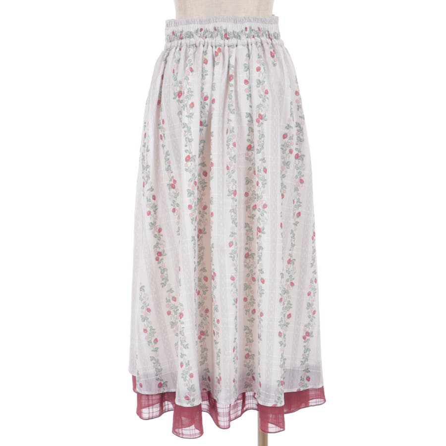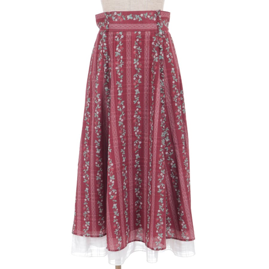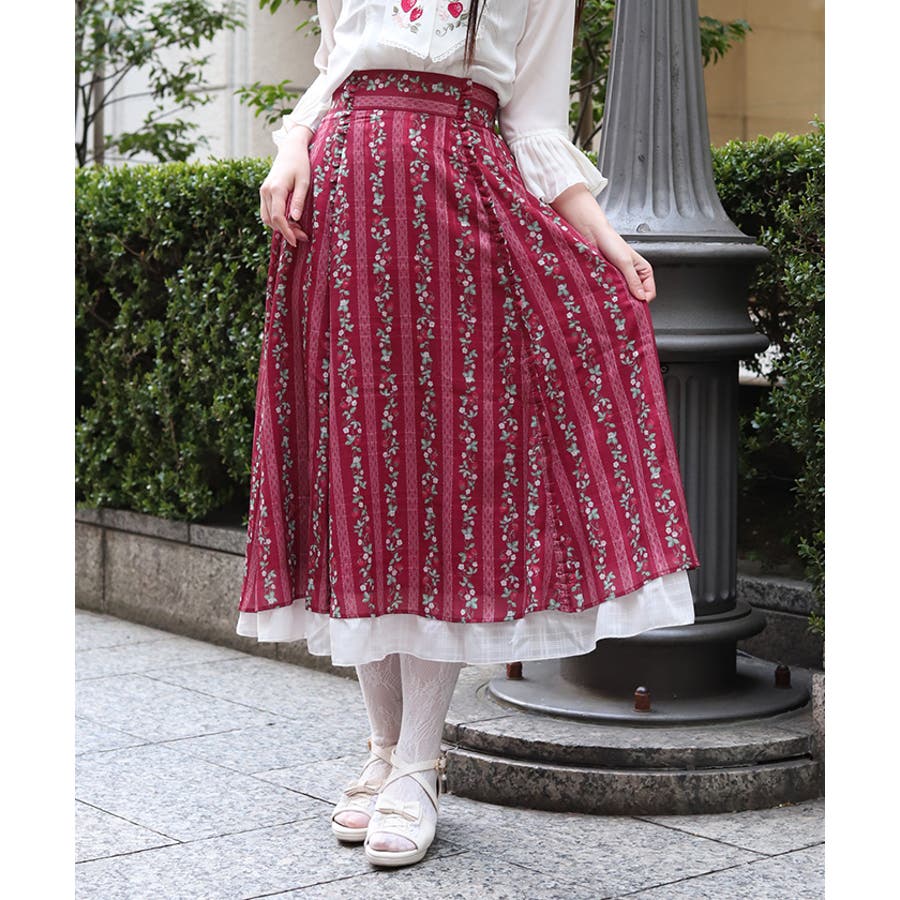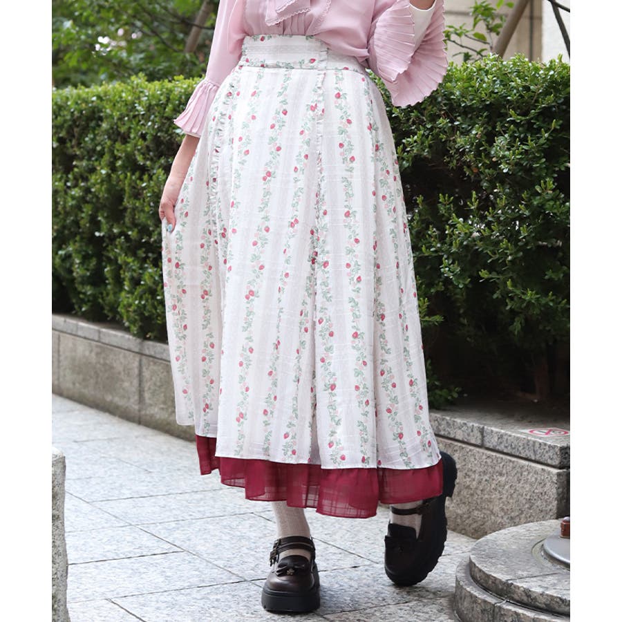 苺柄切替フレアスカート