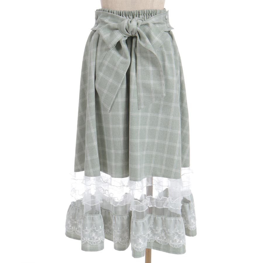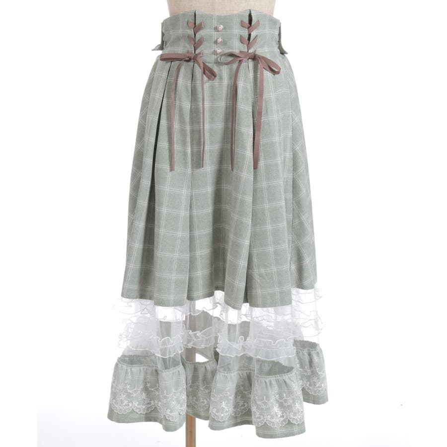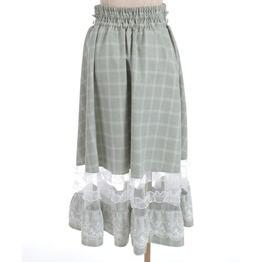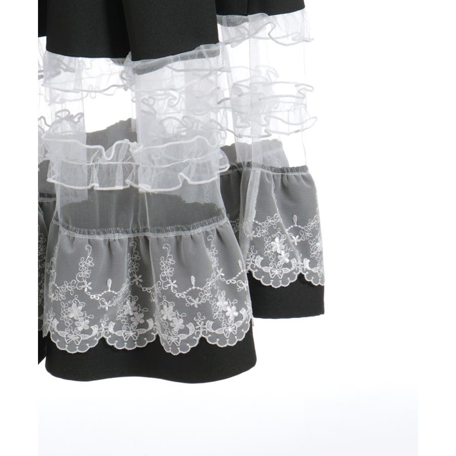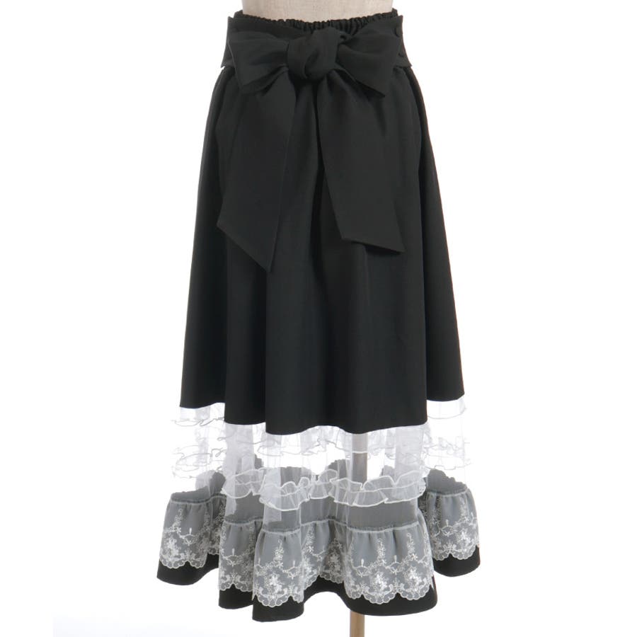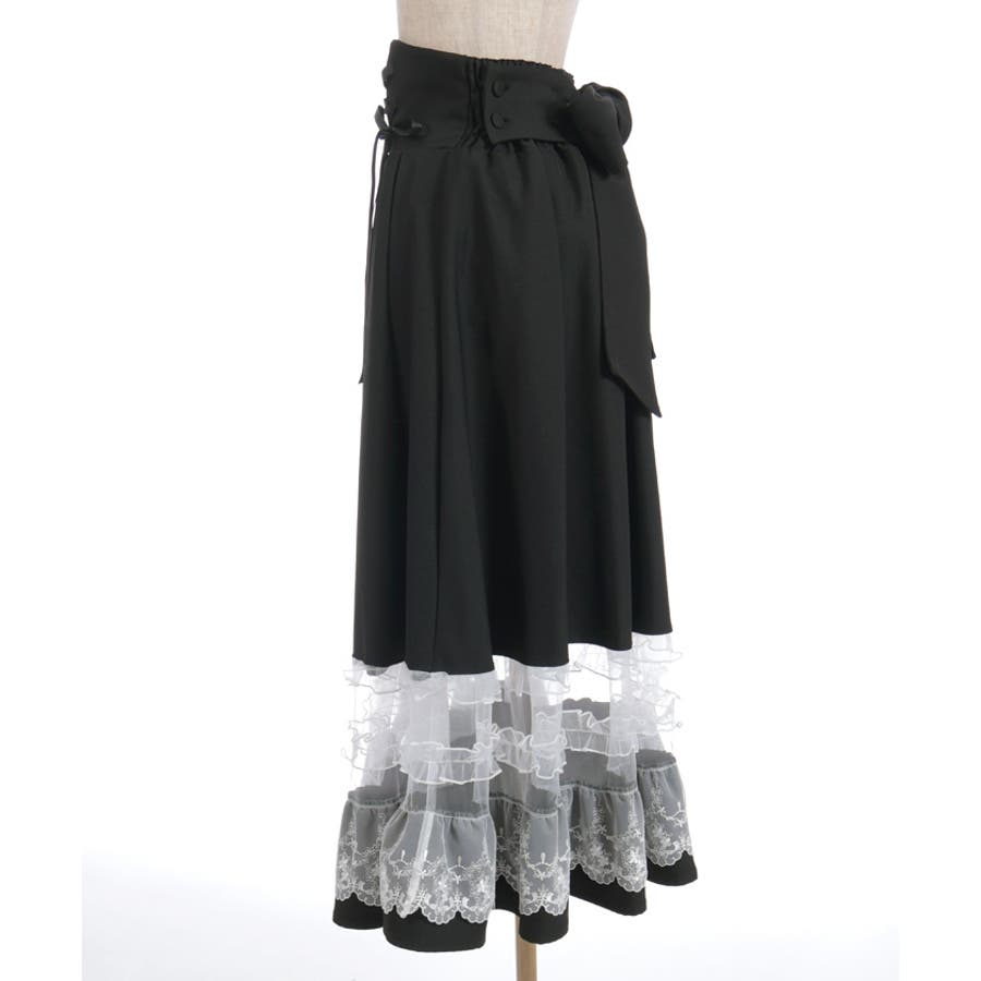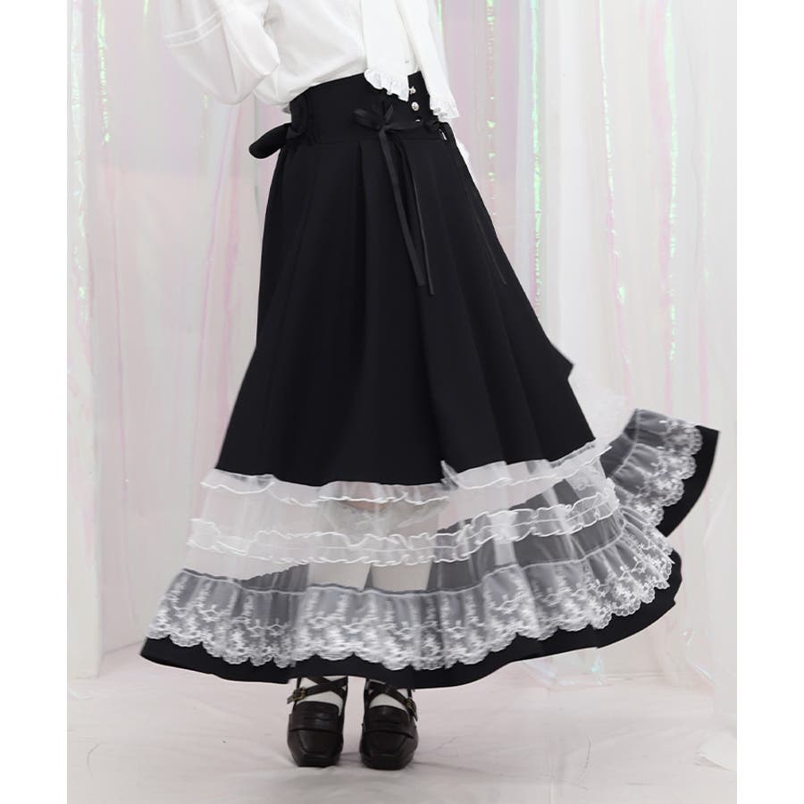 ガーリーなチュールフリルやレース使いが目を引く裾デザインのスカートです。