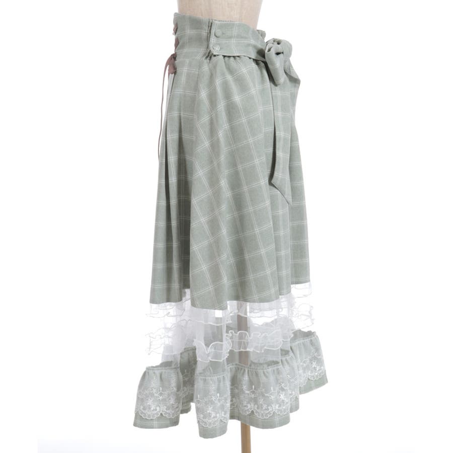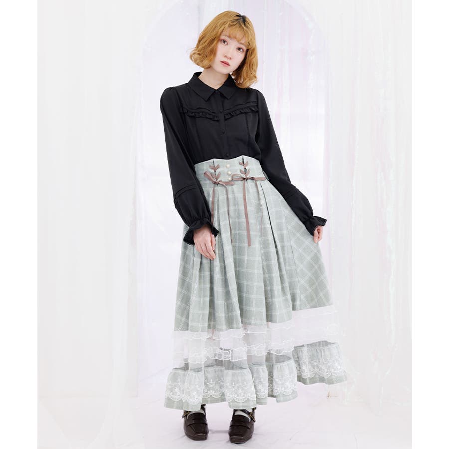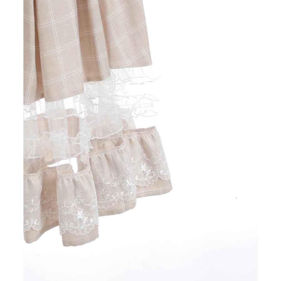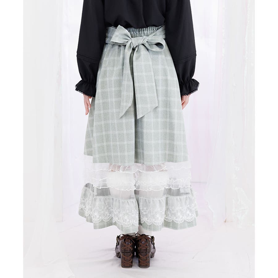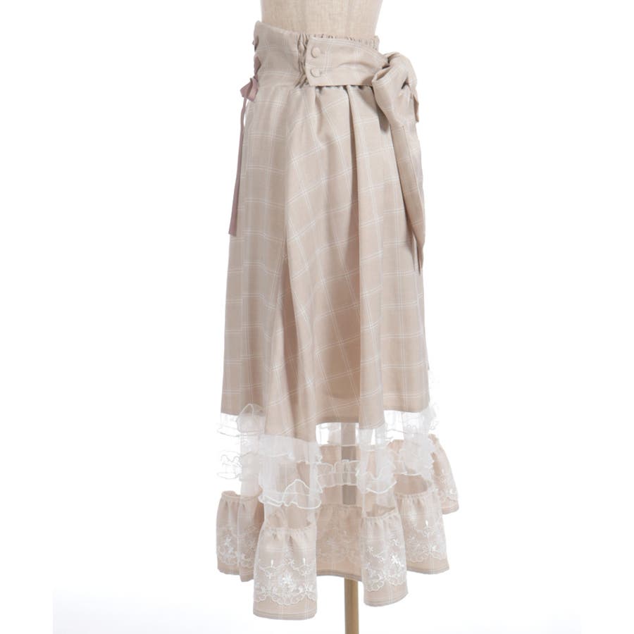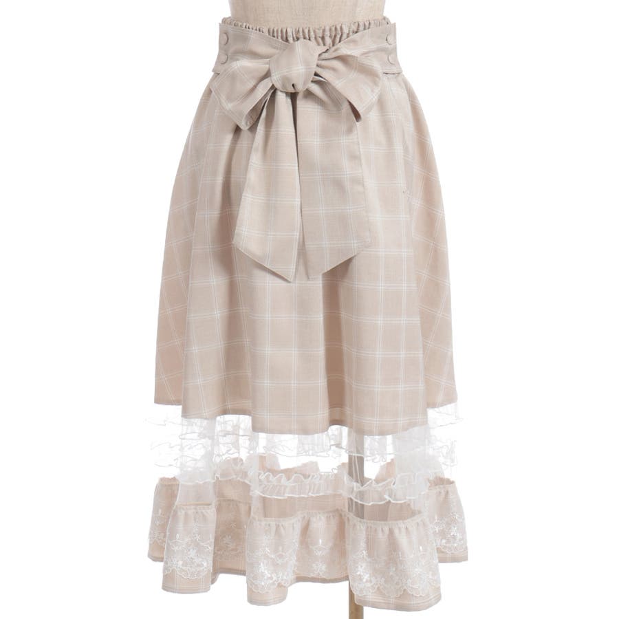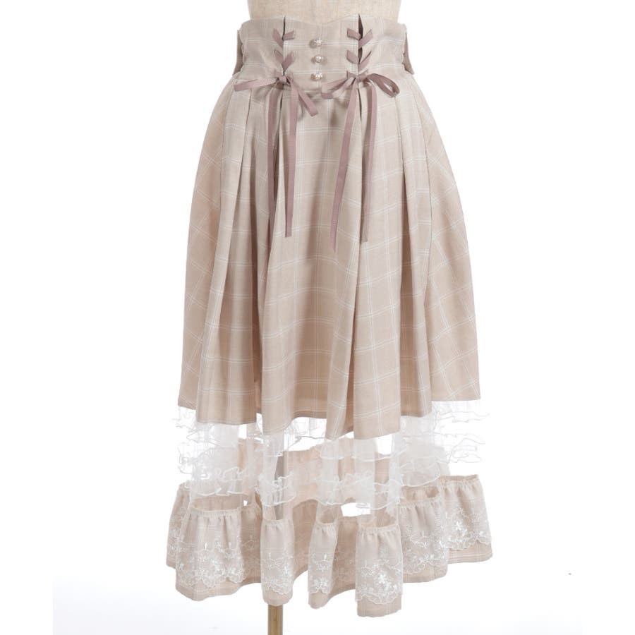 ガーリーなチュールフリルやレース使いが目を引く裾デザインのスカートです。