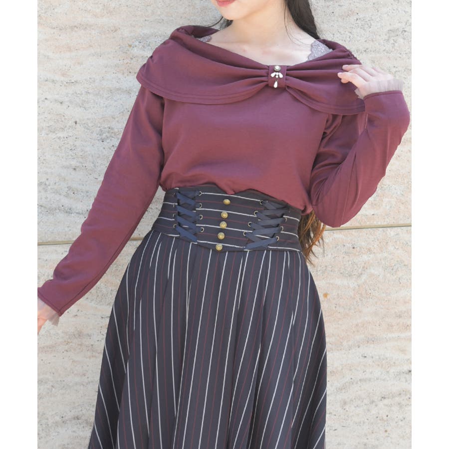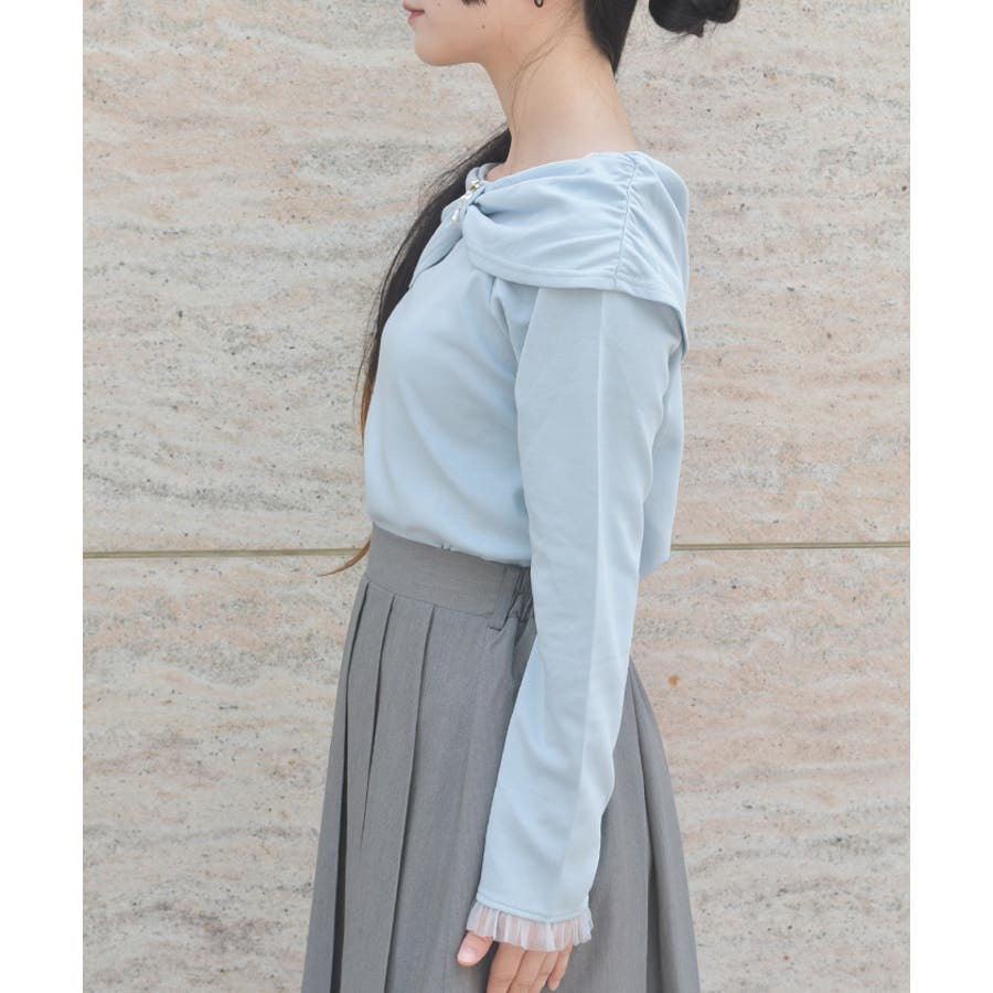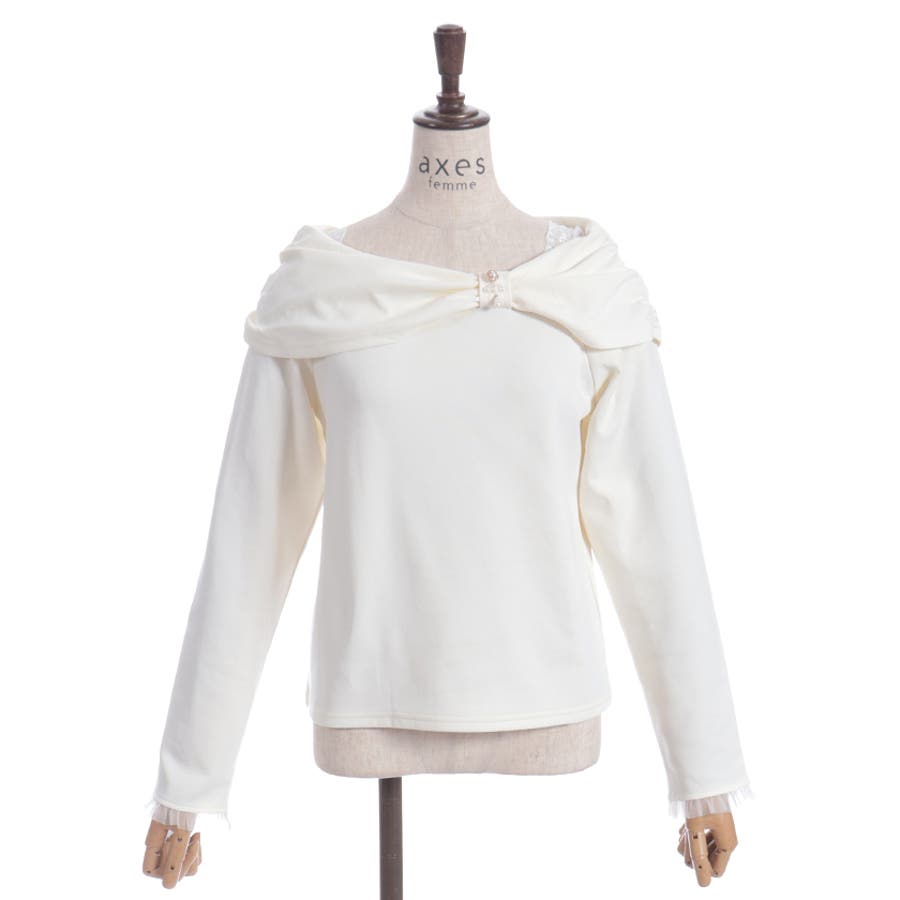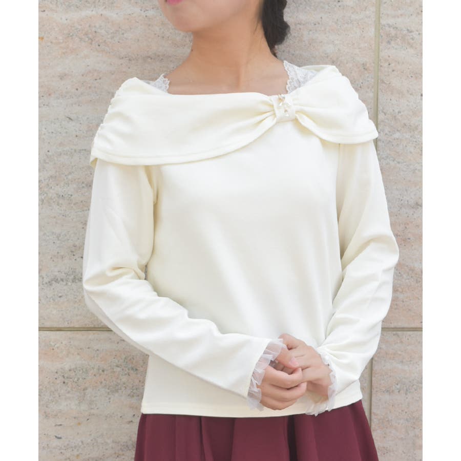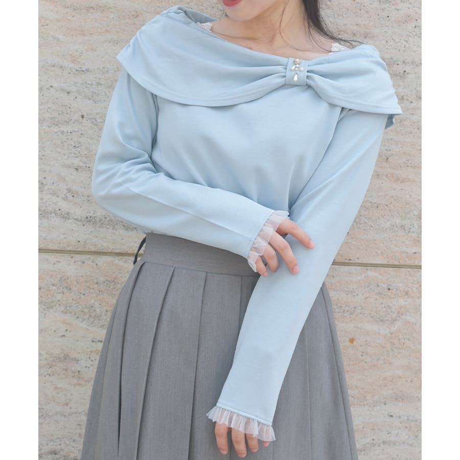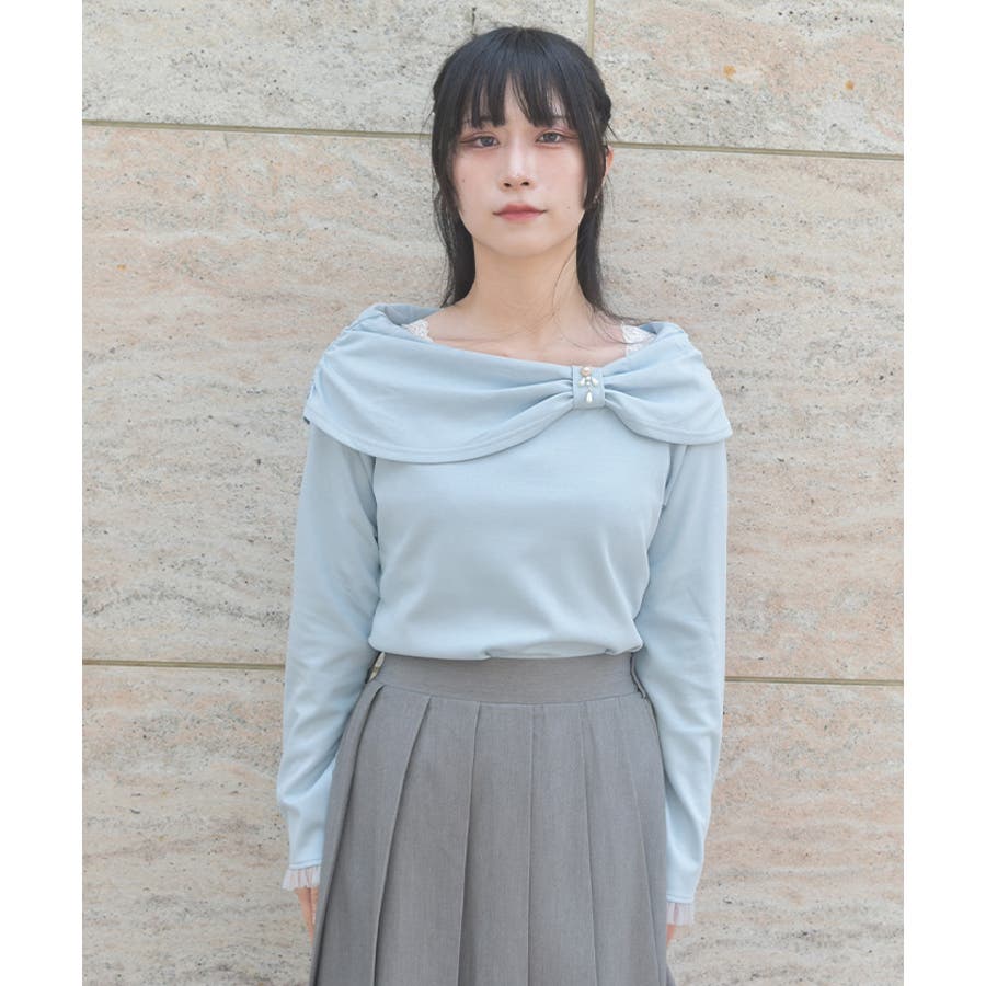 オフショル風リボンカットプルオーバー
