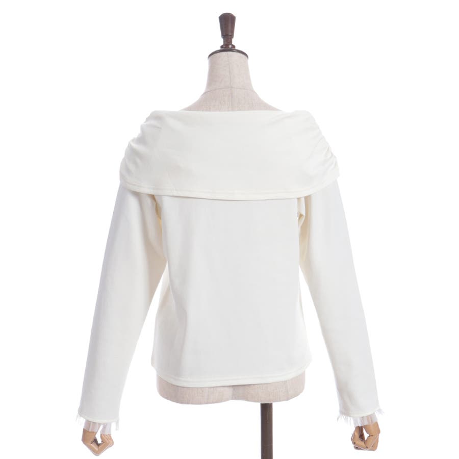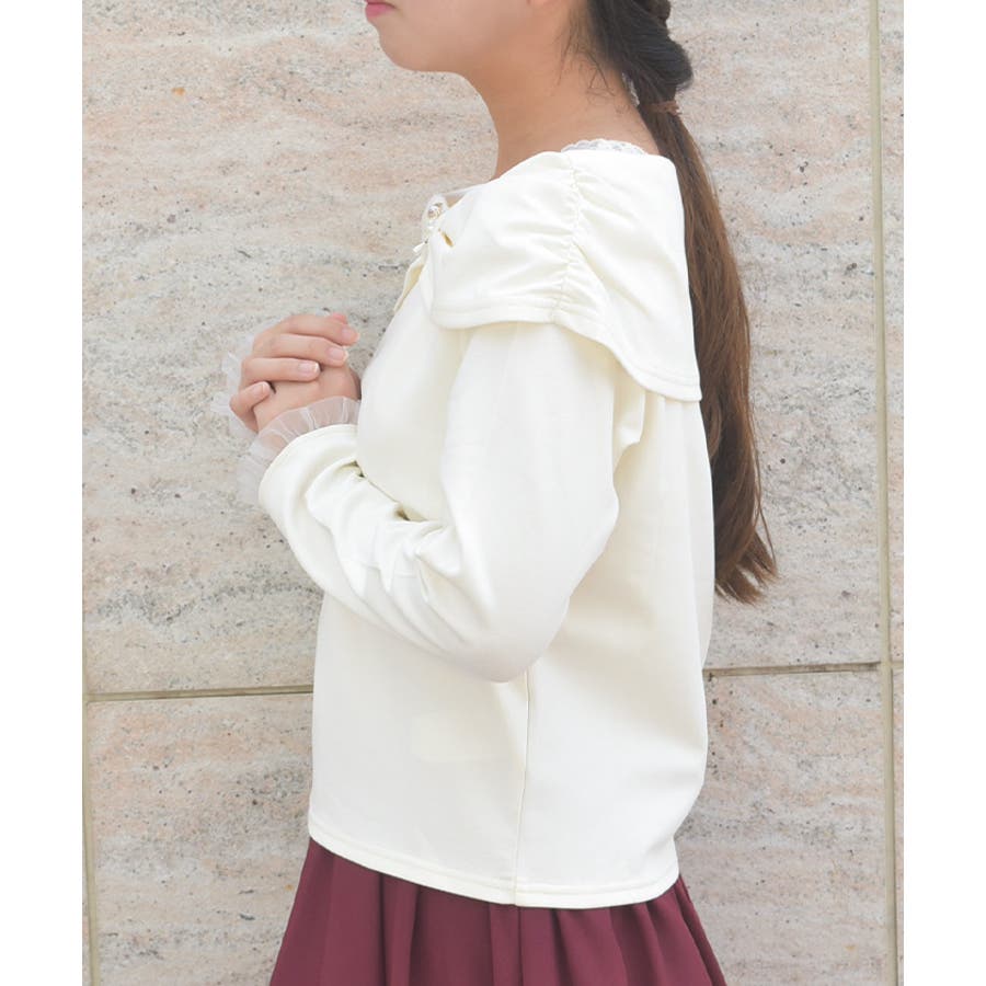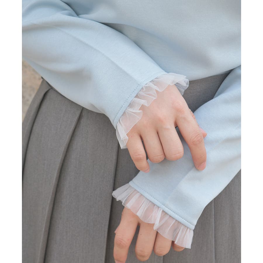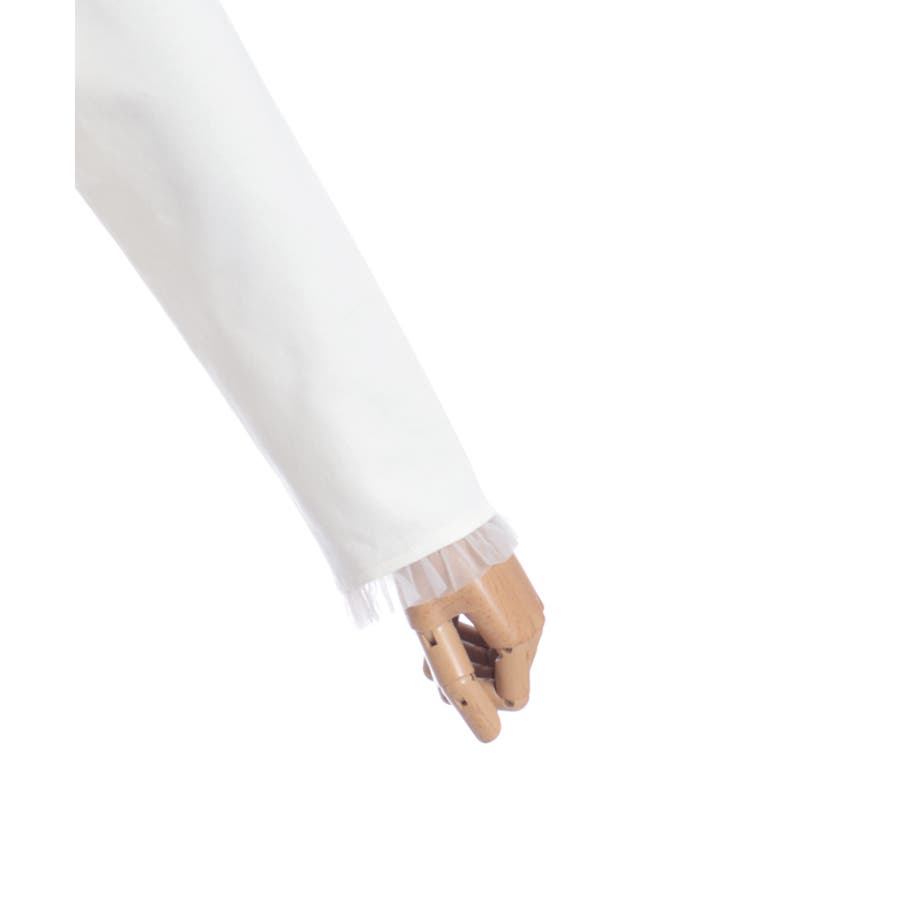 袖口にはさりげなくチュールフリルをあしらい、細部までこだわりの詰まったアイテムです。