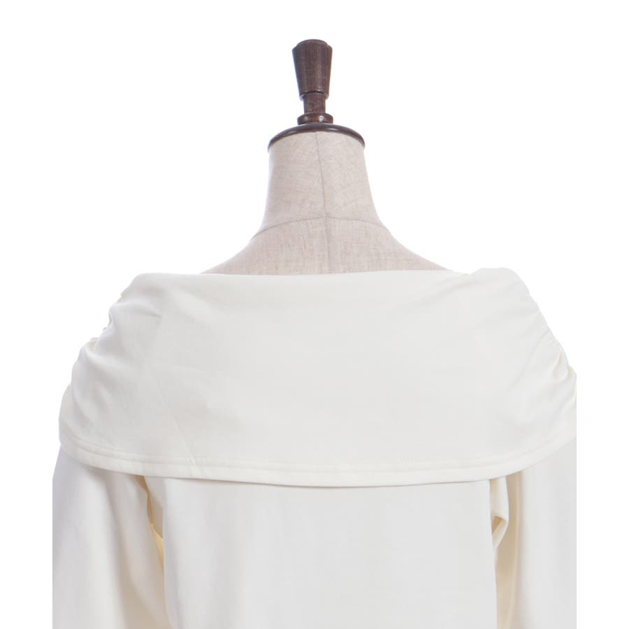 デコルテがキレイに見え、全体的にすっきりしたシルエットがポイント。