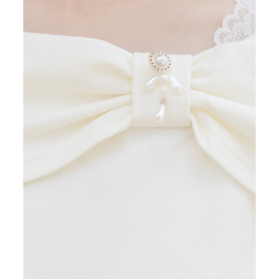 リボン襟の内側にはナイロンのストレッチレースを重ね、レイヤード風に見えるデザイン。