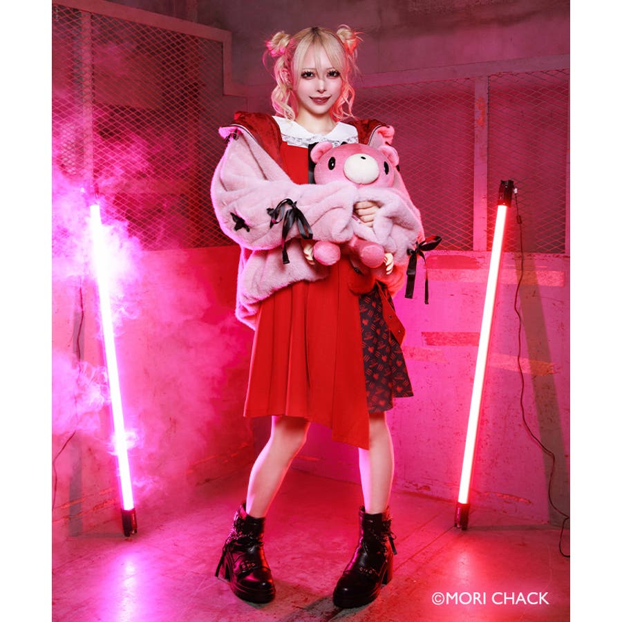 サイドにはグルーミーの総柄プリントやベルト、グルーミーのしっぽをイメージしたファーポンポンをあしらいました。
