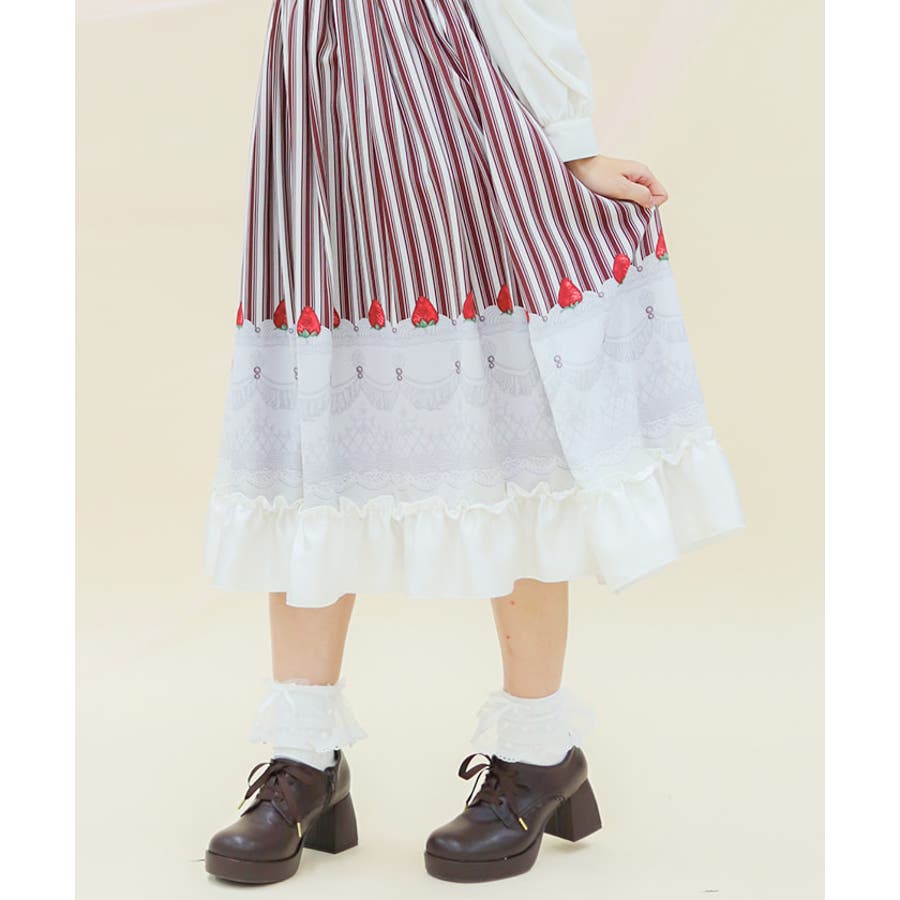 苺やホイップでショートケーキをイメージしたオリジナルプリントのワンピースです。