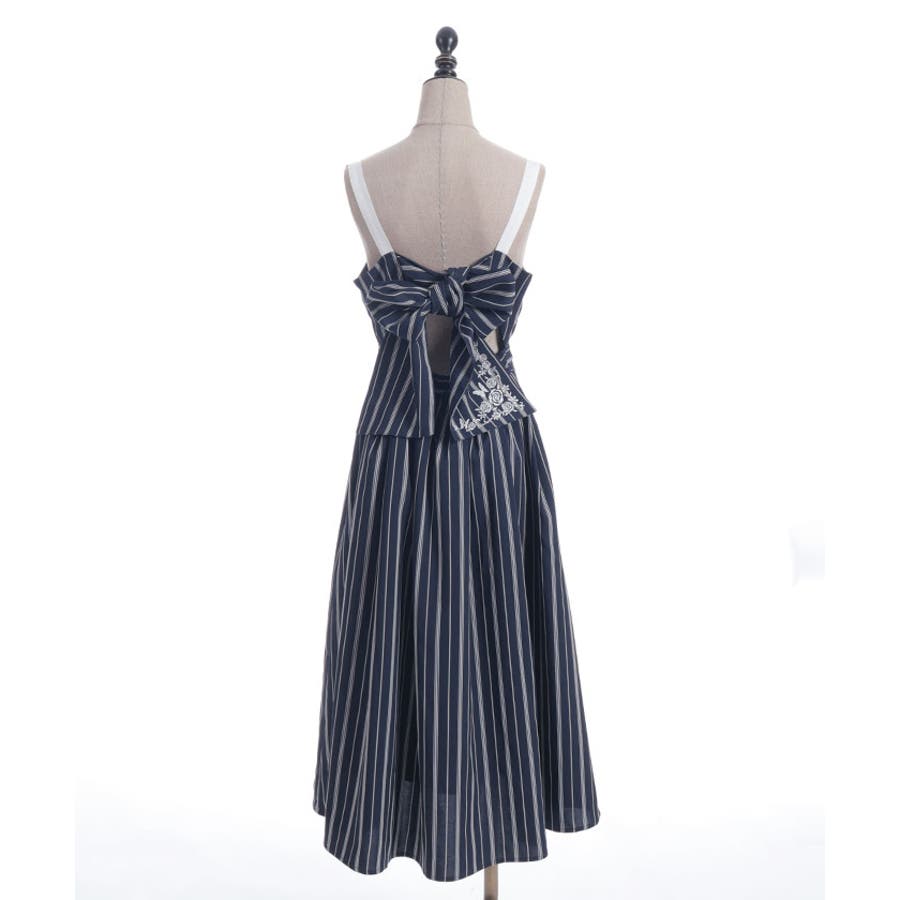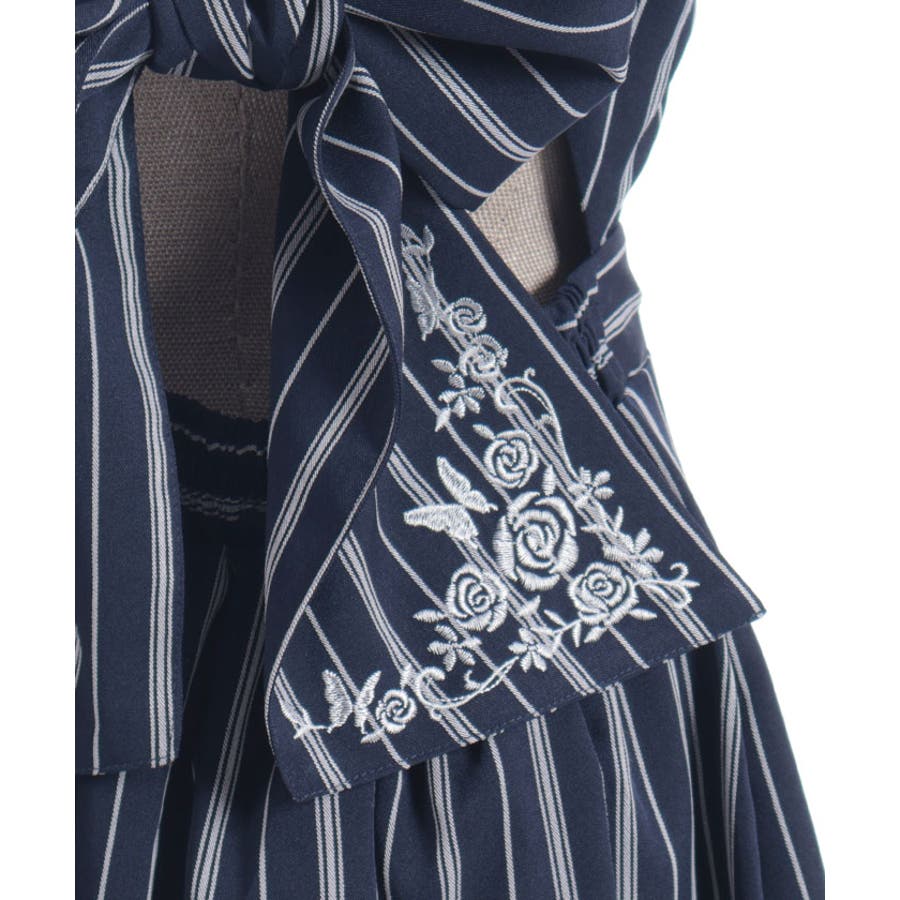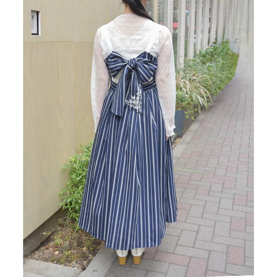 蝶刺繍リボンストライプジャンスカ