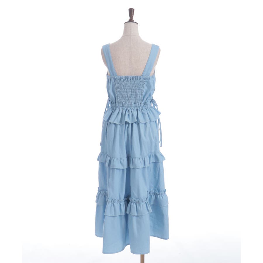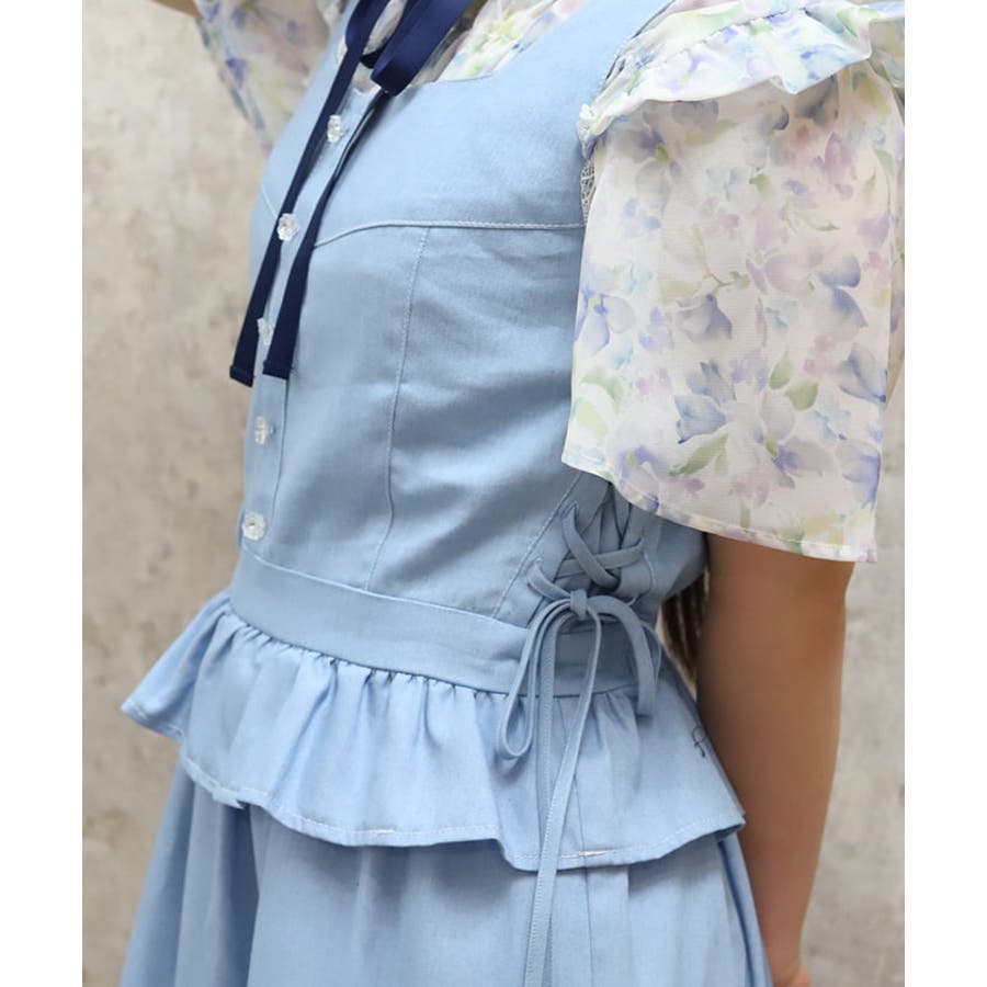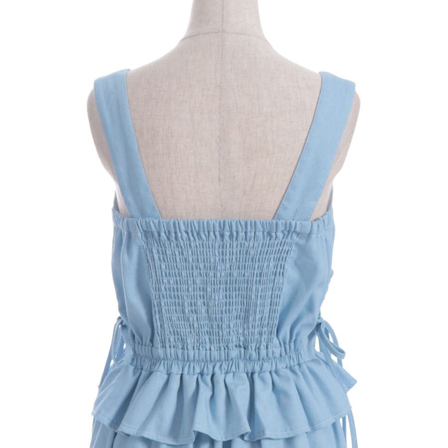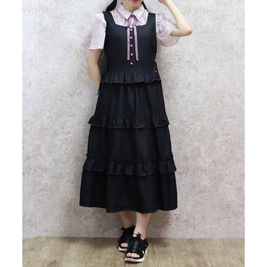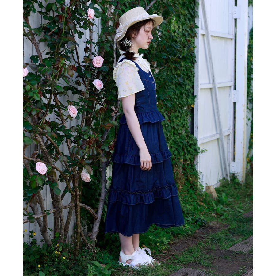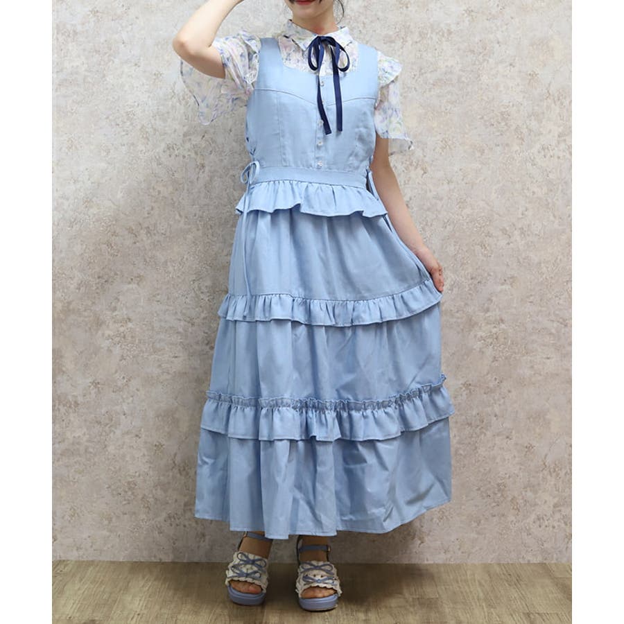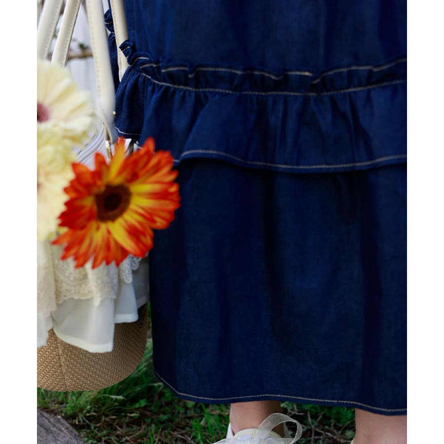 ティアードフリルのスカート部分は、裾に向かって自然に広がるフレアシルエットがポイント。