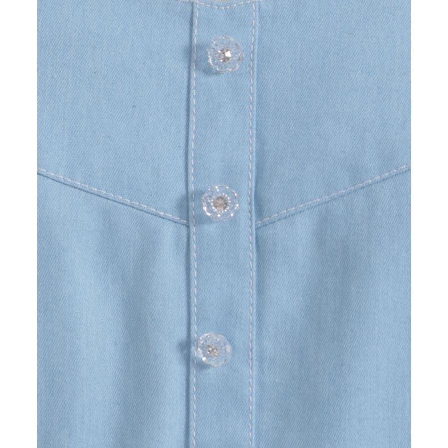 ラインストーンがキラッと光るクリアフラワーのボタンが夏らしい印象に。