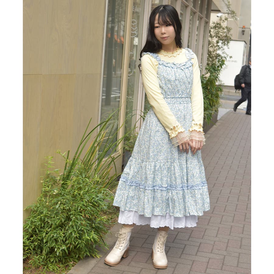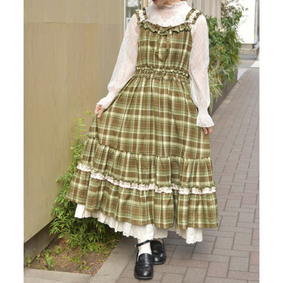 部分的にフリルやティアードデザインを取り入れ、可憐な表情を楽しめるジャンパースカート。