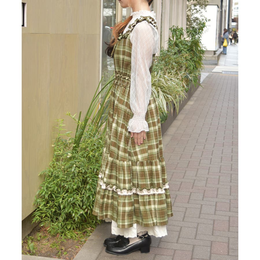 動きのあるフリルとティアード切替が立体感を生み、装いに奥行きをプラスします。クラシカルなチェック柄と、やさしい雰囲気の小花柄でご用意し、それぞれ異なる世界観を楽しめる仕上がりです。