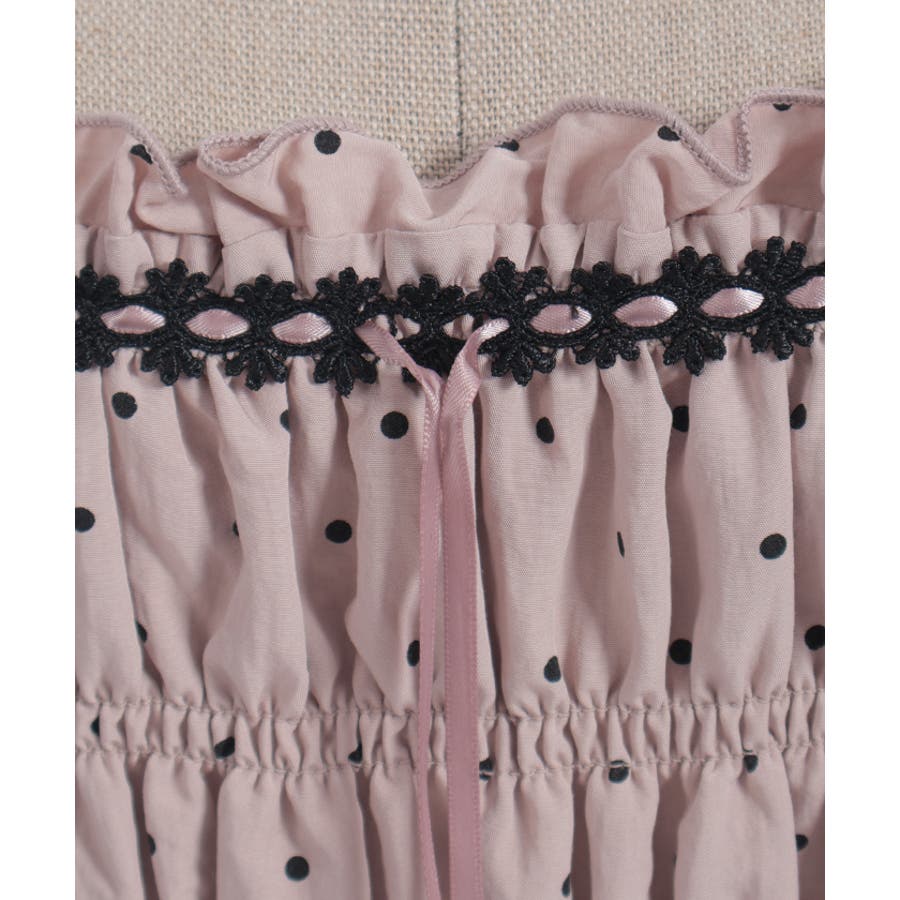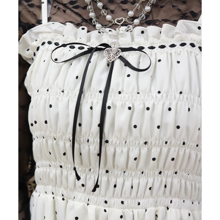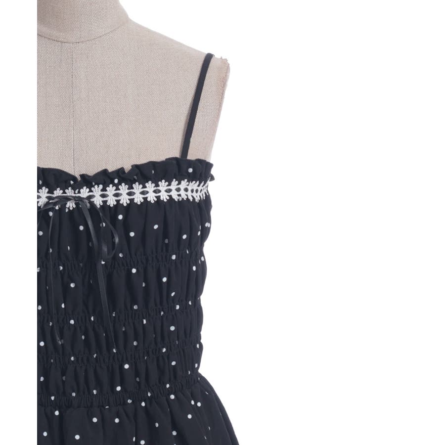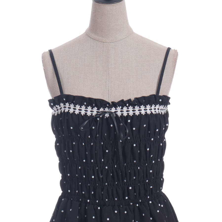 | 素材 | 表地:レーヨン75%、 :ナイロン25%、レース:ポリエステル100%、リボン:ポリエステル100%、裏地:ポリエステル100% |