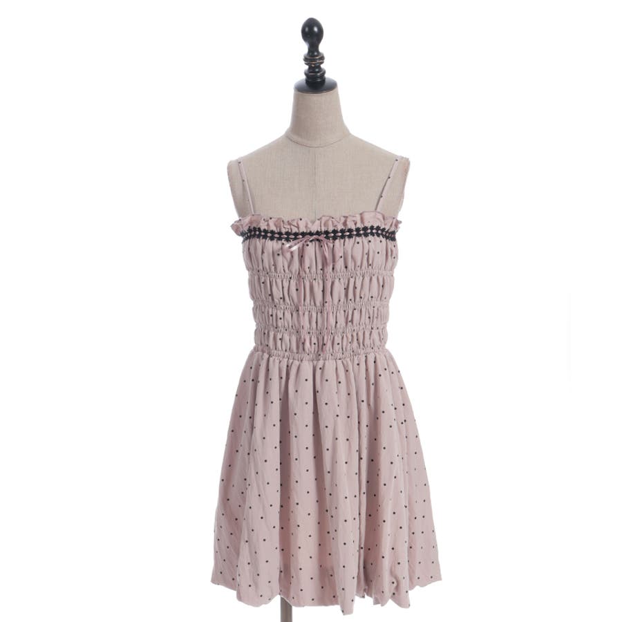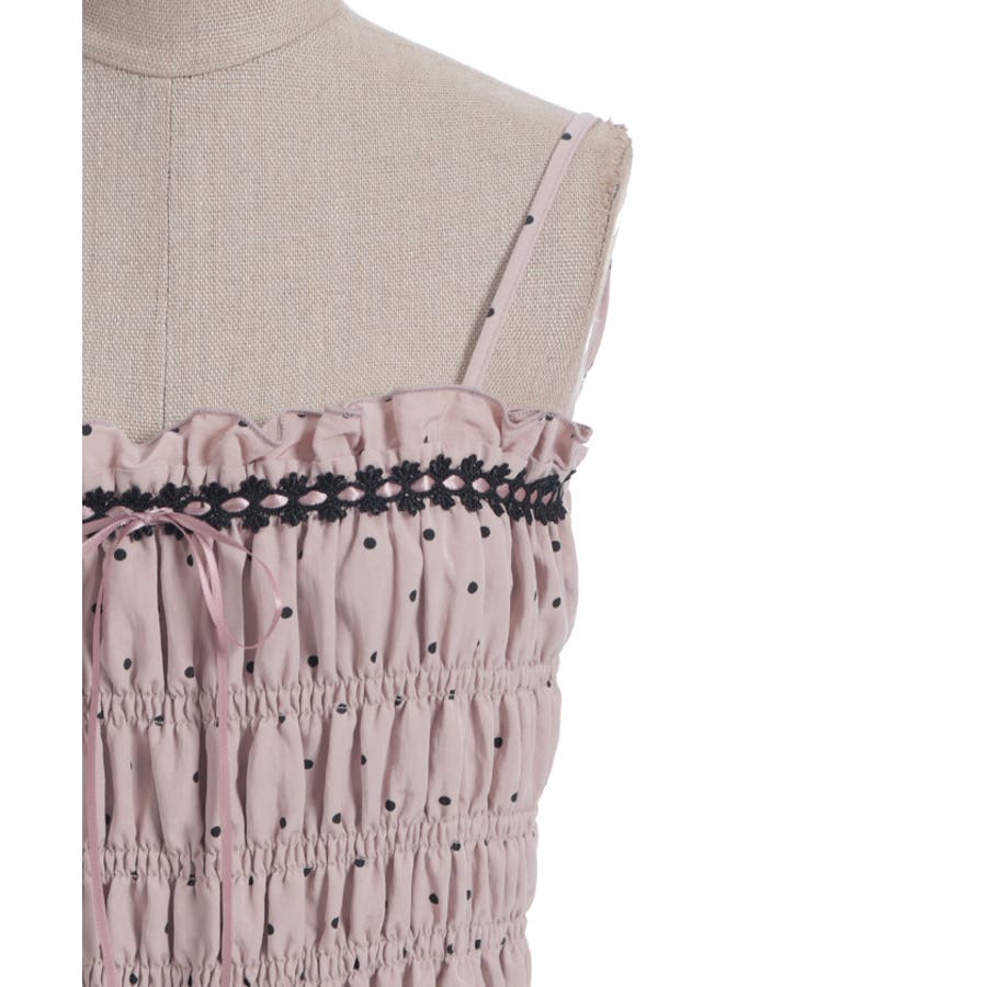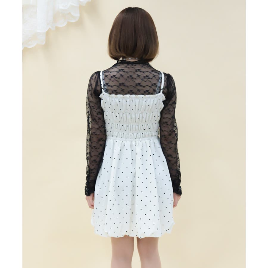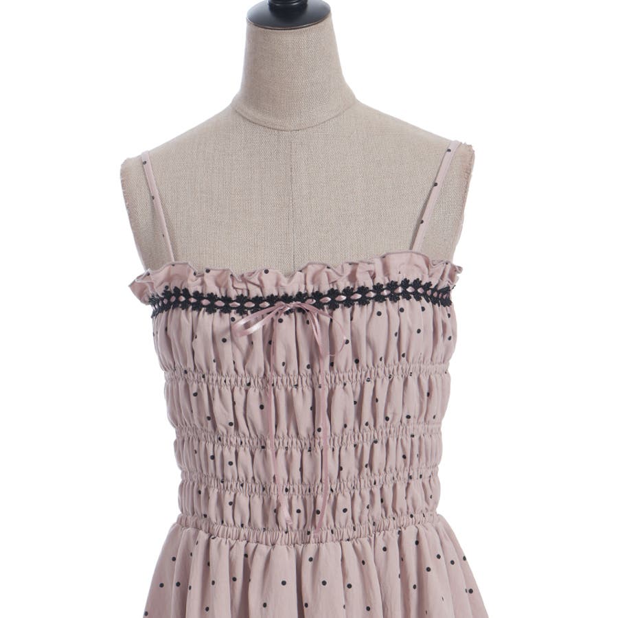 | 素材 | 表地:レーヨン75%、 :ナイロン25%、レース:ポリエステル100%、リボン:ポリエステル100%、裏地:ポリエステル100% |