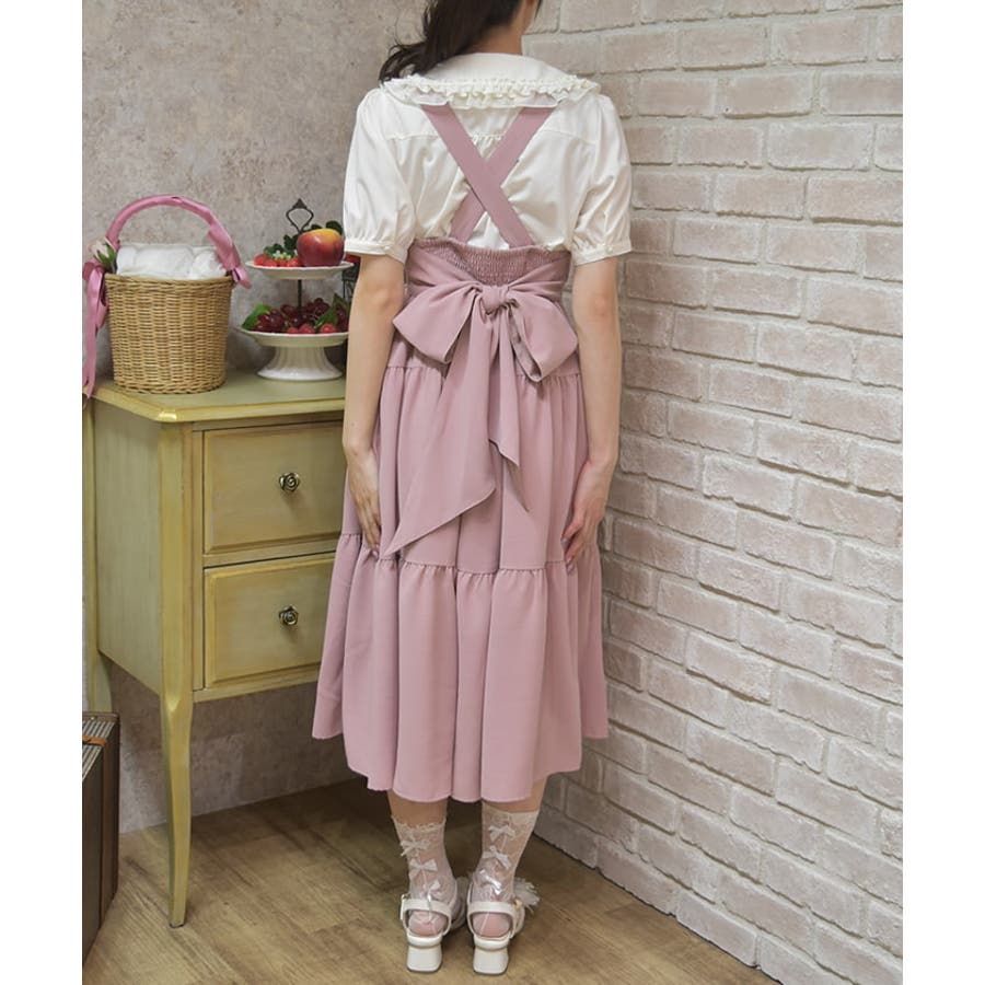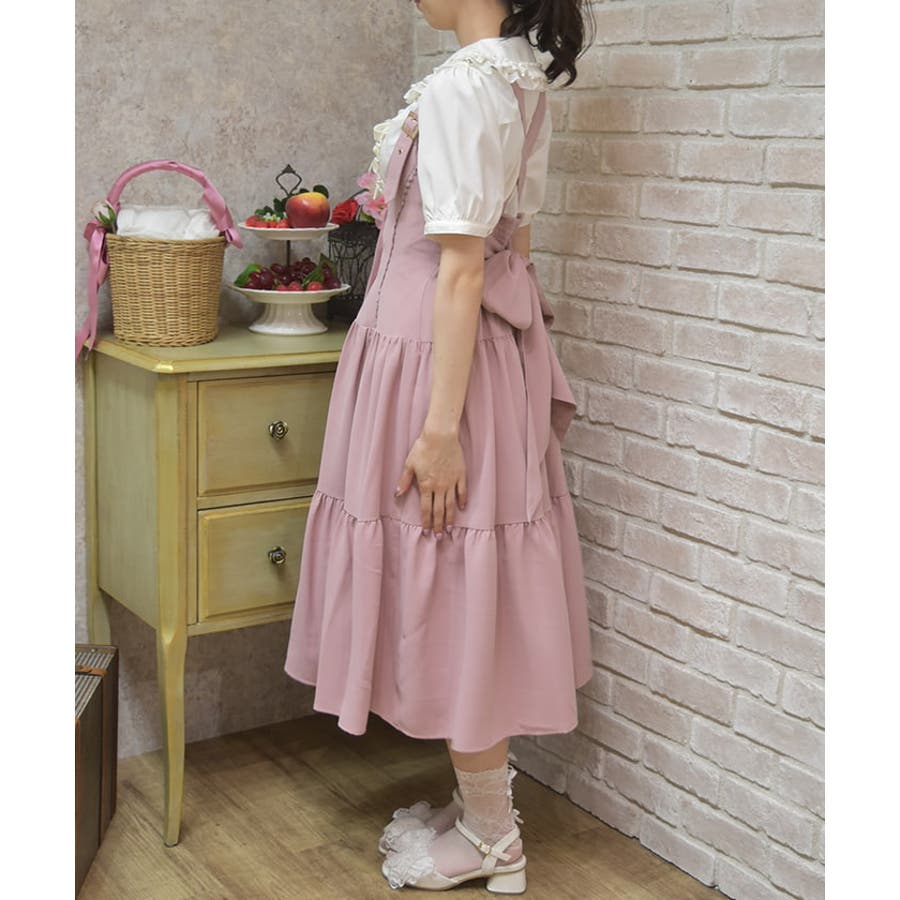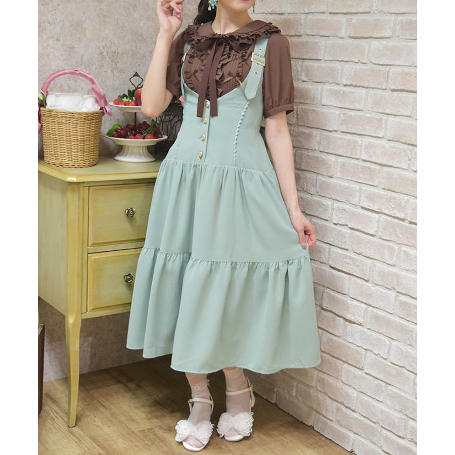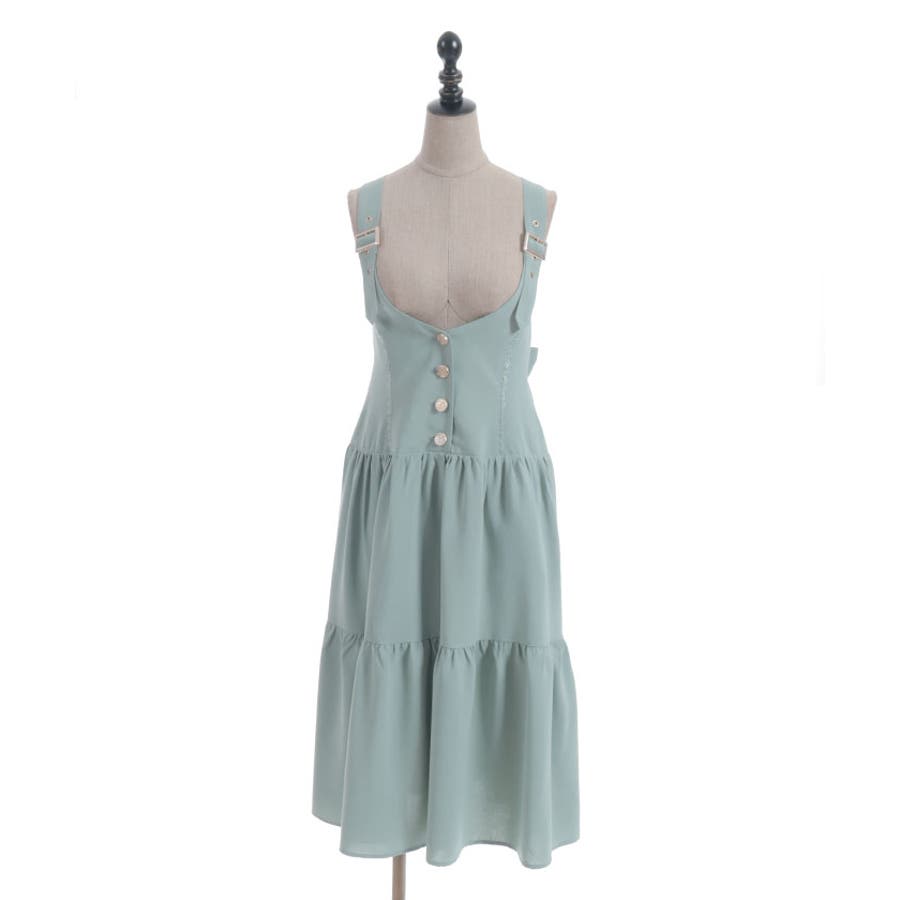 胸元と背中がスッキリと開いたデザインのジャンスカは夏でも可愛く重ね着を楽しめます。