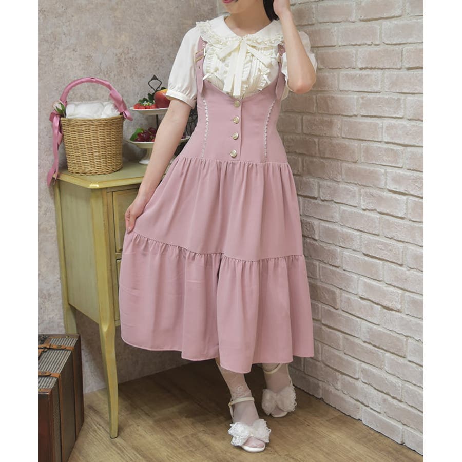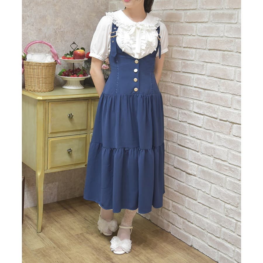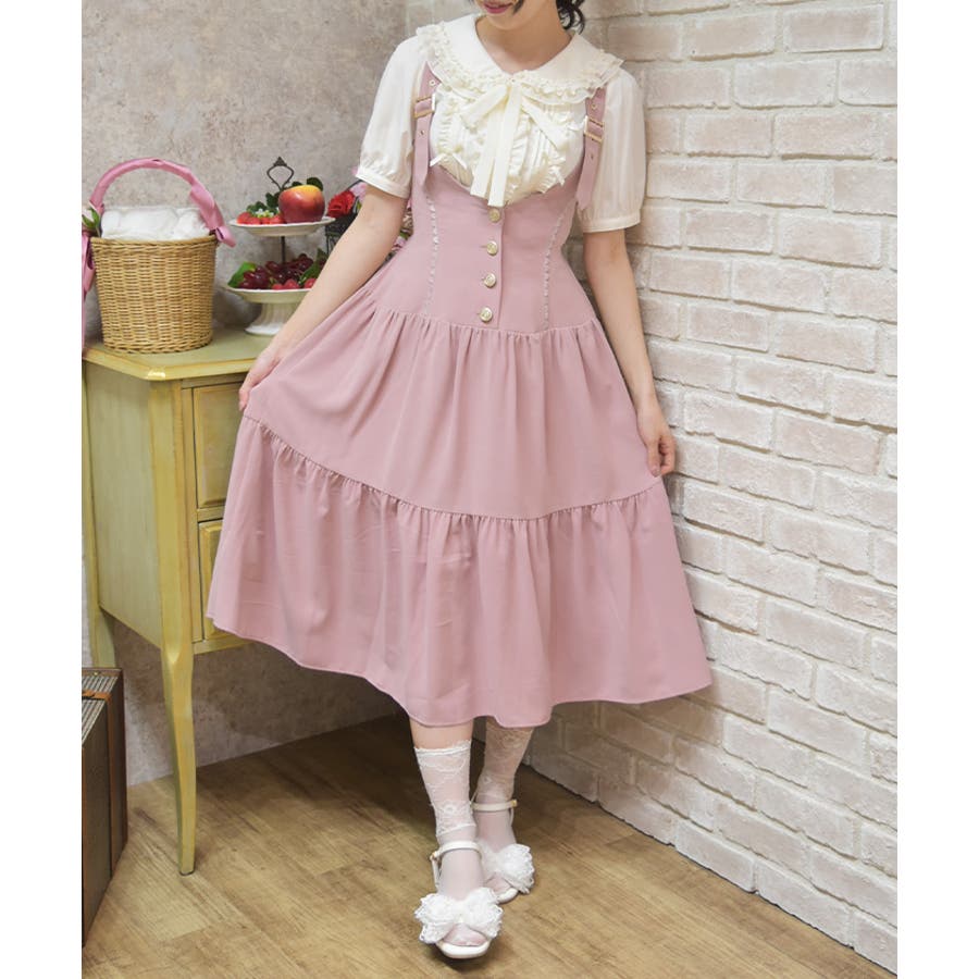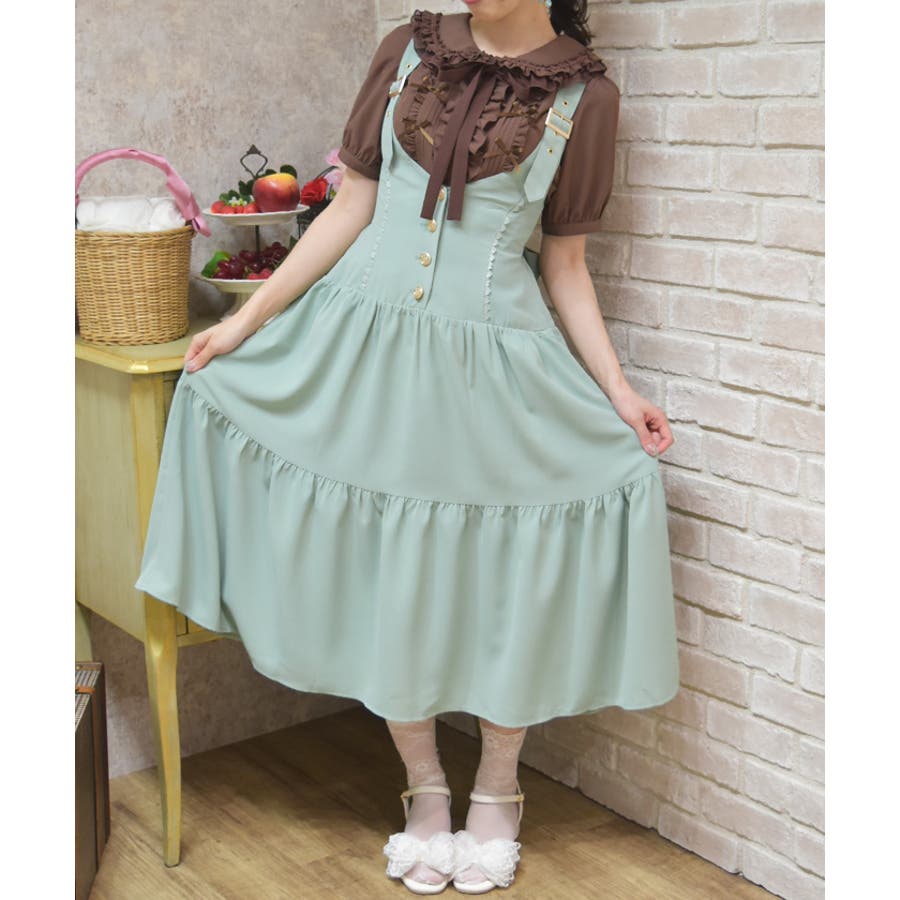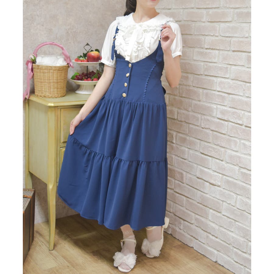 胸元と背中がスッキリと開いたデザインのジャンスカは夏でも可愛く重ね着を楽しめます。