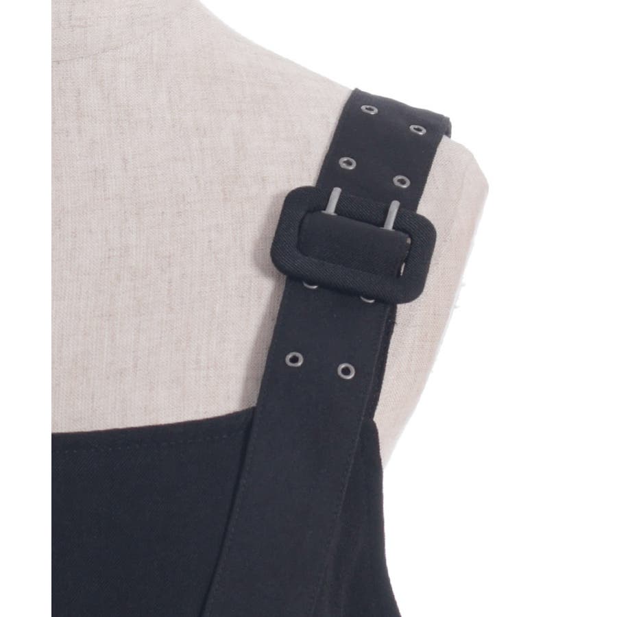 ベルト風の肩紐のデザインがコーディネート全体をハードな印象に仕上げます。