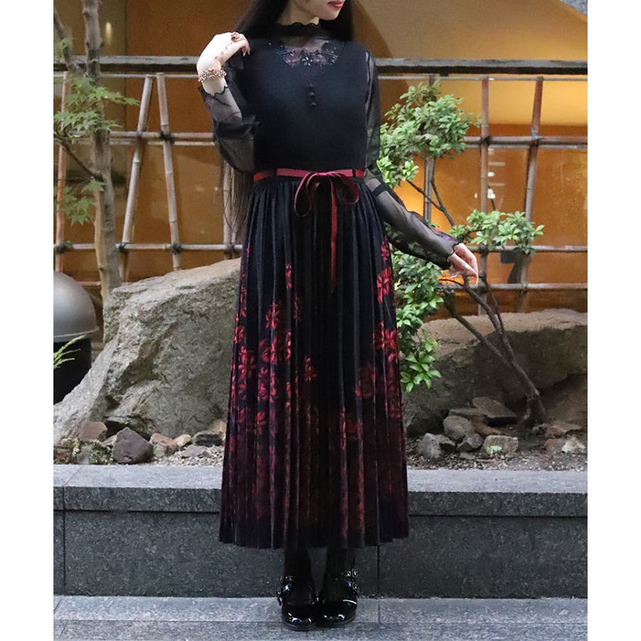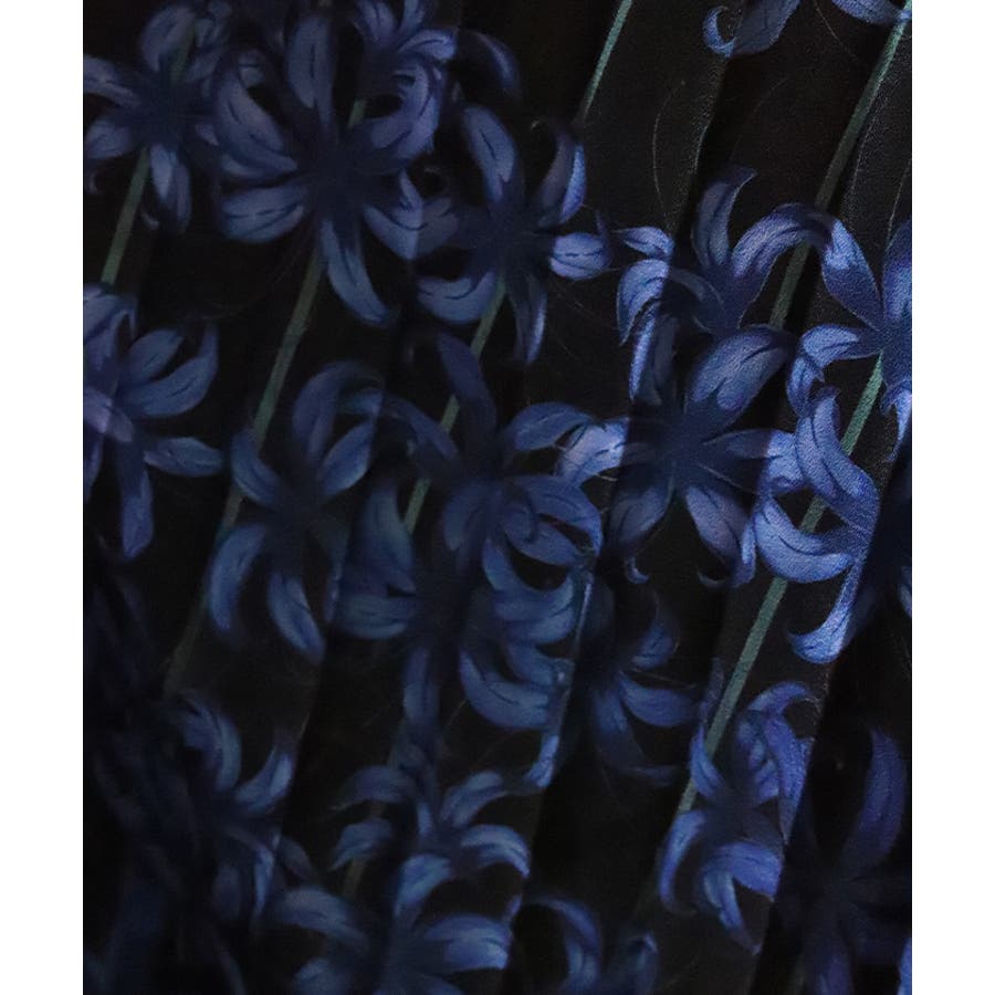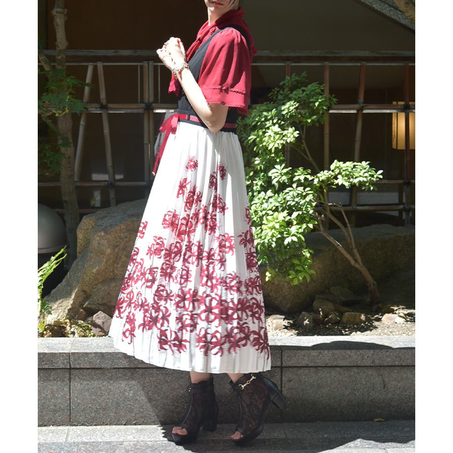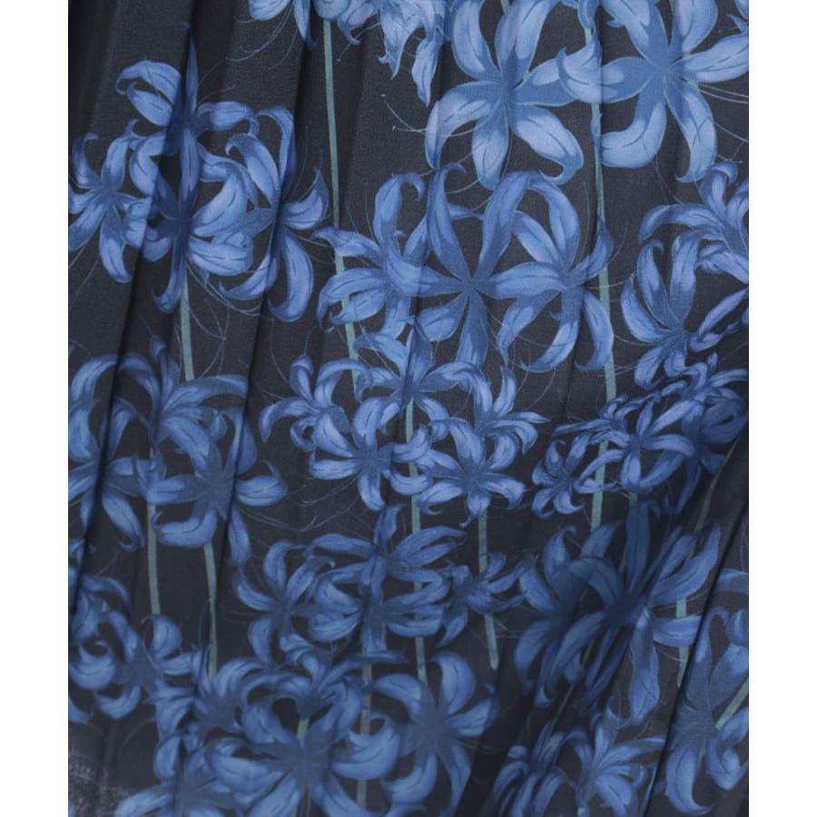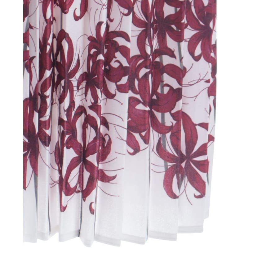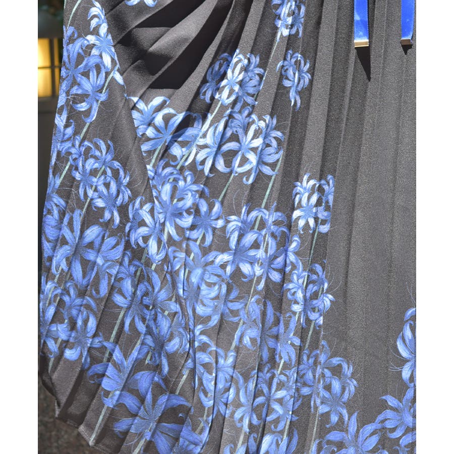 落ち着いた雰囲気の中に存在感を放つ、彼岸花モチーフのワンピース。プリントの美しさが着こなしに印象的なアクセントを加えてくれます。