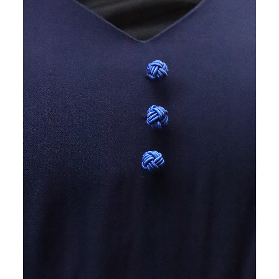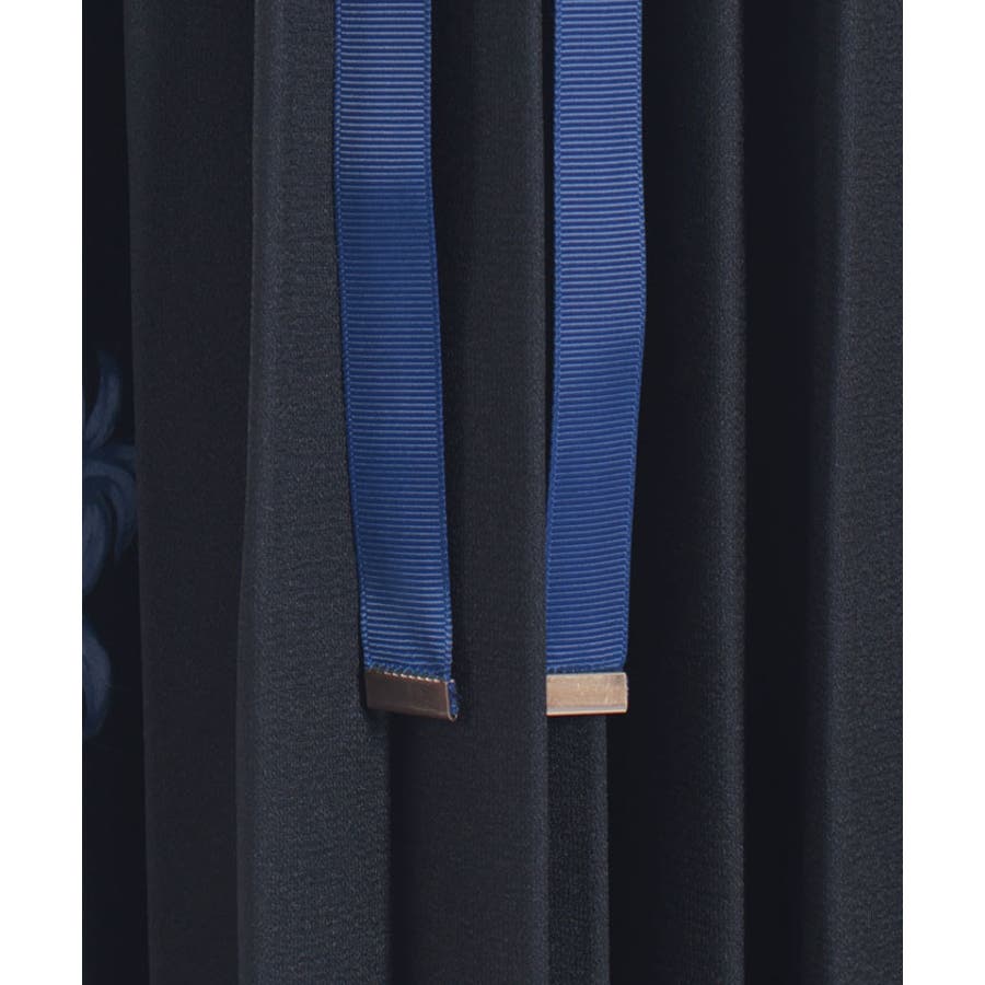 ウエストのリボンは取り外し可能で、スタイリングに合わせたアレンジがお好みでできます。シンプルなトップと華やかなスカートのバランスがポイントです。フロントのボタンもさりげないアクセントに。