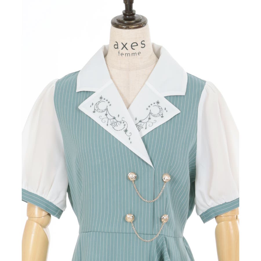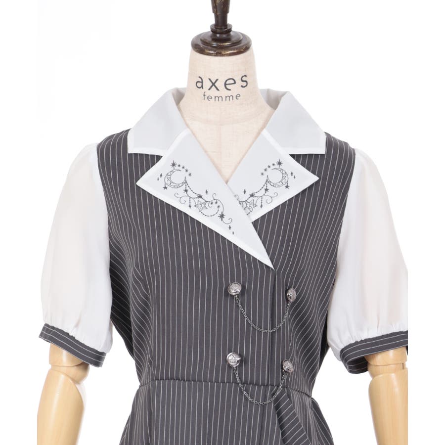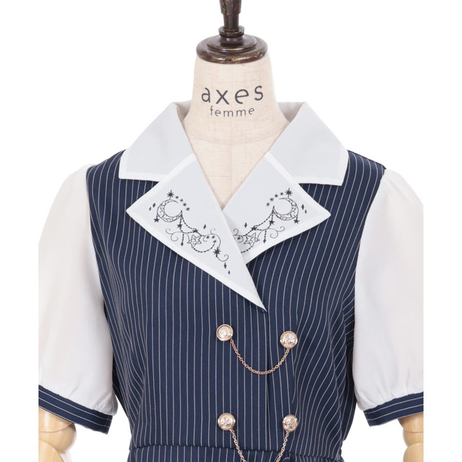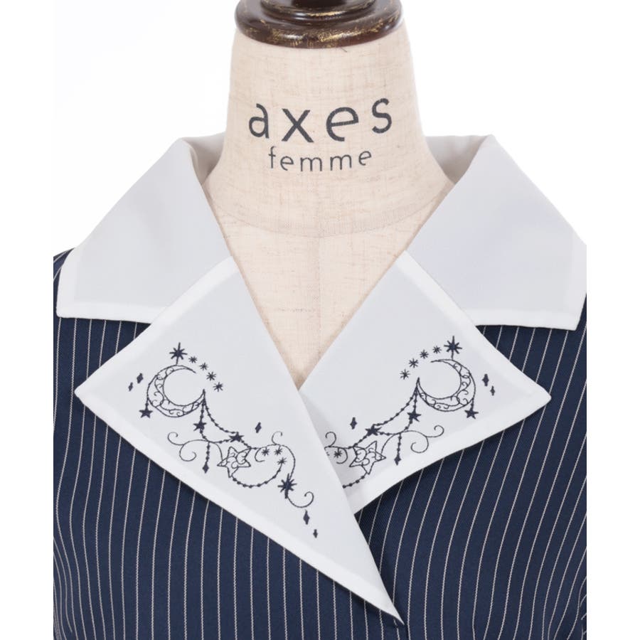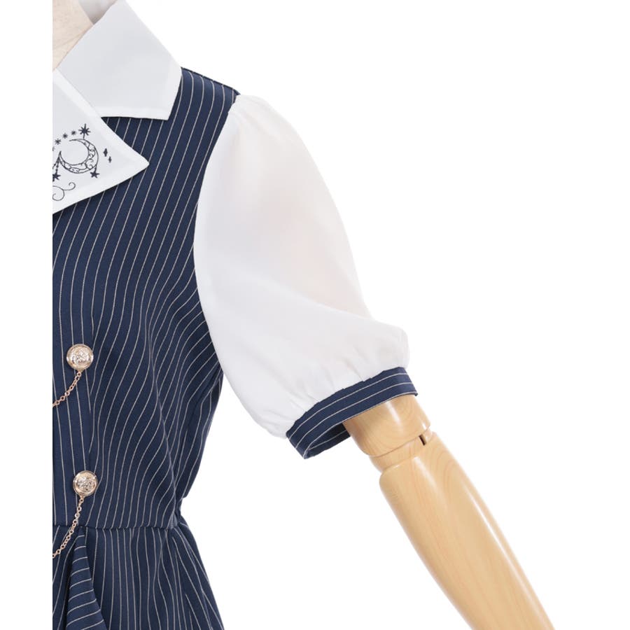 星や月などの天体モチーフ×オーナメントのオリジナル刺繍が華やかな、ビッグ襟のドッキングワンピースです。