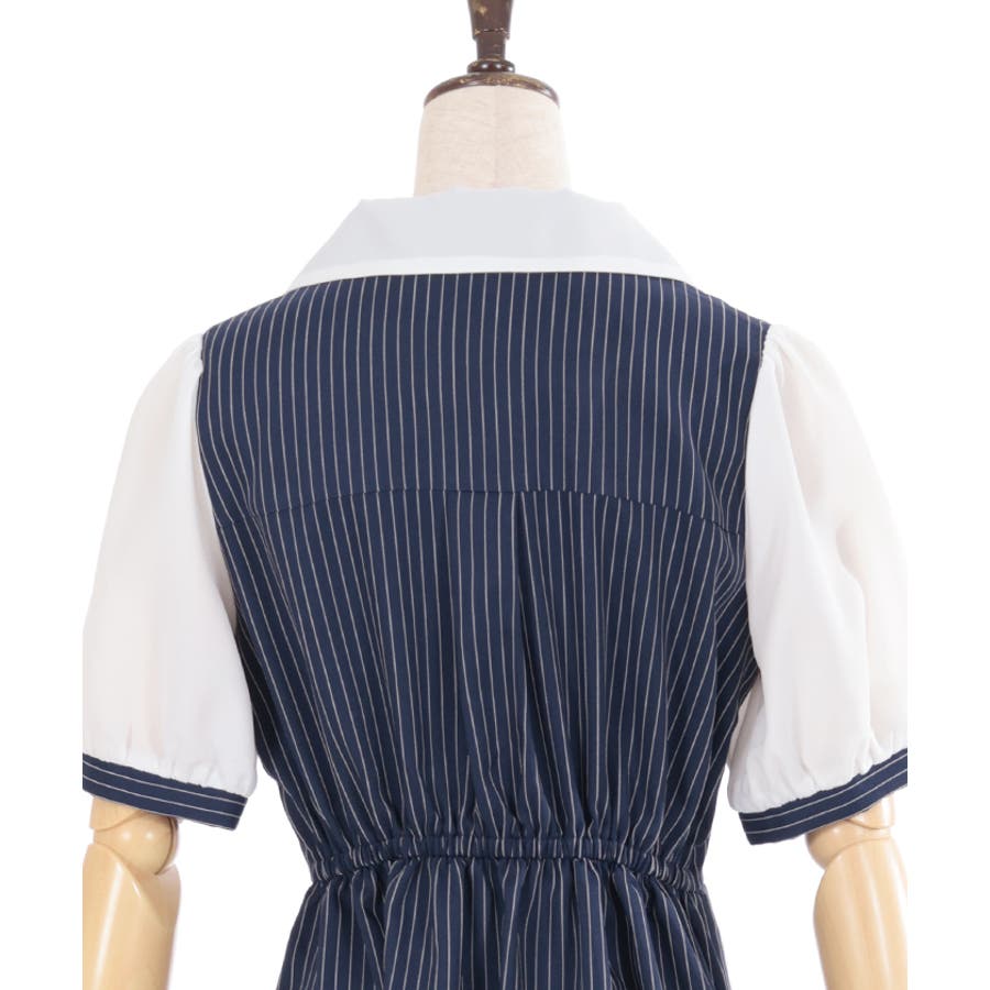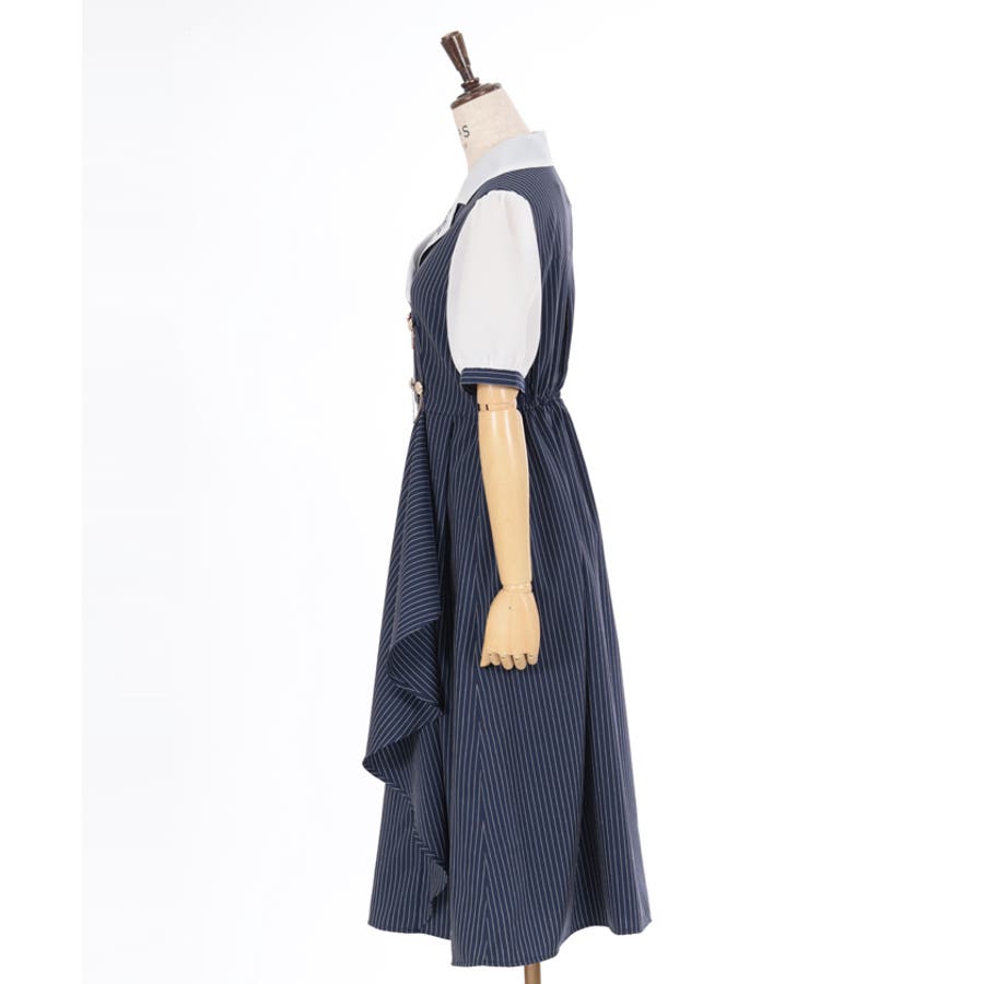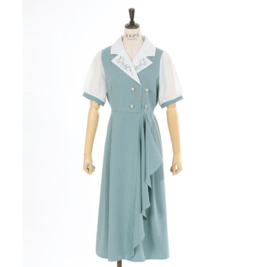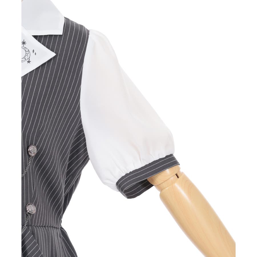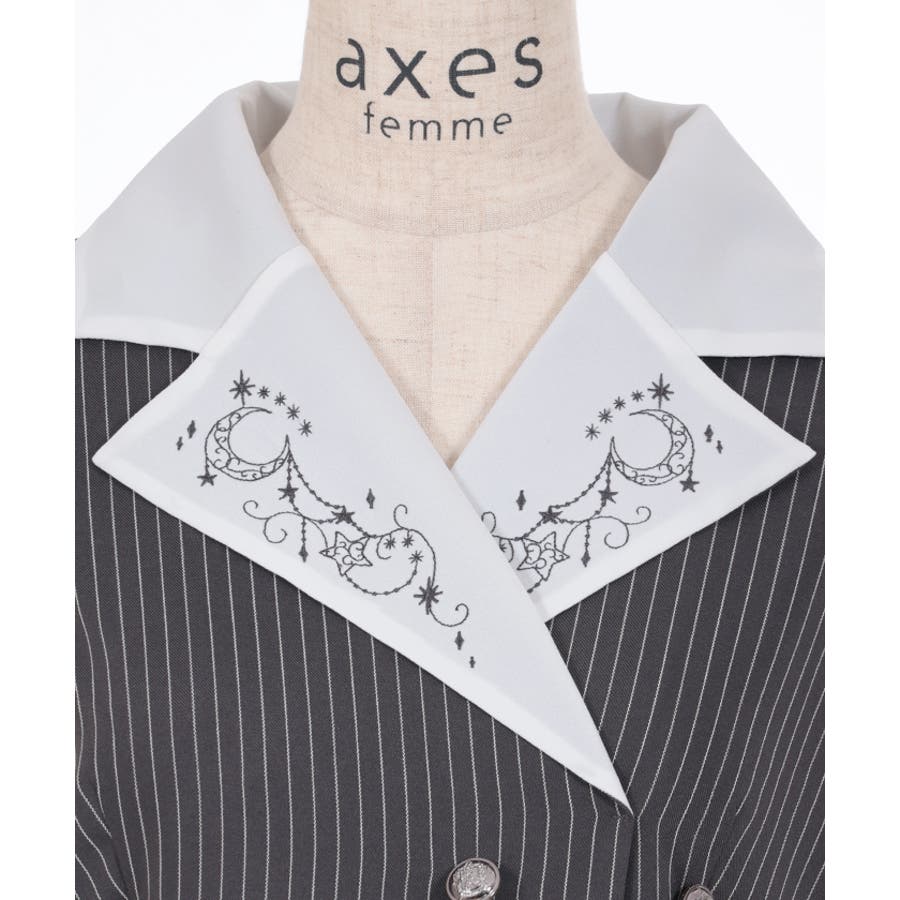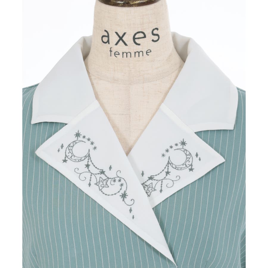 星や月などの天体モチーフ×オーナメントのオリジナル刺繍が華やかな、ビッグ襟のドッキングワンピースです。