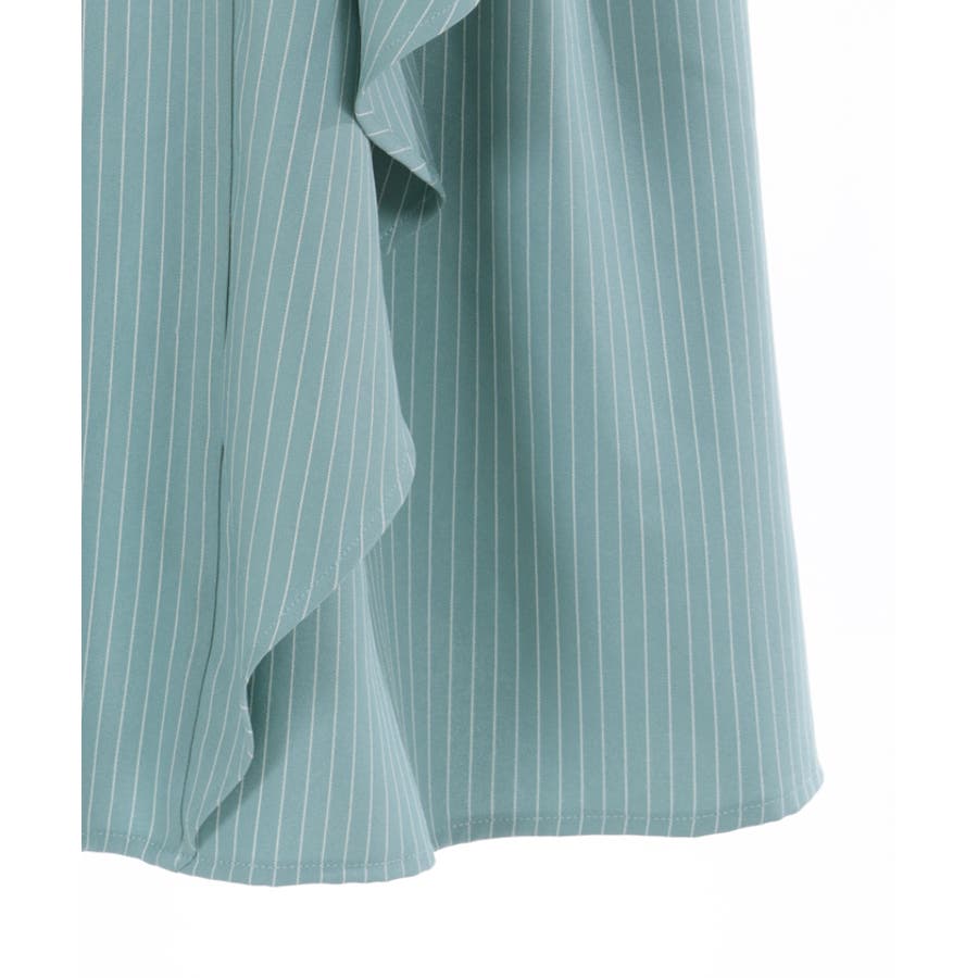 タックを寄せた、すっきりしたスカートシルエット×ラッフルフリルでボリューム感をプラスし、バランス感◎。