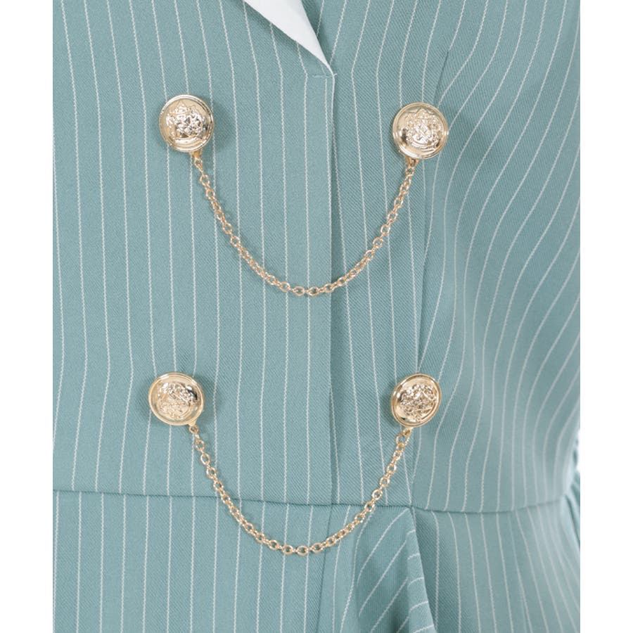 エンブレムボタン×チェーンのデザインは、クラシカルで上品な印象に。