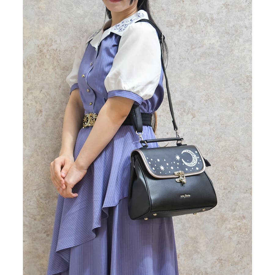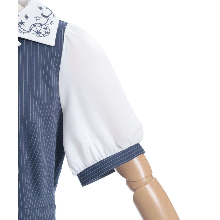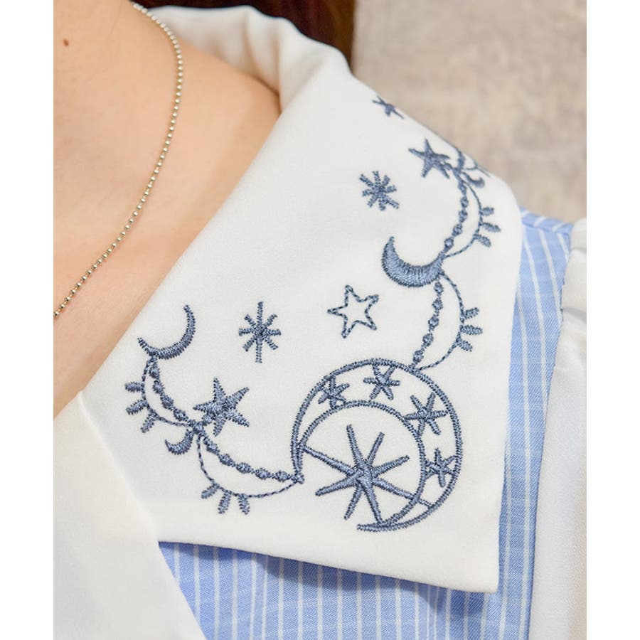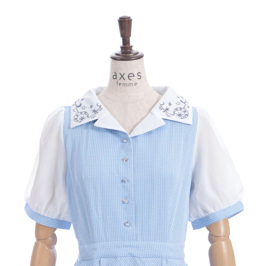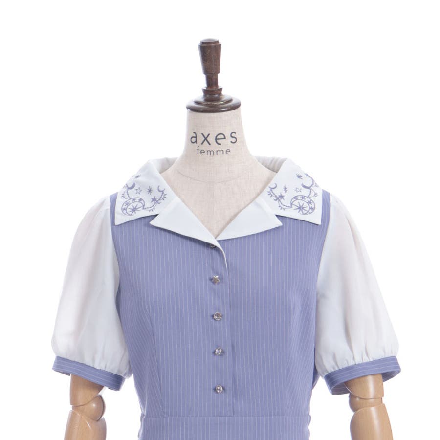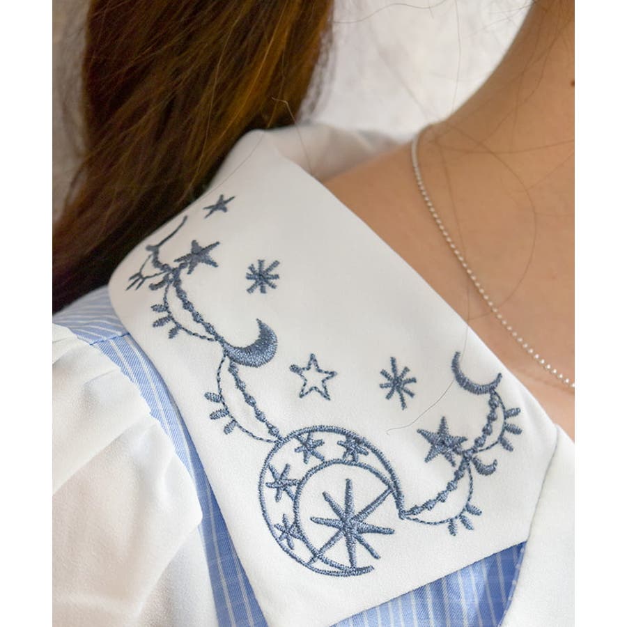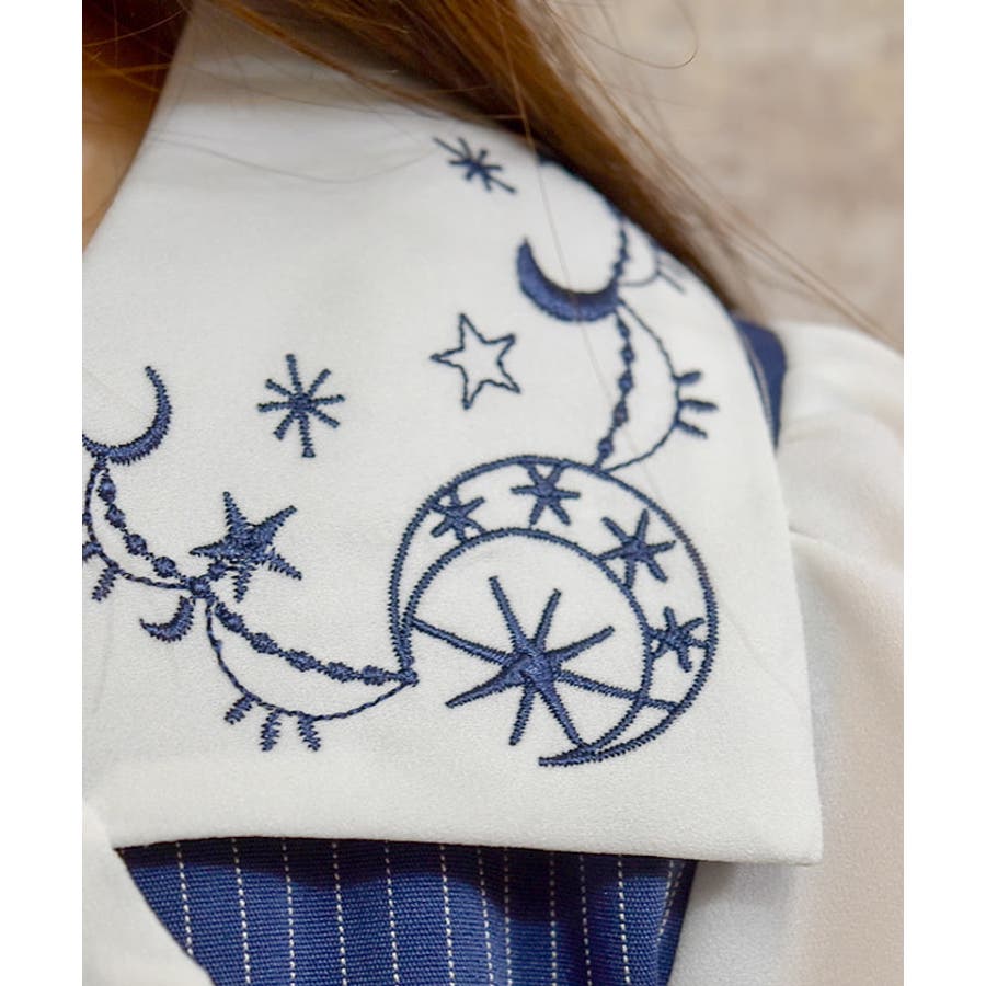 月をメインモチーフにした天体星空のオリジナル刺繍が華やかな、開襟のドッキングワンピースです。