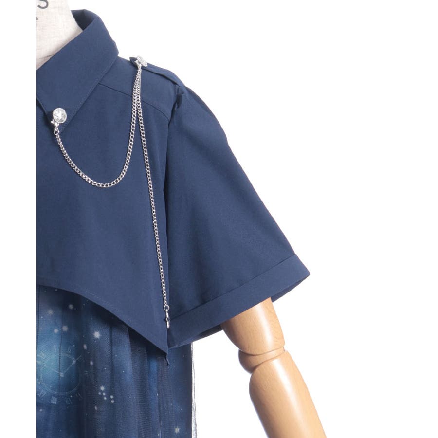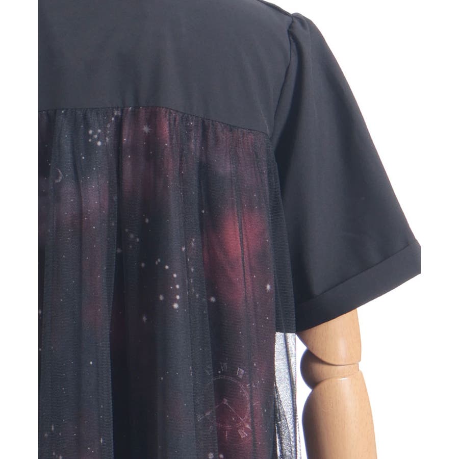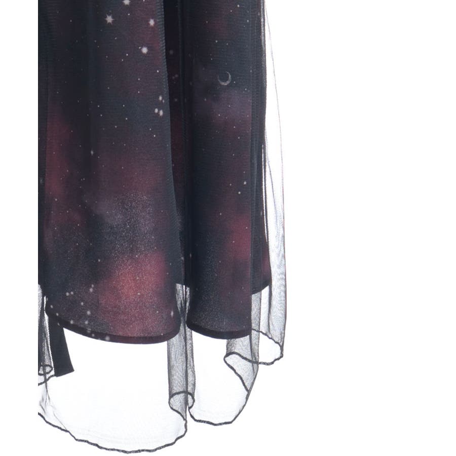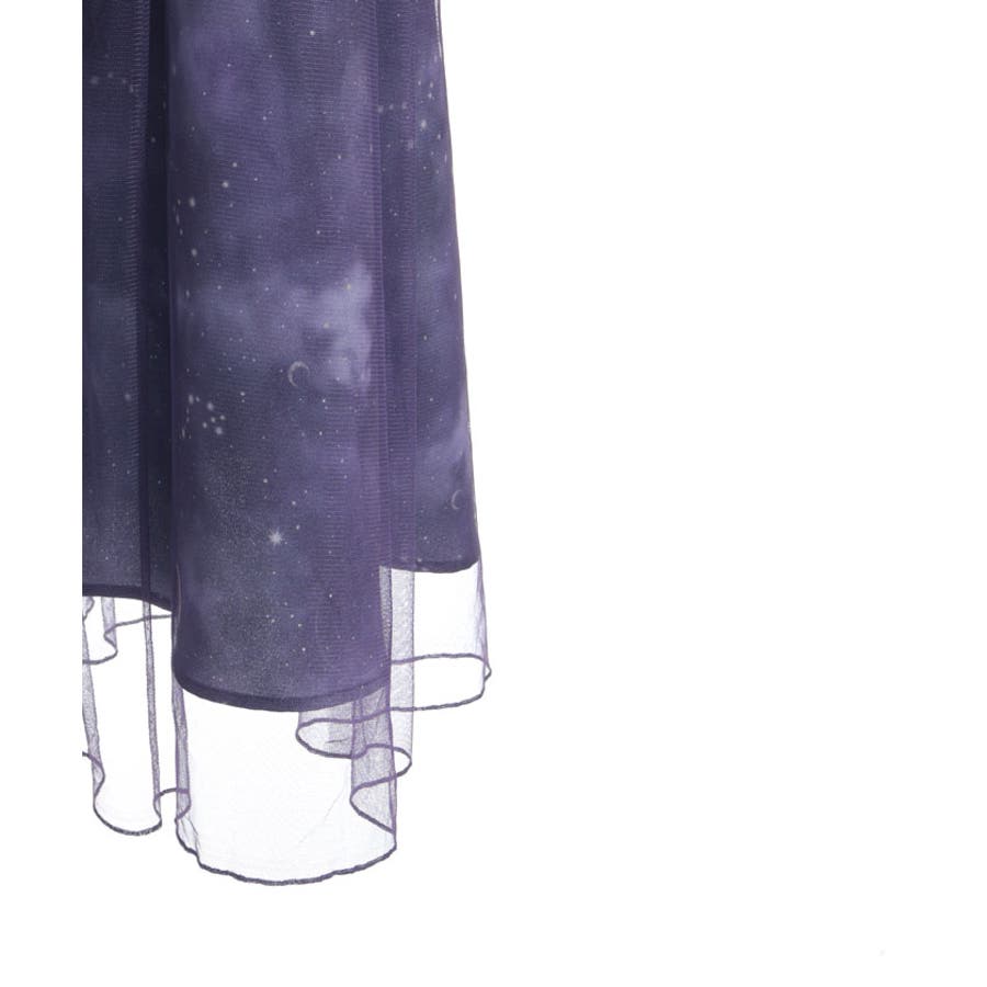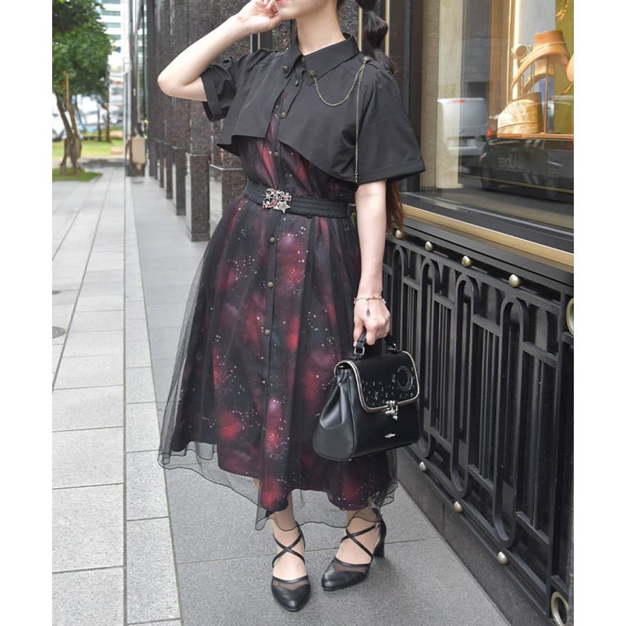 夜空に浮かぶ月や星座、きらめく星をモチーフにした、幻想的なステラ柄のシャツワンピース。