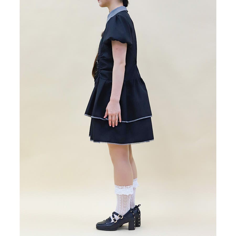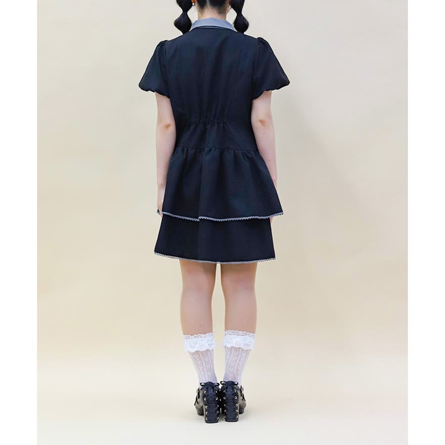 バイカラーの配色感がポイントのミニワンピースです。