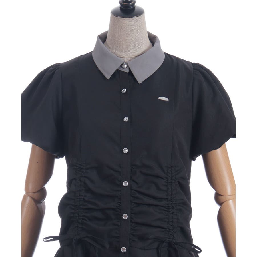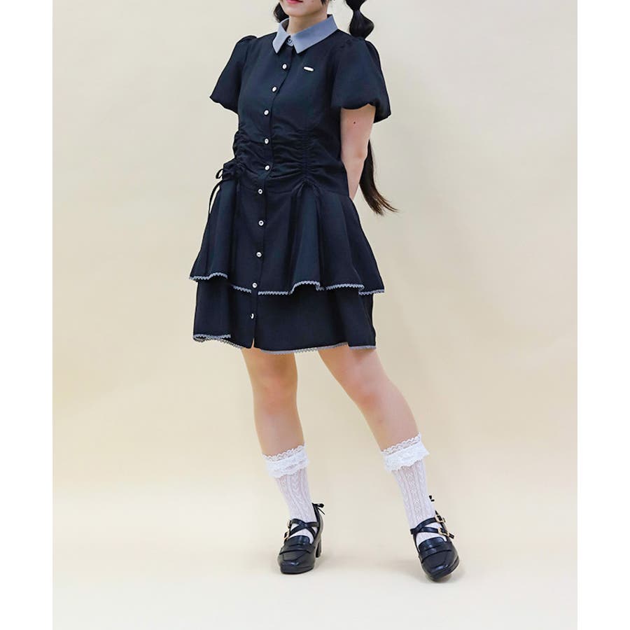 バイカラーシャツミニワンピース