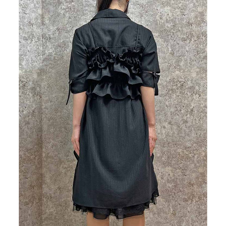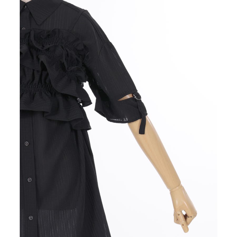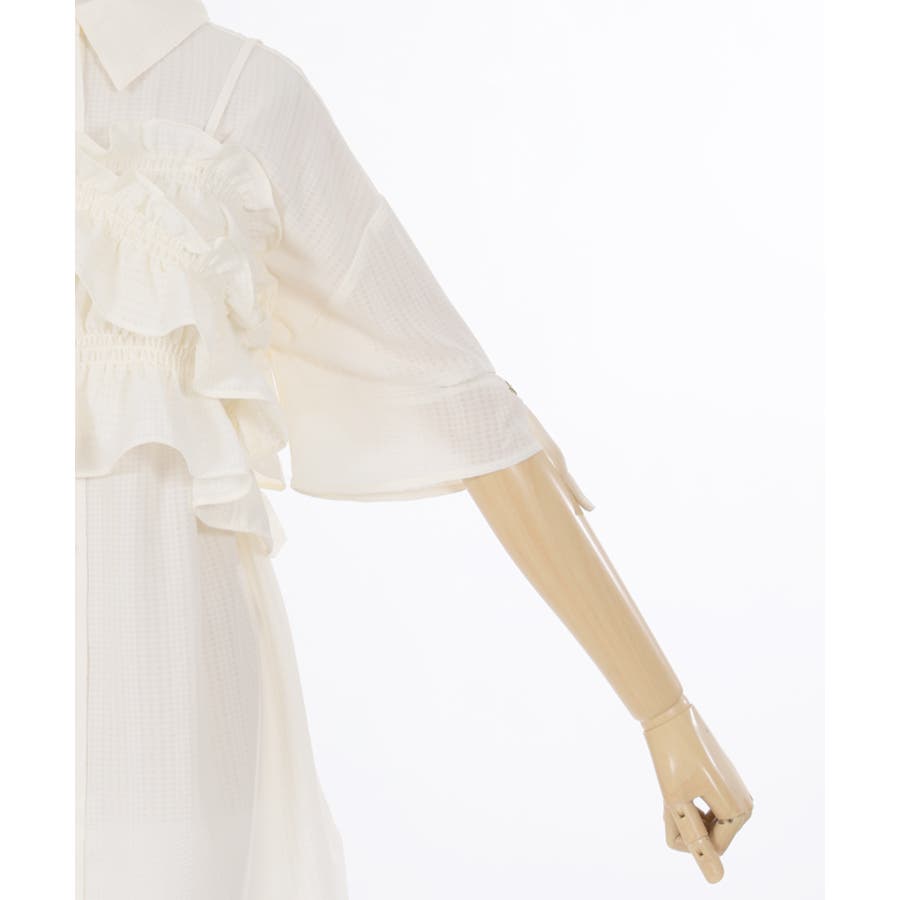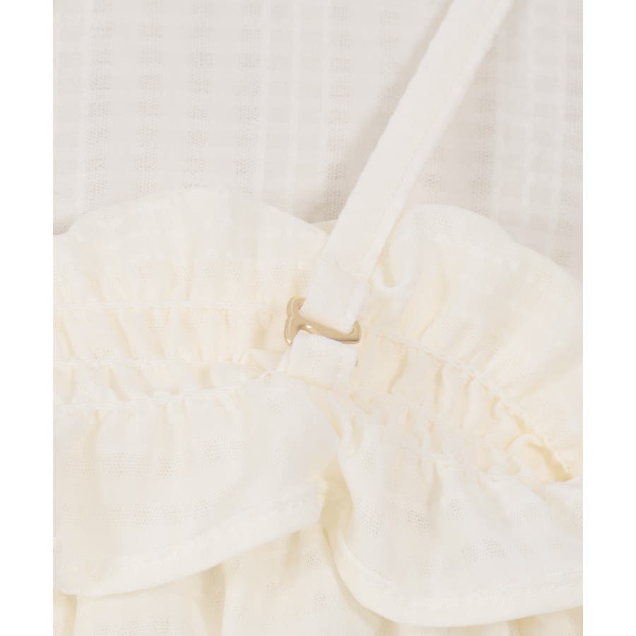 伸縮性のあるゴムを通し、体にフィットする着やすさとフェミニンなフリルがアクセントに。