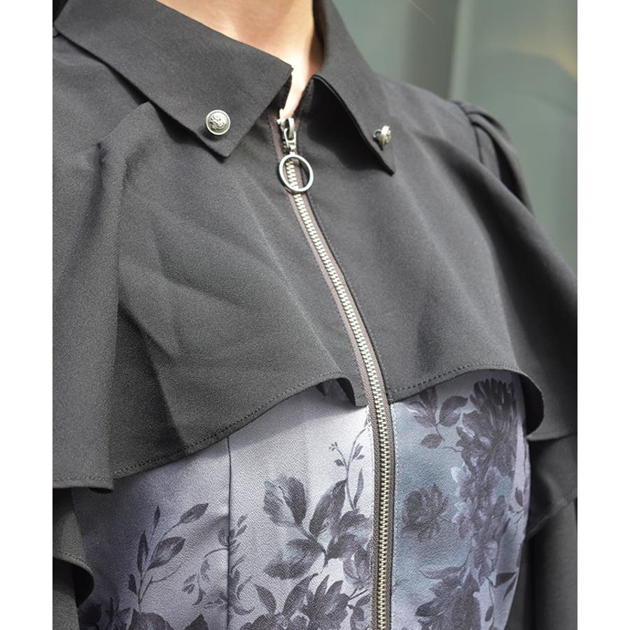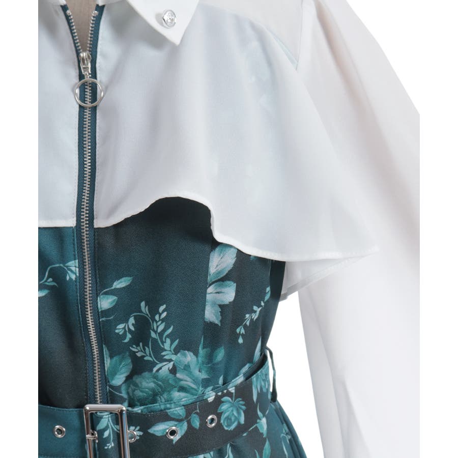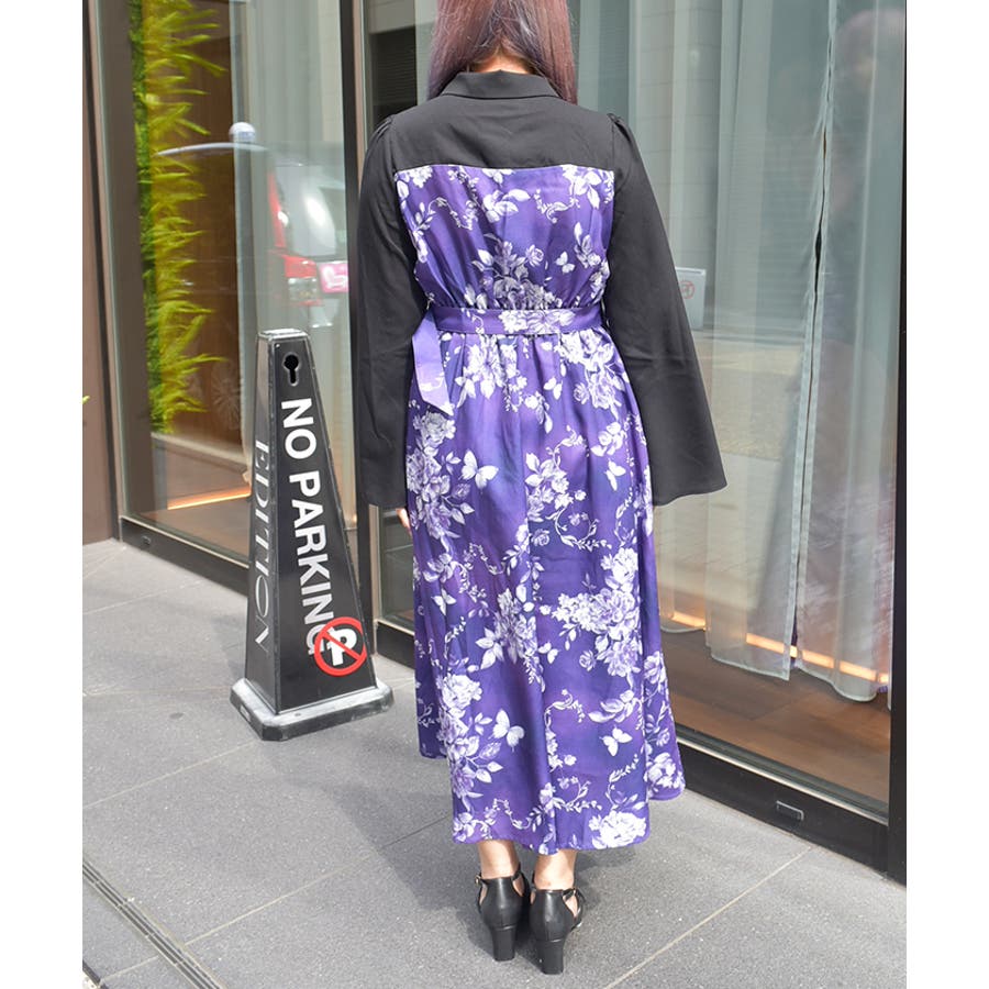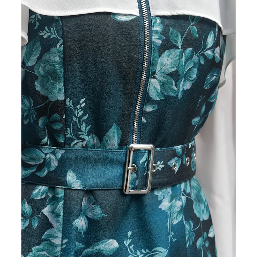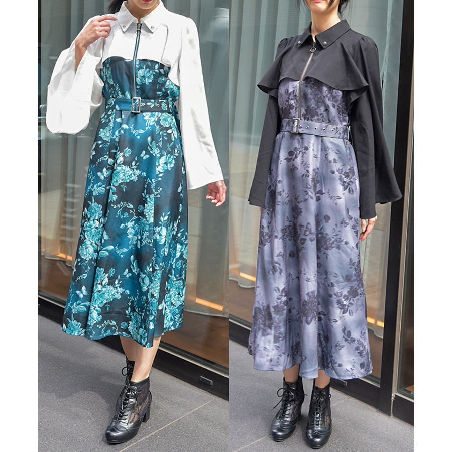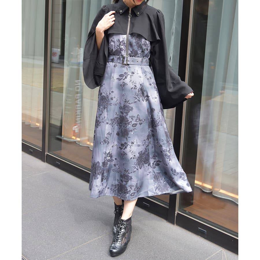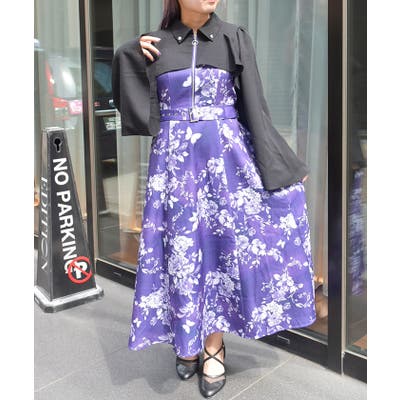 蝶々×花柄ジップワンピース