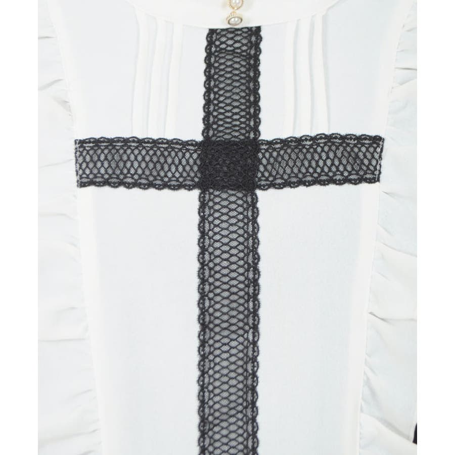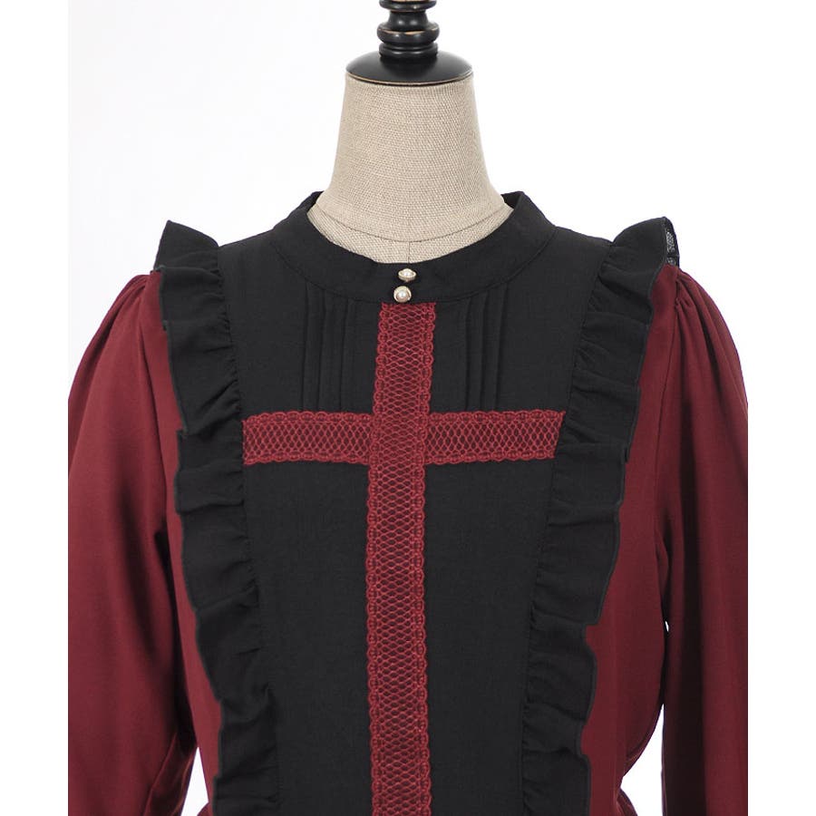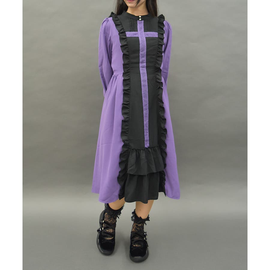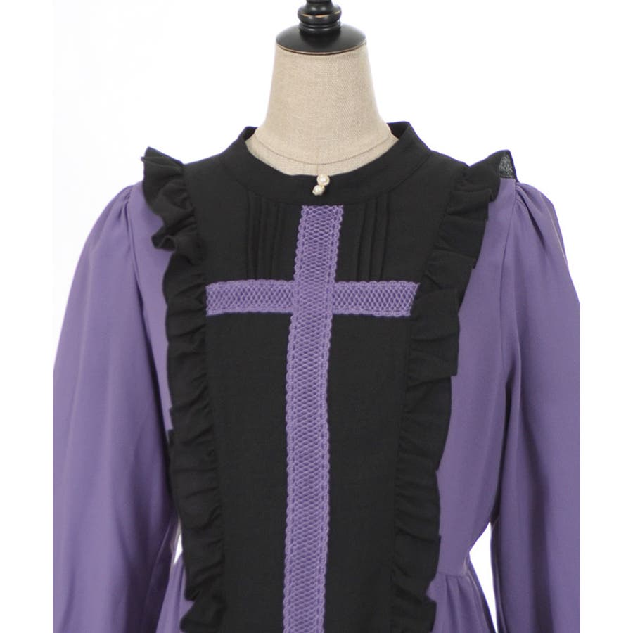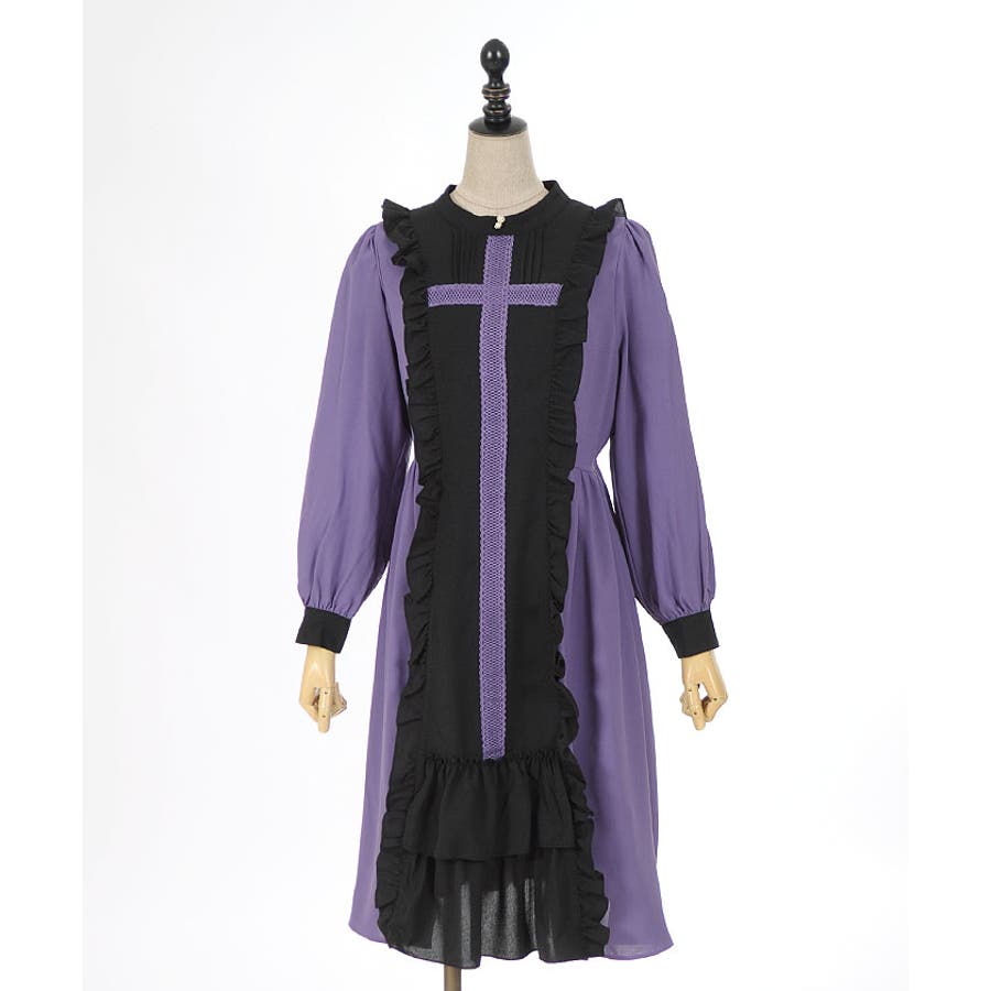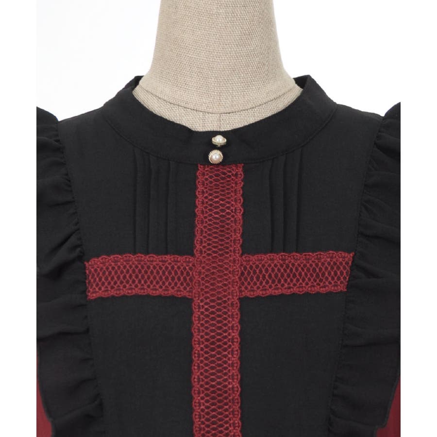 修道服をイメージしたワンピースにレースをクロスにあしらったアイテムです。