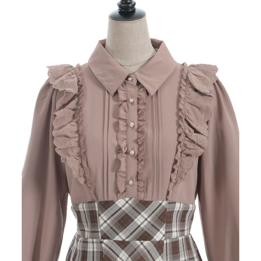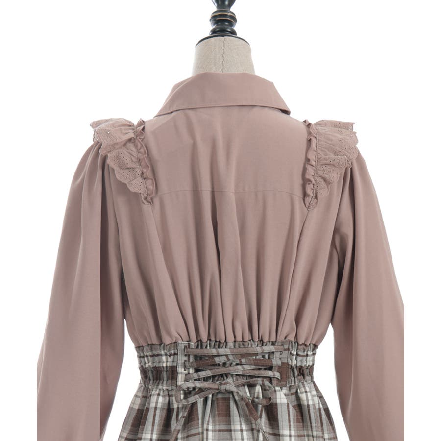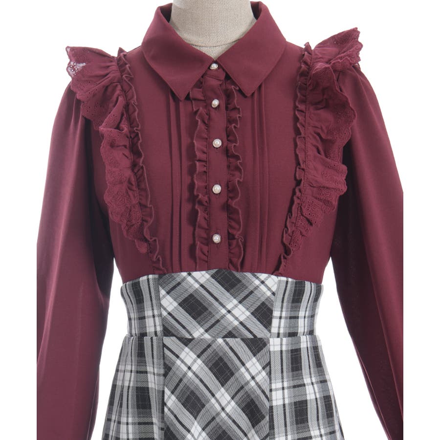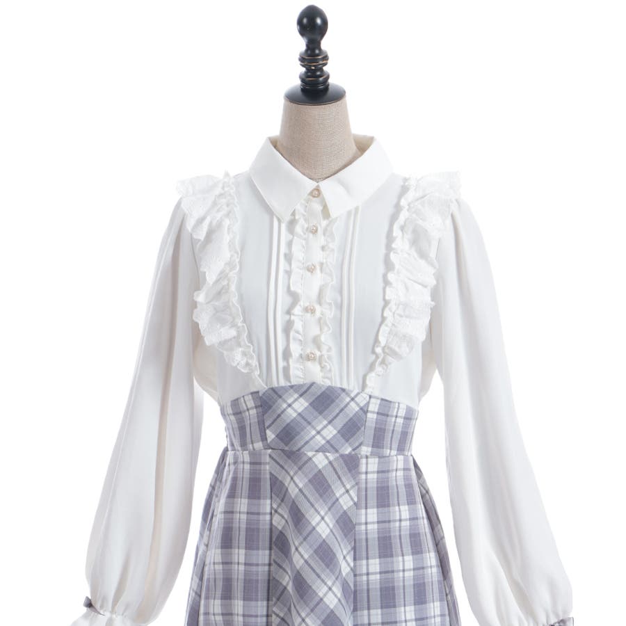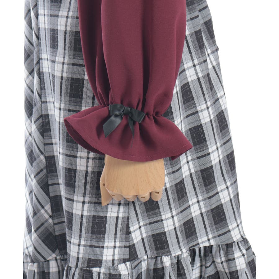 袖口の配色リボンや、コットンレースのフリル使いなどガーリーなディテールをぎゅっと詰めたワンピースです。