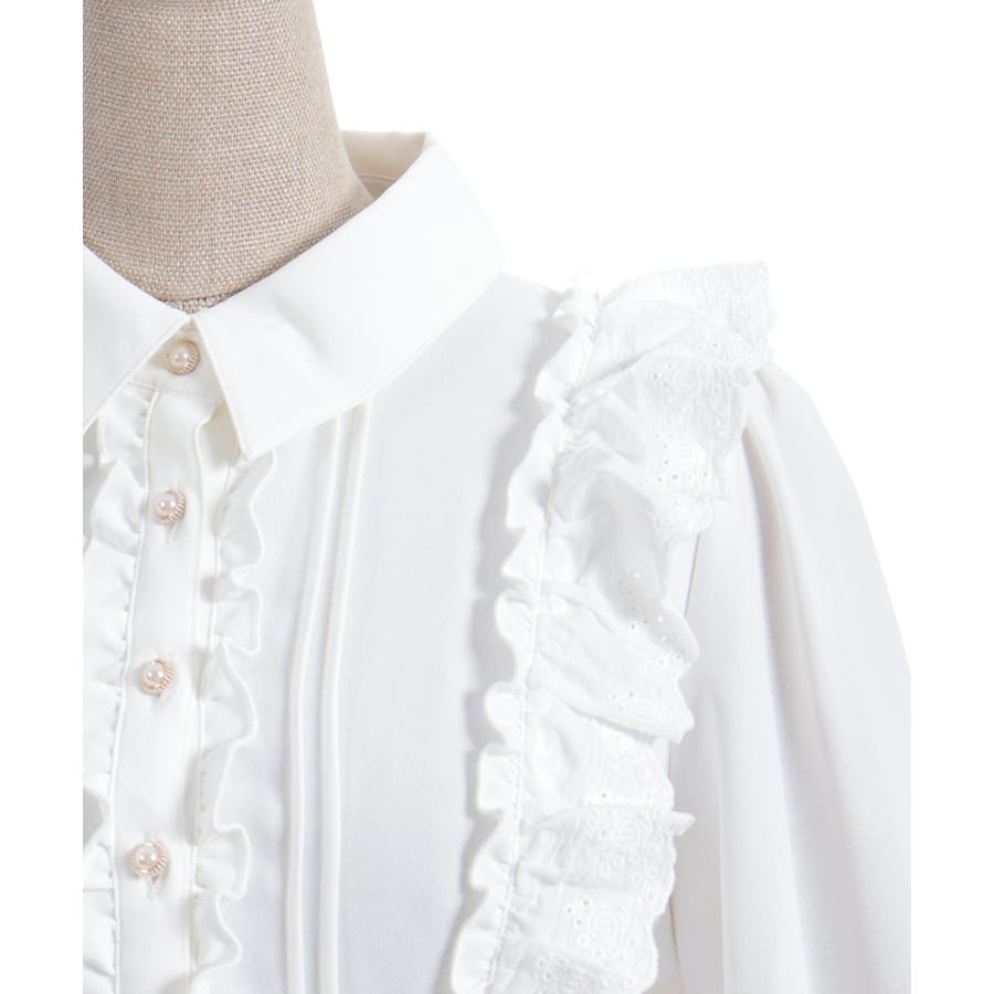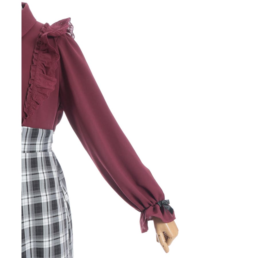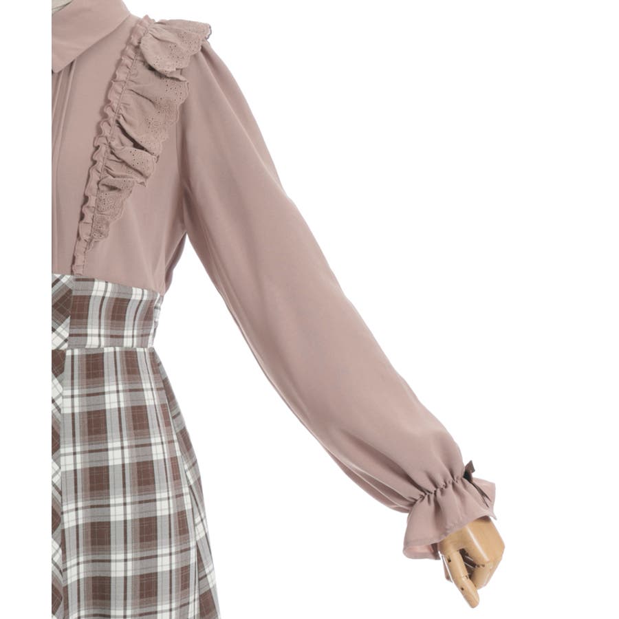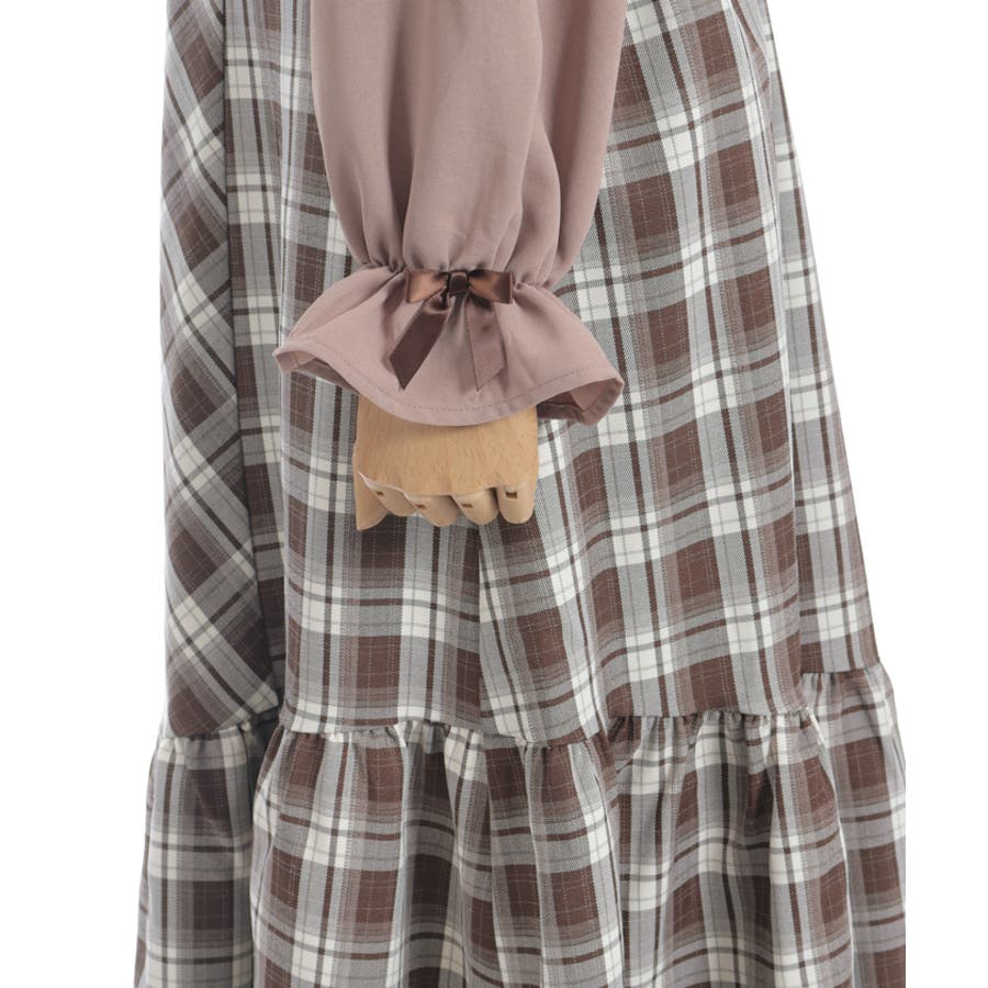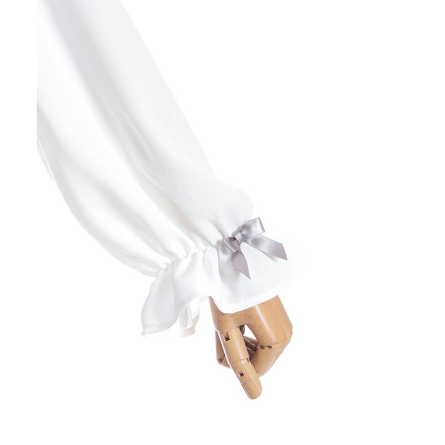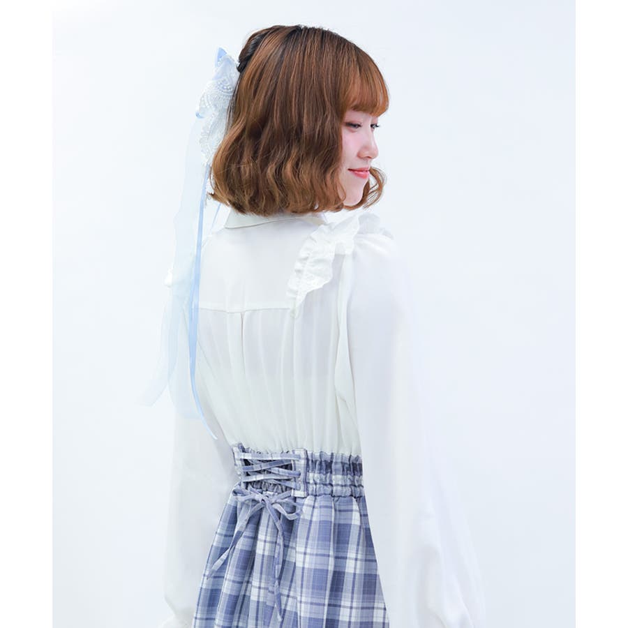 袖口の配色リボンや、コットンレースのフリル使いなどガーリーなディテールをぎゅっと詰めたワンピースです。