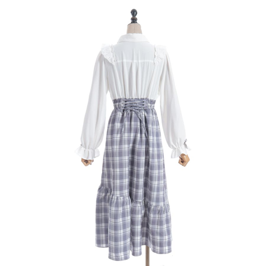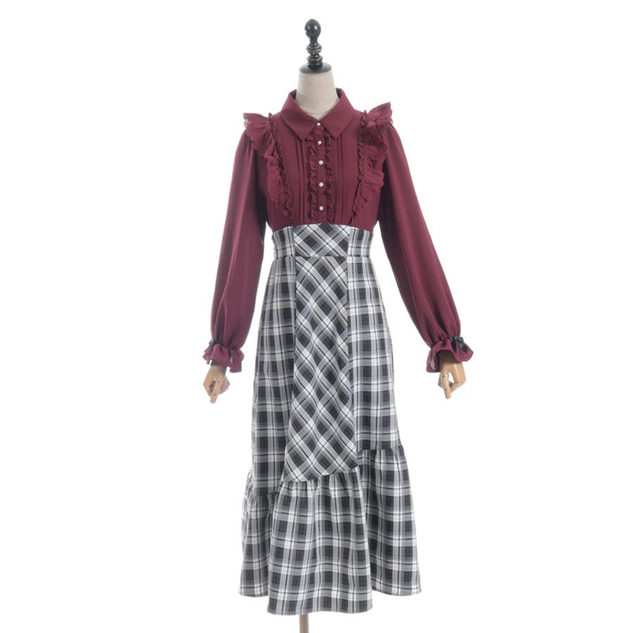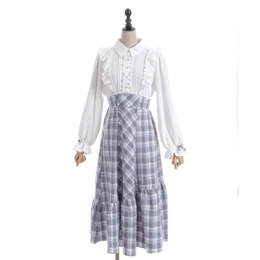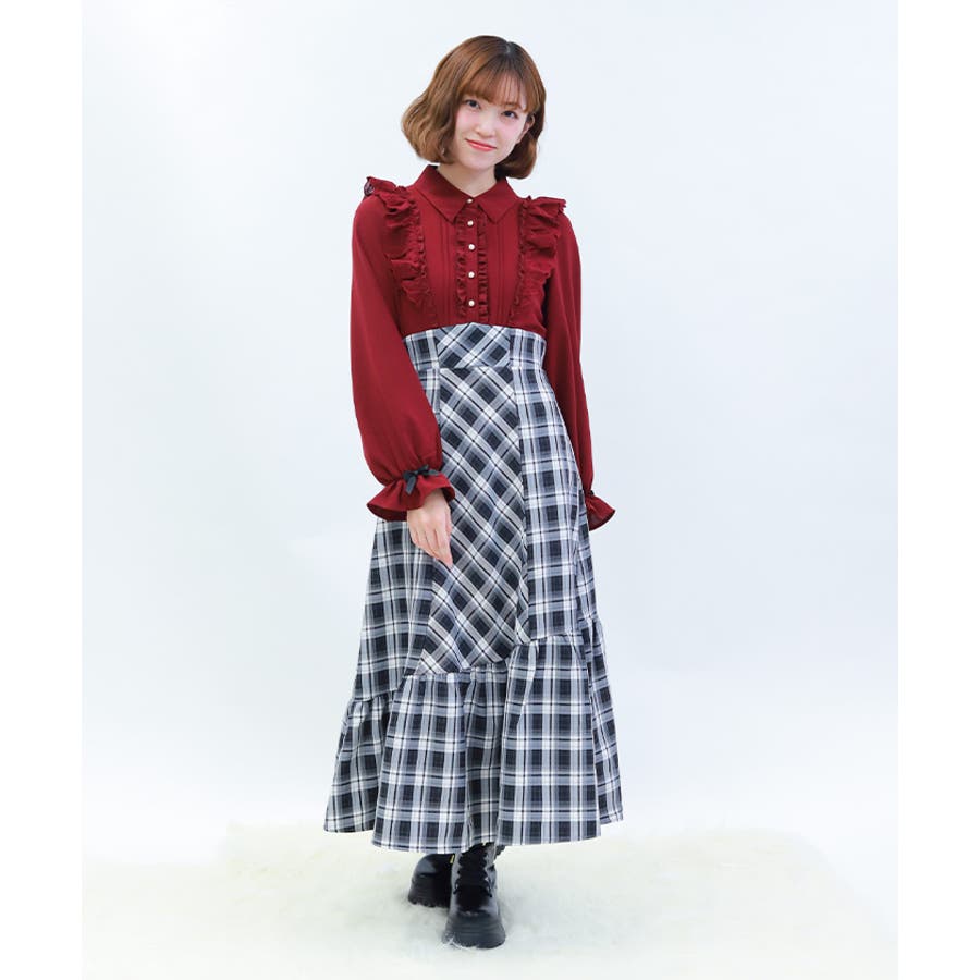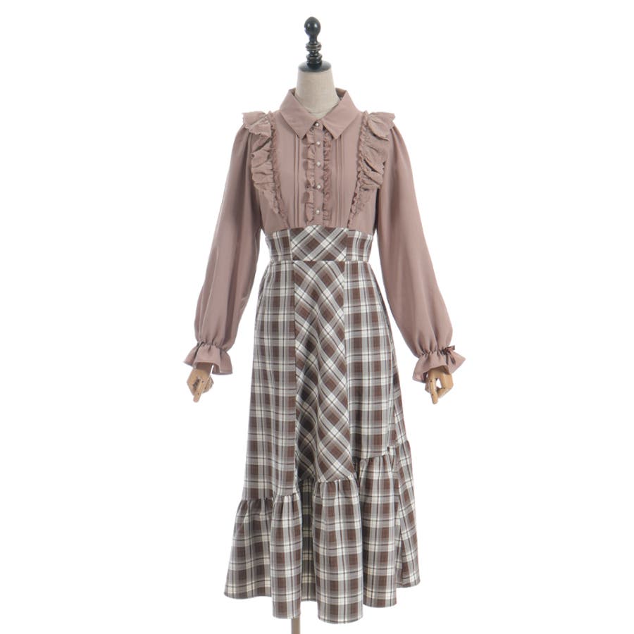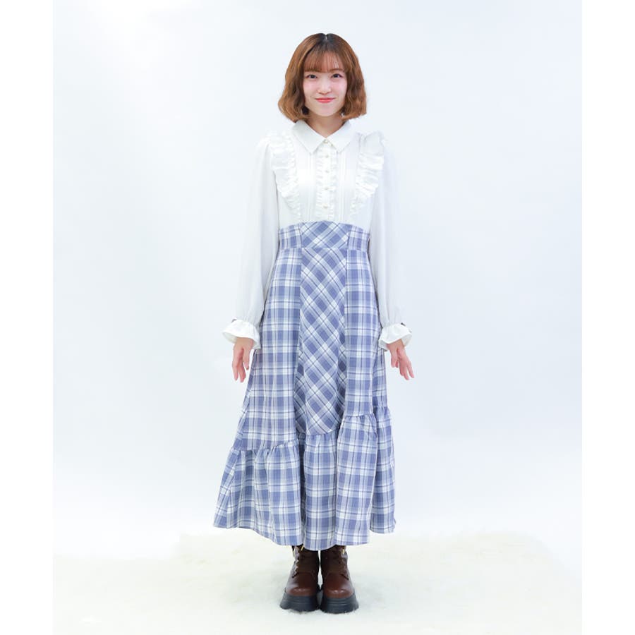 ブラウスとロングスカートをドッキングしたデザインのワンピースです。