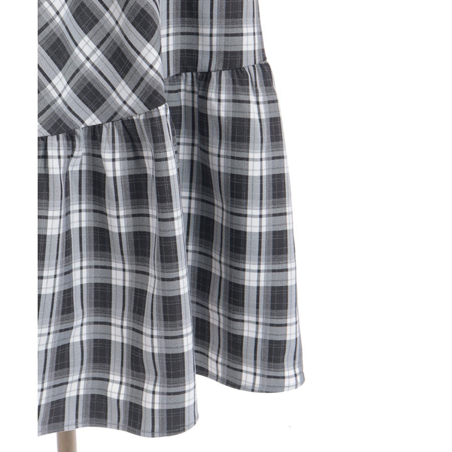 スカート部分は斜めに切り替えの入ったアシンメトリーのデザイン。